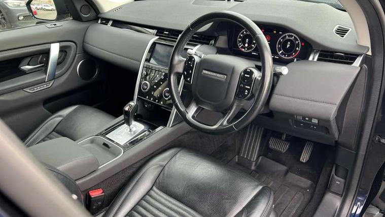 Android Auto, Apple CarPlay, Blind spot assist, Connected navigation pro, Driver condition monitor, InControl remote premium, Interactive driver display, Lane keep assist, PAS, Powered tailgate/boot lid, Service interval indicator, Traffic sign recognition with adaptive speed limiter, Trip computer, All terrain progress control, Coil suspension system, Terrain Response 2, Bluetooth connectivity including audio streaming, Digital Audio Broadcast radio-DAB, Steering wheel mounted audio controls, Automatic headlight levelling, Door mirror memory, Electric front/rear windows, Power fold, auto-dimming, heated door mirrors with approach lights, Rain sensing windscreen wipers, Rear wiper, Front passenger isofix child seat attachment, Illuminated vanity mirrors, Rear headrests, Tilt/reach adjustable steering wheel, Online pack - Discovery sport, 3 point seatbelts on all seats, ABS, Brake hold function, Collision mitigation braking system, Cornering brake control (CBC), Driver/Front Passenger airbags, Drivers knee airbag, Electronic brake force distribution, Electronic parking brake, ESP + traction control, Hill descent control, Hill launch assist, Pedestrian airbag system, Roll stability control, Side and curtain airbags for front and 2nd row seats, Tyre pressure monitoring system, Battery Back Up System (BBUS) with tilt sensor, Intrusion sensor, Locking wheel nuts,