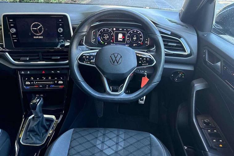 10.25" Digital cockpit pro, Bluetooth mobile phone interface, Driver alert system with fatigue detection, Driver tips and journey analysis, Emergency call service, Lane keeping system Lane Assist, Modified key software - reduce switch off time for key status change to Long no motion, Online services, Park assist including front and rear parking sensors, Service interval indicator, Tailgate/trunk lid release from outside, Think blue trainer driver tips and journey analysis, Warning sound and light for front seatbelts unfastened, Wireless app connect, Battery regeneration during braking, Start/stop function with battery regeneration, Diversity antenna for FM reception, Front and rear 6 speakers, Music playback - MP3, WMA and AAC files, Premium USB cable in choice of either Apple or Android smartphone compatibility, SD card slot, Simultaneous pairing of 2 compatible mobile devices, Title and cover art display, We Connect and We Connect Plus functionality, 3rd brake light, Auto dimming interior rear view mirror, Automatic hazard lights activation under emergency braking, Automatic headlight control with LED separate daytime running lights with coming/leaving home function, Extended roof spoiler, Exterior mirrors aspherical on driver side, convex on front passenger side, External USB type C socket and charging sockets, Front windscreen wiper with intermittent wipe and 4 position delay, Heated rear window, LED Plus headlamps, LED rear combination lamps, LED rear number plate lights, LED tail lamp rear comination lamps, Power windows with comfort operation and circuit breaker, R-Line design body coloured bumpers, Rain sensor, Rear exhaust tailpipe, Rear fog light on one side and reversing lights on both sides, Rear side wing doors, Rear wash/wipe with intermittent wipe setting, Remote electrically foldable door mirrors, puddle lights and reverse activated passenger's door mirror, 12V power socket in centre console, 3 rear head restraints, 3 seat bench in 2nd row, 4 load lashing points in luggage compartment, Air care climatronic air conditoning system with active combination filter and 2-zone temperature control, Black roof lining, Chrome plated radiator grille inserts, air vent surrounds and light switch surrounds, Door and side trim panel with leatherette insert, Drawer under drivers seat, Front + rear carpet mats, Front centre armrest, Front cupholders x 2, Front footwell illumination, Front reading light, Front scuff plates with R logo, Instrument lighting, white adjustable panel illumination, Interior ambient lighting and surround lighting, Interior light delay, Isofix child seat preparation, Leather gearshift handle, Load-through provision with cup holder when folded down ('Unsplit rear seat bench, split folding backrest, with centre armrest), Luggage compartment lighting, Single front passenger seat, Stainless steel pedals, Storage compartment in left and right luggage area, Storage compartment in rear doors, Storage compartments in driver and front passenger doors, Sunvisors with illuminated vanity mirrors, Variable boot floor, height adjustable and removable, Driver assistance pack without proactive passenger protection - T-Roc, 3 point height adj front seatbelts + pretensioners, 3 point seatbelts in outer rear with ECE label, ABS, Child locks on rear doors, Driver and front passenger airbag with front passenger airbag deactivation, Driver and front passenger safety-optimised head restraints, Drivers seatbelt reminder, Electronic parking brake, Electronic Stability Control (ESC) inc EDL (Electronic Differential Lock) and ASR (Traction Control), Front and rear passengers curtain airbag system including front side airbags, Front assist with city emergency braking and pedestrian monitoring, Front seat side impact airbags, Hill start assist, Predictive pedestrian protection, Rear disc brakes, Single tone horn, Tyre pressure loss indicator, Volkswagen roadside assistance, Alarm with interior protection, Anti-theft alarm system with interior monitoring, backup horn, and towing protection, Remote central locking with SAFELOCK, radio remote control with 2 remote control folding keys, Trims for alloy wheels,