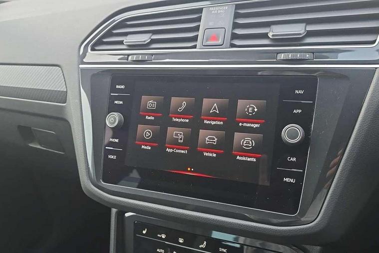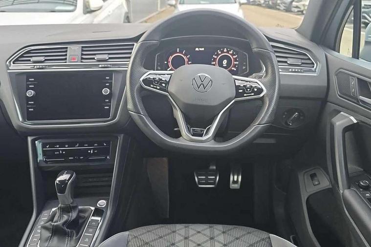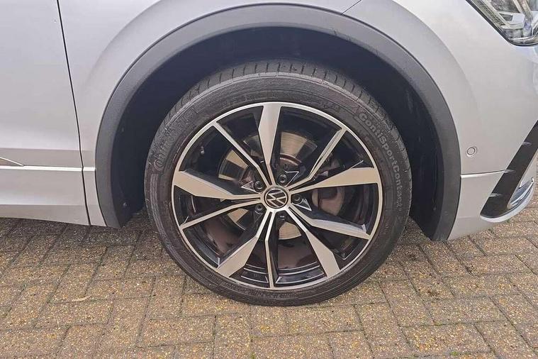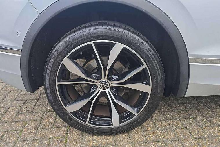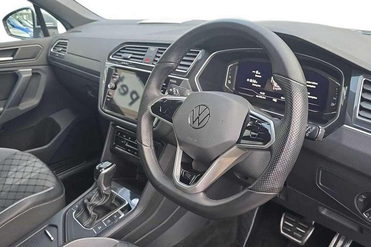 Adaptive cruise control ACC stop and go including speed limiter, App-Connect incl. App-Connect Wireless for Apple CarPlay and Android Auto, Bluetooth phone integration system, Digital Cockpit Pro - Active info display, Distance control assist, Driver alert system, Driver profile selection, Dynamic road sign display, eCall emergency call system, Electromechanical speed sensitive power steering, Engine start/stop button, Lane keeping system Lane Assist, Lights on warning, Multifunction front facing camera, Outside temperature display, Premium multifunction display with multi colour display, Remote control boot opening, Rev counter, Revision / skills operating concept travel assistant, Service interval indicator, Speed limit display, Start/stop system with regenerative braking, Trip computer, Warning sound and light for doors and tailgate open, Battery regeneration during braking, Charging cable Mode 3 Type 2 / 3 (16A), XDS electronic differential lock for improved traction and handling, 2 USB-C ports in the front, 1 USB-C charging socket on the center console in the rear, Diversity antenna for FM reception, Radio, SD card slot, Simultaneous pairing of 2 compatible mobile devices, SMS functionality - read, compose and send SMS messages using touch-screen display, Title and cover art display, Auto dimming interior rear view mirror, Automatic headlight control system, Black roof rails, Body colour door handles, Body coloured bumpers in R Line style, Body coloured door mirrors with integrated indicators, Chrome moldings on the side windows, Coming/leaving home lighting function, Dynamic headlight range control, Front and rear electric windows, Heated rear window, High level 3rd brake light, Laminated safety glass windshield, heat and sound insulating, LED rear number plate lights, License plate carrier in front and rear, Privacy glass for rear side windows and rear window, R Line body kit, R Line side sills, Rain sensor windscreen wipers, Rear exhaust tailpipe, Rear fog lamp, Rear side wing doors, Rear spoiler in R style, Rear windscreen washer and wiper with interval delay, Side and rear windows in heat insulating glass, Trailer Stability Programme, Unique R Line badging, Windscreen wipers/ intermittent wipe + 4 position delay, 12V outlet in center console rear and in luggage compartment, 12V outlet in front and tray, 2 cup holders in front, 2 LED front reading lights, 2 LED rear reading lights, 3 bench rear seats in 2nd row, 3 rear headrests, 4 load lashing points, 40:20:40 split folding rear seats, Air Care Climatronic 3 zone automatic climate control with enhanced air filter and controls in the rear, Backrest release for left front seat, Black headlining, Brushed stainless steel pedals and footrest, Carpet mats in front and rear with decorative stitching in Gray, Climate control unit rear with touch function, Door and side trim panel in foam film, insert in leatherette, Front centre armrest, Front footwell illumination, Front seats head restraints (x-adjustment), Height adjustable front seats, Height/reach adjust steering wheel, Instrument lighting white adjustable panel illumination, Interior light with delay, Isofix Preparation 2 Rear child seats, Leather gear knob, Lockable cooled glovebox, Luggage compartment lighting, Luggage net, Rear bench seat asymetrically split folding, longitudinally movable and folding with load-through hatch and center armrest, Remote unlocking for rear seat backrest, Removable luggage cover, Removable rear headrests, Safety optimised front head restraints, Single front passenger seat, Sliding/reclining rear seats, Standard rear seat release, Storage compartment in driver's door, Storage compartment in passenger's door, Storage compartment in rear doors, Storage compartments in luggage area left and right, Storage tray on dashboard, Sun visors with illuminated vanity mirrors, Tool kit, Top front comfort seats, Variable boot floor, height adjustable and removable, Ambience pack - Tiguan R Line, Driver assistance pack plus - Tiguan DSG, Park assist pack - Tiguan, 3 point seat belt for centre rear seats, 3 point seat belts with seat belt pretensioners for the outer rear seats, Active bonnet, Curtain airbags for front and rear passengers, Driver/Front Passenger airbags, Drivers knee airbag, Electronic parking brake with auto hold, Electronic Stability Control with driver steering recommendation, ABS, ASR, EDL, EDTC and trailer stabilization, Front assist with autonomous emergency braking (for Adaptive Cruise Control ACC up to 130 mph), Front disc brakes, Front passenger airbag deactivation, Front side airbags, Height adjustable front 3 point seatbelts + pretensioners, Hill hold control, Manual child proof rear door locks, Pedestrian monitoring system, Power assisted brakes, Proactive passenger protection system in combination with front assist, Rear disc brakes, Rigid safety cell with front and rear crumple zones, Two tone horn, Tyre pressure loss indicator, Warning sound and light for front seat belts if unfastened, Anti theft alarm system with interior monitoring, backup horn and towing protection, Anti theft wheel bolts, Electronic engine immobiliser, 20" Misano black with diamond turned surface alloy wheels with Airstop tyres, Tyre mobility kit Includes 12V compressor and tyre sealant,