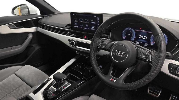 Audi connect safety and service (e-call), Audi drive select, Audi smartphone interface, Audi virtual cockpit, Automatic start-stop system with coasting functionality and efficiency programme, Bluetooth interface, Camera based traffic sign recognition, Electromechanical power steering, Email, calendar and text messages displayed via MMI, Front and rear parking sensors, Lane departure warning, MMI Navigation plus with MMI touch includes 10.1" high resolution colour MMI display, 3D map, Power operated tailgate, Rear view camera, Voice control system, 54 litre fuel tank, Sports suspension lowered by 23mm, 2 USB charging ports, 8 passive loudspeakers, DAB digital radio reception, Aluminium roof rails, Auto dimming rear view mirror, Body colour door handles, Body colour front spoiler lip, Body colour side sill trim, Body coloured door mirrors, Electric adjustable/heated/folding door mirrors with auto dimming, Grained matt black side air inlets with matt aluminium silver inlay, High beam assistant, Honeycomb structure radiator grille in grained matt black, LED headlights with LED rear lights + dynamic rear indicators + headlight adjustment and high beam, turning light + LED daytime running lights, LED third brake light, Matt aluminium silver tailpipe trim, Privacy glass, Rain and light sensors, Rear side wing doors, Rear wiper, S Line badges on the front wings, S line front and rear bumpers with side skirts, S Line rear diffuser in matt anthracite black with trim strip in matt aluminium silver, S Line roof edge spoiler, Variable intermittent front wash/wipe, Windscreen with acoustic glazing, 3 spoke high multi-function sports leather steering wheel grips in perforated leather with S badging including paddle shift, 4 way electric lumbar support for driver and front passenger, 40/20/40 split folding 3 rear seat bench in 3 parts with rear centre armrest, Black carpets, Black cloth headlining, Black perforated leather gearknob, Contrast stitching on seats, steering wheel and gear lever gaiter, Deluxe 3 zone electronic climate control, Electric load area cover, Front and rear head restraints, Front centre armrest, Heated front seats, Illuminated door sill trims with S logo, ISOFIX child seat mounting and top tether, Manual seat adjustment, Single front passenger seat, Stainless steel pedals and foot rest, High gloss package - A4, LED Interior light pack - A4/S4, 3 rear seatbelts, 6 airbags - Driver, front passenger, curtain and side windows, Attention and drowsiness assist, Electronic Stabilisation Control (ESC) including ABS, ASR and EDL, Hill hold assist, Multi collision brake assist, Pop-up bonnet for pedestrian protection, Pre sense city, Rear door child safety locks, Seatbelt monitoring, Warning triangle and first aid kit, Anti theft alarm, Anti theft wheel bolts, Central locking, Keyless Go, Matt brushed aluminium inlays, Tool kit, Tyre repair kit,