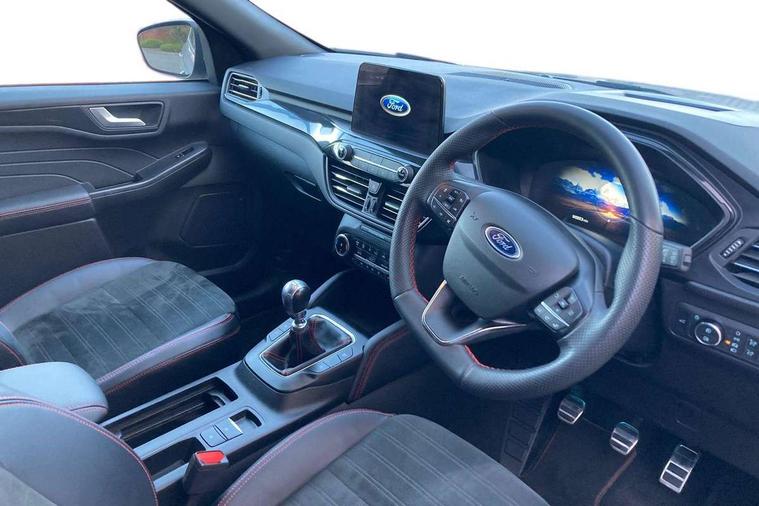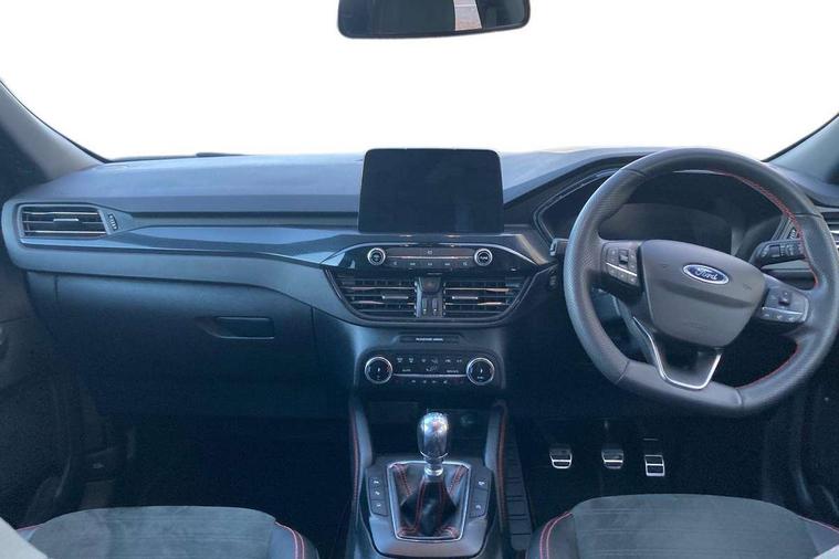 12.3" digital colour instrument cluster, Ford SYNC 3 with 8" TFT LCD touchscreen, App Link, andriod auto/apple carPlay, emergency assistance and navigation with Ford pass connect, Front and rear parking sensors, Hands free power tailgate, Lane keeping aid with lane departure warning, Power assist steering, Rear view camera, Selectable drive modes, Sports suspension, B&O premium audio system with 10 speakers and subwoofer, 2 USB ports, DAB radio/CD, Black roof rails, Exclusive paint, Large rear spoiler, LED daytime running lights, LED rear lights, Power folding heated door mirrors with puddle lights, Power front/rear windows with global close, Power opening panoramic roof, Quickclear heated windscreen, Rear privacy glass, Rear side wing doors, Rear wiper, Third brake light, 2nd row sliding seats with 60:40 split, Electronic automatic temperature control (EATC), Front and rear head restraints, Heated passenger and driver seats, Heated rear seats, Heated steering wheel, Partial premium touch Sensico with black cloth inserts and red stitching, Single front passenger seat, Driver assistance pack - Kuga with front camera system, Technology pack - Kuga with LED headlights, 3x3 point rear seatbelts, Electronic stability control (ESC) and ABS, Manual child proof rear door locks, Post collision braking, Pre collision assist with autonomous emergency braking, Red brake calipers, Keyless entry and Ford power start button (Keyless start),