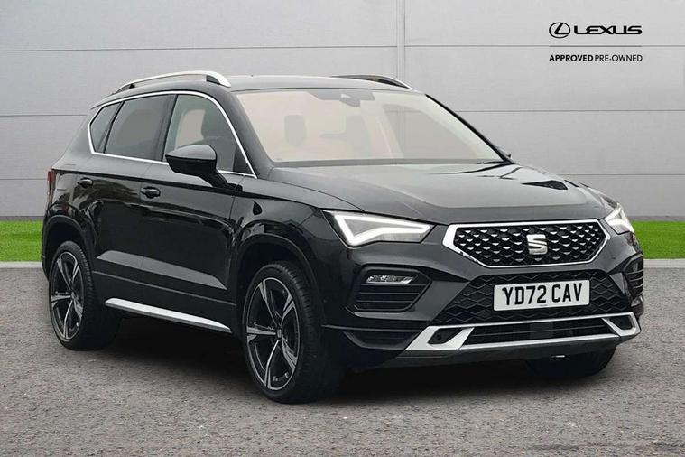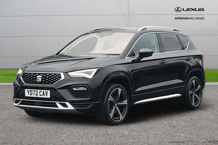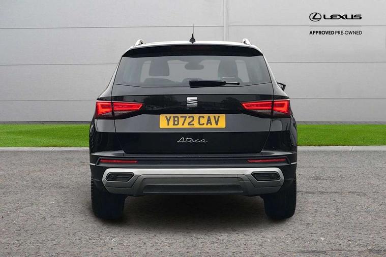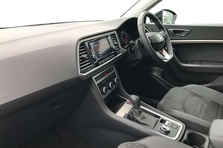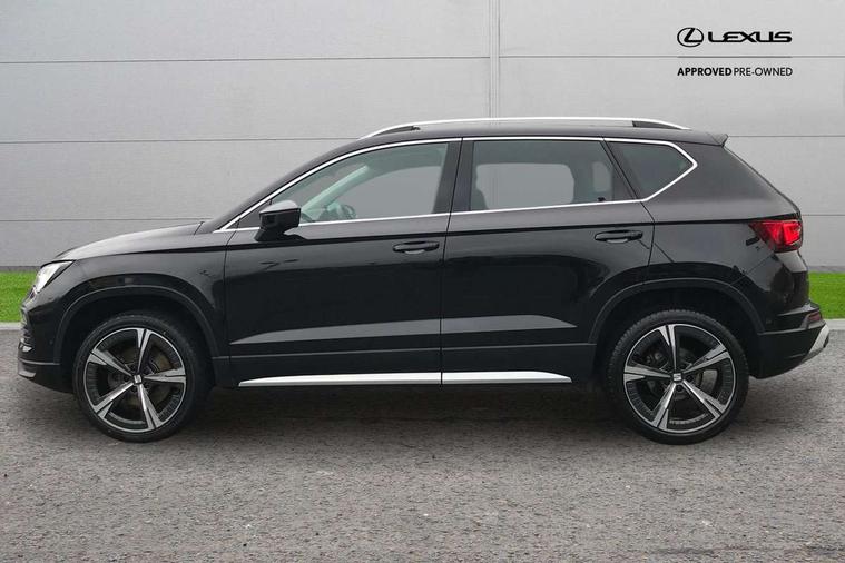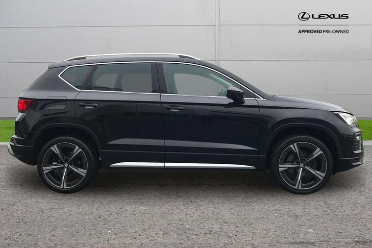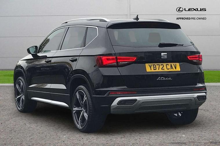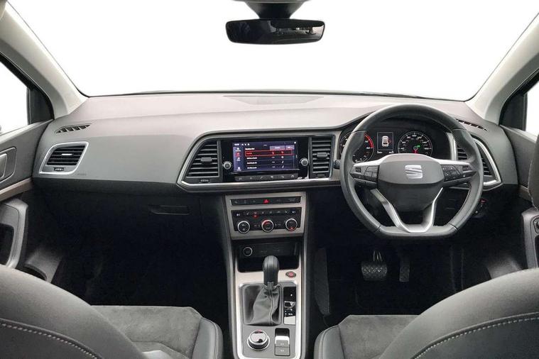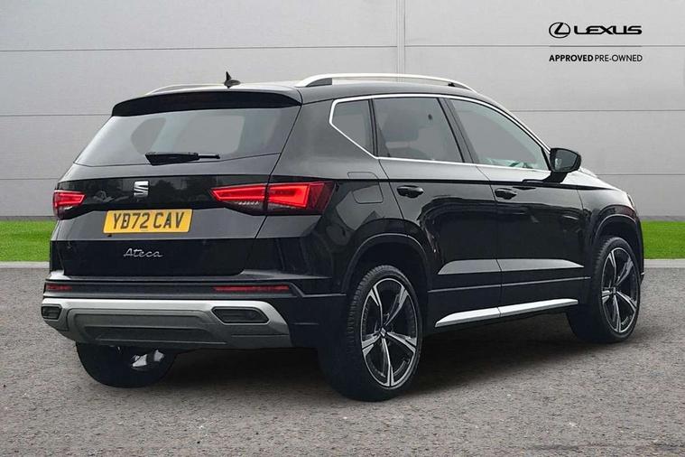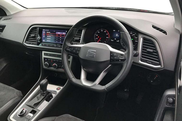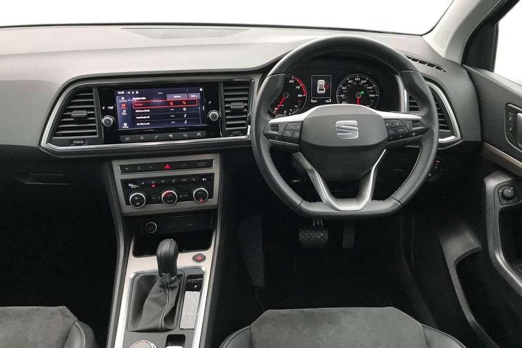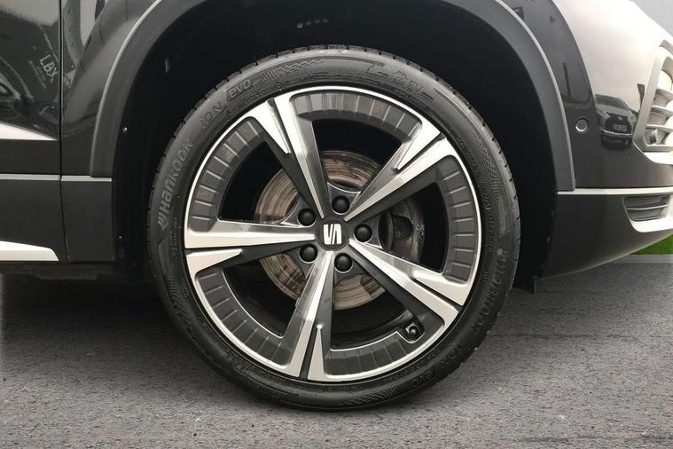 8" Digital cockpit, Colour multi-function on board computer display, E-call, Electric tailgate closing, Outside temperature gauge, Progressive power assisted steering, Rear view camera, SEAT drive profile with driving experience button - Normal, Sport, Eco and Individual mode, gearshift, steering and throttle response, Self parking functionality (includes front and rear parking sensors), Trip computer, Wired Full Link, Wireless phone charger, Steering wheel mounted audio/phone controls, Black simulated exhaust pipes, Black wheel arch surrounds, Body colour bumpers, Chrome front grille frame, Chrome roof rails, Chrome side window trim, Dark tinted rear windows, Daytime running lights, Door mirrors with welcome light silhouette, Dynamic headlight range control with self adjusting whilst driving, Electric adjustable/heated/folding door mirrors, Front and rear electric windows, Front grille hot stamping, Full LED headlamps with lens and LED front fog lamps with cornering function, Heated windscreen, Illuminated aluminium front door sill, LED rear tail lights with dynamic indicators, Rear fog lights, Rear side wing doors, Rear wash/wipe, Reflex silver side mouldings, Third brake light, 12v socket in front, 3 seat bench in 2nd row, 60/40 split folding rear seat, Drawer under right front seat, Dual zone climate control, Front and rear head restraints, Front centre armrest, Front seat back storage pockets, Height adjustable driver and passenger seat with lumbar adjustment, ISOFIX points in outer rear seats with top tether anchorage points, Leather steering wheel and gear knob, Microsuede upholstery with front comfort seats, Rear armrest and easy back seat release mechanism from boot, Single front passenger seat, Steering wheel mounted gearshift paddles, Convenience pack - Ateca, Interior lighting pack - Ateca, Media system plus pack - Ateca, Safe and driving pack - Ateca, 3x3 point rear seatbelts, ABS, Traction control system (TCS), Electronic stability control (ESC) and Electronic differential lock system (XDS), Airbags - Driver and front passenger airbag with deactivation, front side, two curtain and driver's knee airbags, Electric parking brake with auto hold function, Front and rear seatbelt reminder, Hill hold control, Manual rear child locks, Tiredness recognition system, Traction control, Tyre pressure monitoring system, Alarm, Keyless entry, Locking wheel bolts, Chrome interior detailing, 19" Exclusive 36/5 Machined Aerowheels in Nuclear Grey,
