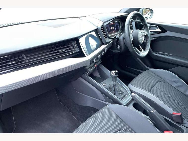 10.25" Digital instrument cluster display classis style instrument dials + speed, odometer, time, outside temperature, telephone menu + fuel level warning, Audi connect safety emergency and service including E-call, Audi drive select - power steering assistance + engine + gear shift 3 preset modes (auto, dynamic, efficiency and an Individual mode), Audi smartphone interface with connect compatible smartphone via USB directly MMI display + Nav, music, third party apps controlled via MMI controller, Automatic start/stop system, Bluetooth interface, Cruise control, Driver's information system, Electromechanical power steering, Lane departure warning system, Rear parking sensor, Service interval indicator, Speed limiter, Voice control system, Washer fluid level indicator, Sports suspension with adjustable dampers, 1 x SDXC card reader, 1 x USB type C and 1 USB type A charging points, DAB Digital radio, MMI radio plus with 8.8" colour MMI display screen and MMI touch, Audi rings logo foil in platinum grey, Auto dimming rear view mirror, Deletion of engine technology designation at rear, Door mirrors in platinum grey, Door sills with aluminium inlays and S Line logo, Electric front and rear windows, Electrically adjustable, heated, folding door mirrors with integrated LED side indicator, Front side air inlets in grained matt black and C frame in titanium black, Heat insulating glass windscreen and side windows, Heated rear windscreen, LED headlights with LED rear lights + dynamic rear indicators + headlight adjustment and high beam, turning light + LED daytime running lights, Radiator grille and rear diffuser in matt titanium black, Radiator protective grille frame in matt aluminium silver, Rain and light sensors, Rear fog lights, Rear wiper, S line badges on front wings, Side front spoiler lips in grained matt black, Visible tailpipes, 12V socket in centre console with two cup holders, 3 rear seats with headrests, 40:60 Split folding rear seat or folded fully, Black cloth headlining, Driver and passenger seat with manual height adjust with forward and backwards adjustment, Front and rear black floor mats with contrast stitching in fine silver, Front head restraints, Height and reach adjustable steering wheel, ISOFIX child seat mounting for front passenger and outer rear seats including top tether attachment point of outer rear seats, Leather gear knob with aluminium trim, Luggage compartment light with front and rear reading lights, Manually adjustable lumbar support in front seats, Stainless steel pedals, LED interior lighting pack - A1, Luggage compartment pack - A1, S line exterior styling pack - A1 Sportback, 3x3 point rear seatbelts, Audi pre-sense front with pedestrain and cyclist recognition, Brake assist function, Driver and front passenger airbag with front side and head airbags, Electronic Stability Control including ABS, EBD, ASR and EDL, Front and rear seatbelt reminder, Front passenger airbag deactivation switch, Hill hold assist, Red brake calipers, Seatbelt height adjustment for front seats, Seatbelt monitoring, Tyre pressure warning light, Warning triangle and first aid kit, Anti theft alarm, Anti theft wheel bolts and loose wheel warning, Immobiliser, Remote central locking with 2 foldaway keys, Aluminium trim for control switches, air vents and digital instrument cluster, Silver grey inlays polygon structure in diamond paint finish, Structured grey accent areas including air vents, door handle recesses and centre console in quartz paint finish,