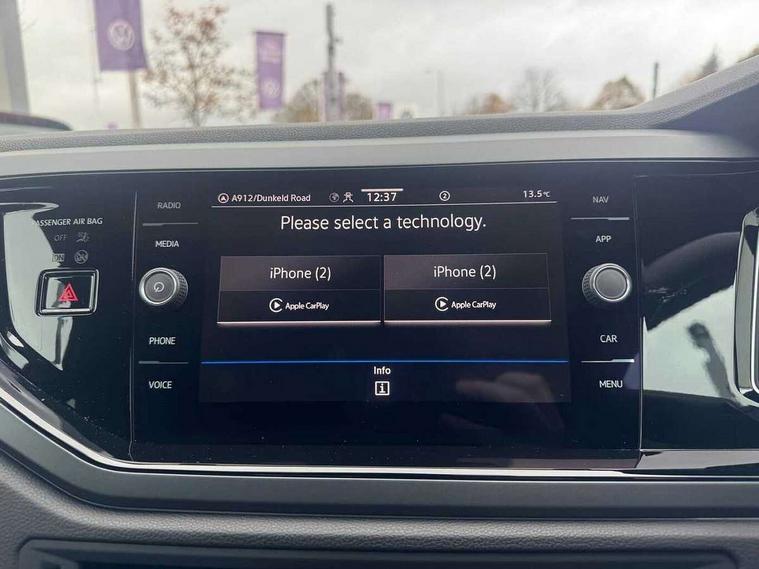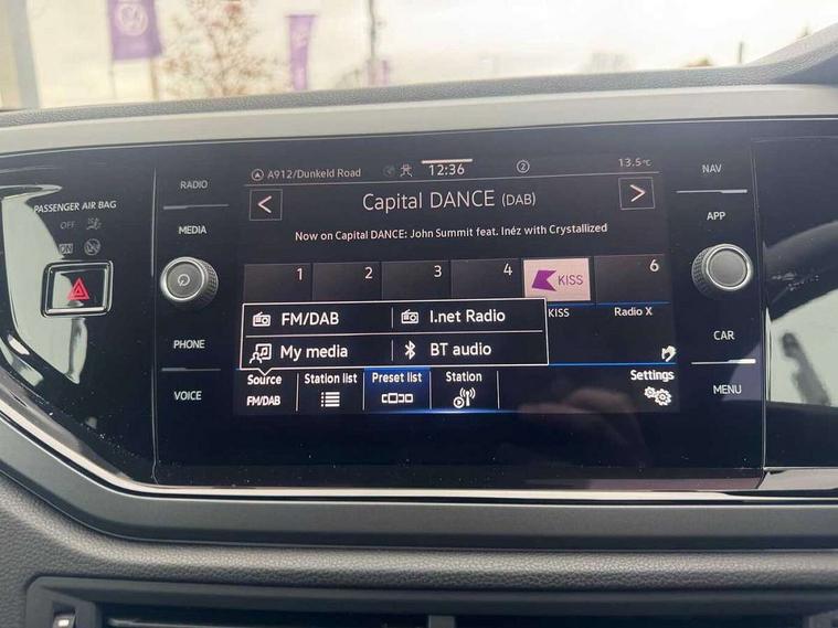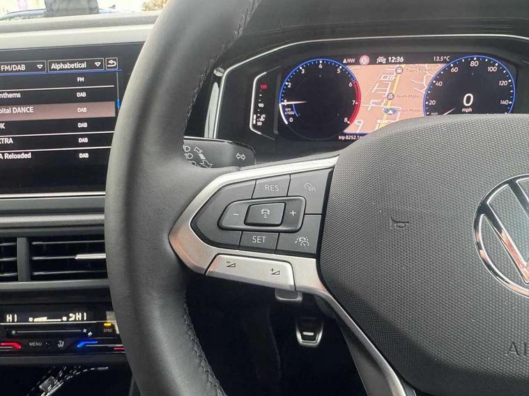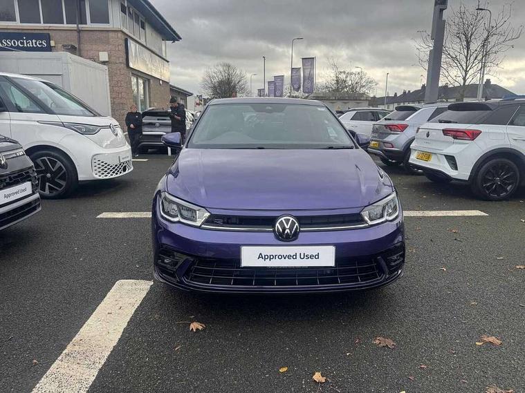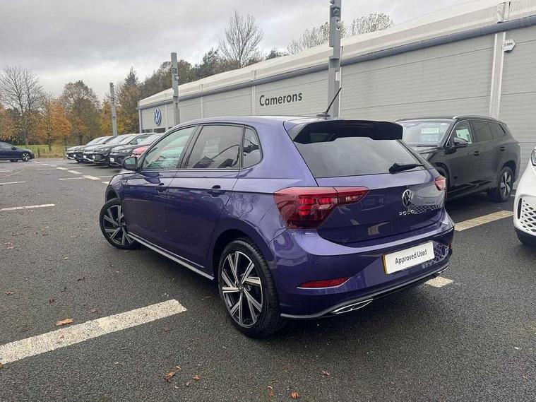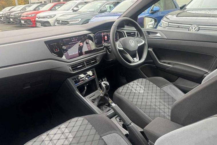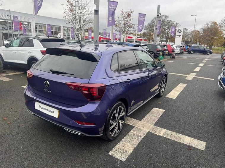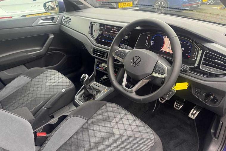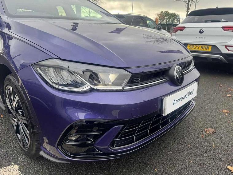 Advanced driver attention and drowsiness monitor, Bluetooth mobile phone interface, Digital Cockpit Pro with 10.25" Display, Dynamic road sign display, Emergency call service, Power assisted speed sensitive steering, Preparation for We connect and We connect plus, Speedo and rev counter, electronic odometer, trip, service interval display and fuel gauge, Standard rear axle, Travel Assist - Lane keeping system and traffic jam assist, Travel assist including emergency assist, Trip computer, Warning signal and warning light for front and rear seatbelts not fastened, Washer fluid level indicator, Wireless app connect, Front wheel drive, Rear shock absorpion, Start-stop system with battery regeneration (recuperation - energy recovery during braking), DAB Digital radio, Diversity antenna for FM reception, Front and rear 6 speakers, Body colour bumpers, Body colour door handles, Electric front windows, Front scuff plates with R-Line logo, Heat insulating darkened glass in side and rear windows, Heat insulating glass windscreen, Power folding adjustable/heated exterior mirrors and front passenger exterior mirror lowering function, Rear electric windows, Rear fog light, Rear side wing doors, Rear windscreen washer and wiper with interval delay, Third brake light, 12V power socket in centre console, 2 USB-C ports in the front, 2 USB-C charging sockets on the center console in the rear, 3 rear head restraints, 60/40 split folding rear seat and rear seat bench not split, Air care climatronic air conditoning system with active combination filter and 2-zone temperature control, Black roof lining, Chrome plated radiator grille inserts, air vent surrounds and light switch surrounds, Door and side trim panel, Driver and front passenger seat height adjustment, Driver/passenger sunvisors with illuminated vanity mirrors, Front + rear carpet mats in recycled material, Front centre armrest, Front footwell illumination, Front seat backrest storage pockets, Front sports comfort seats, Handbrake lever handle in leather, Headliner in recycled material, Isofix child seat preparation easy-fit (for two outer rear seats, and front passenger seat) compatible with I-size, Karoso artvelours cloth upholstery, Leather trimmed gear knob, LED interior light with switch off delay and dimmer, 2 reading lights front and rear, Luggage compartment cover, Luggage compartment floor, Luggage compartment lighting, Lumbar adjustment for front seats, Multifunction steering wheel, Single front passenger seat, Stainless steel pedals, Standard pedal cluster, Light and sight pack - Polo R-Line/Black Edition, 3 point height adj front seatbelts + pretensioners, 3x3 point rear seatbelts, ABS, Driver and front passenger airbag with front passenger airbag deactivation, Drivers and front passengers safety optimised head restraints, ESC (Electronic stability control) + EDL (Electronic Differntial lock) and ASR (Traction control), Extended and predictive pedestrian/ cyclist protection, Front curtain and side airbags with center airbag, Hill hold control, Manual child lock in rear doors, Single tone horn, Tyre pressure loss indicator, Alarm with interior protection, Anti-theft alarm system with interior monitoring, backup horn, and towing protection, Anti-theft wheel bolts, Electronic engine immobiliser, Chrome applications on rotary light, mirror adjustment, window regulator switches, outlet with frame in black, Dark grey anodised matt decorative inserts in dash and front door panels, Low rolling resistance tyres,