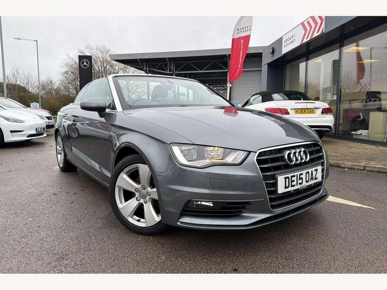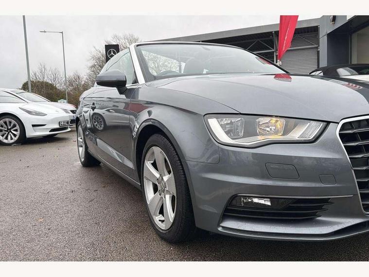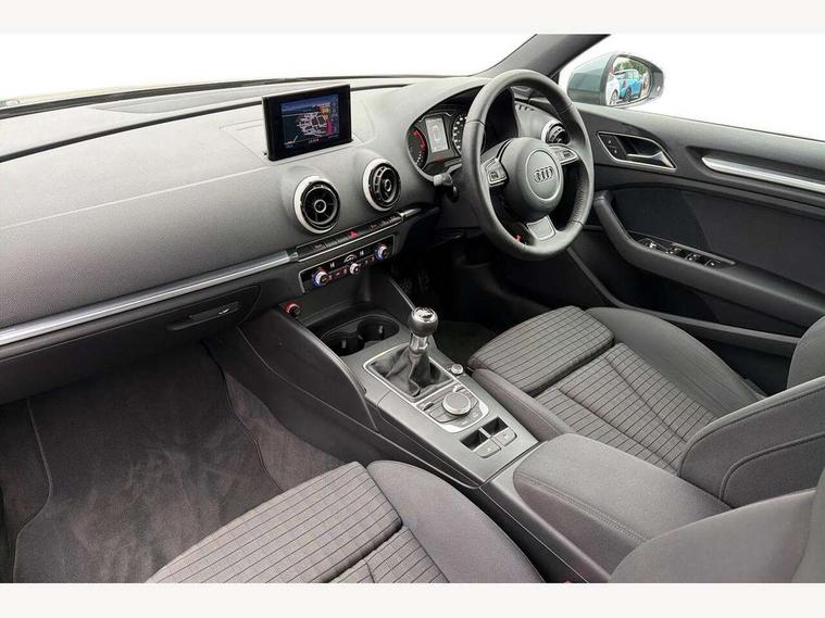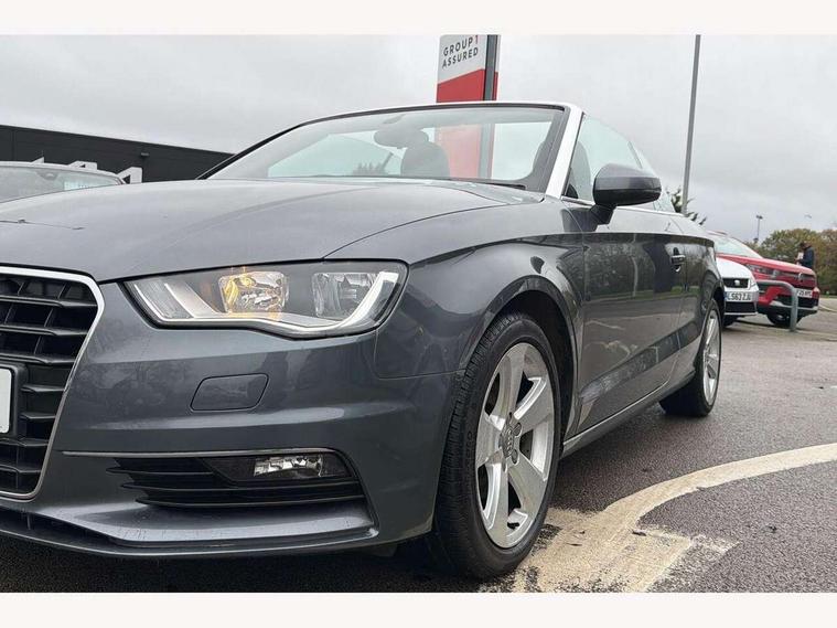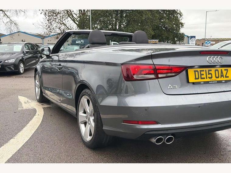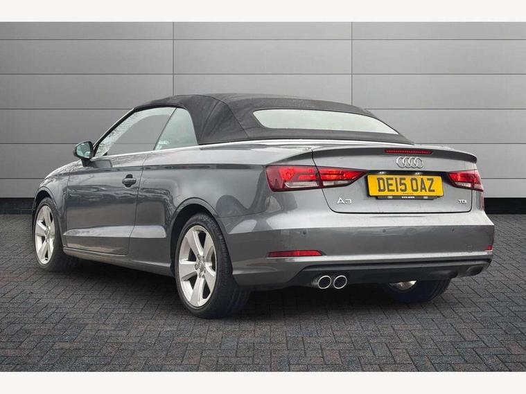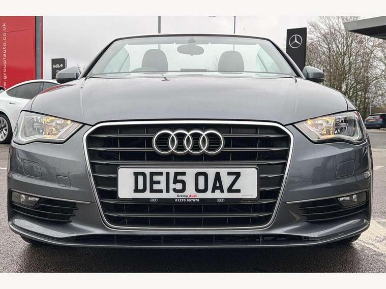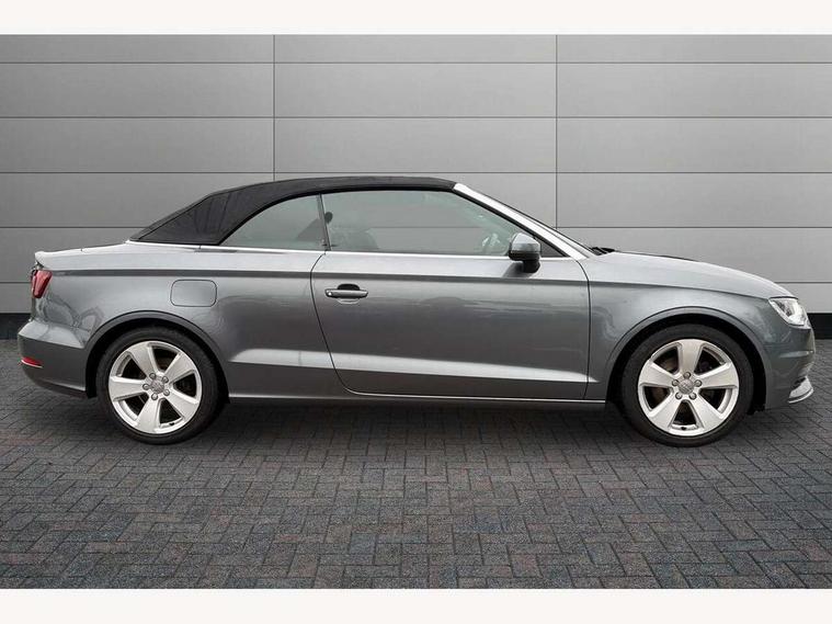 Colour driver's information system display, Fatigue detection system, Low washer fluid indicator, Service interval indicator, Voice control system, Diesel particulate filter, Audi music interface, DAB Digital radio, Speed dependent audio volume control, Adaptive brake lights, Aluminium side window trim, Body colour bumpers, Body colour door mirrors with integral indicators, Chrome exhaust tailpipes, Chrome fog light surround, Daytime running lights, Electric front+rear windows, Front fog lights, Fully automatic acoustic hood, Heated rear window, Heated windscreen washer jets, Twin exhaust tailpipe, 2 height adjustable rear headrests, 3 spoke leather multifunction sports steering wheel, 4 lashing points to secure luggage, 50/50 split folding rear seat, Adjustable front armrest, Aluminium door sill trims, Driver/passenger sunvisors, Drivers underseat storage, Dual zone electronic climate control, Front and rear interior lights with delay, Front sports seats, Front/rear floor mats, Height adjustable front seats, Height/reach adjustable steering column, Illuminated glovebox, ISOFIX child seat preparation+airbag deactivation, Storage compartment in centre console, Storage compartments in doors, Light and rain sensor pack - A3 Cabriolet, 3 point seatbelts on all seats, ABS/EBD, Active bonnet, Active front headrests, ASR, Automatic roll over protection, Collision mitigation braking system, Driver and passenger side airbags, Driver/Front Passenger airbags, Drivers knee airbag, EDL, Electromechanical parking brake, ESC - Electronic Stability Control + traction control, Front passenger airbag deactivation, Seatbelt warning, Tyre pressure monitor, Warning triangle and first aid kit, Anti-theft wheel bolts, Folding key, Remote control central locking, Thatcham category 1 alarm + immobiliser, Aluminium air vent surrounds, Aluminium trim elements, Space saver spare wheel,