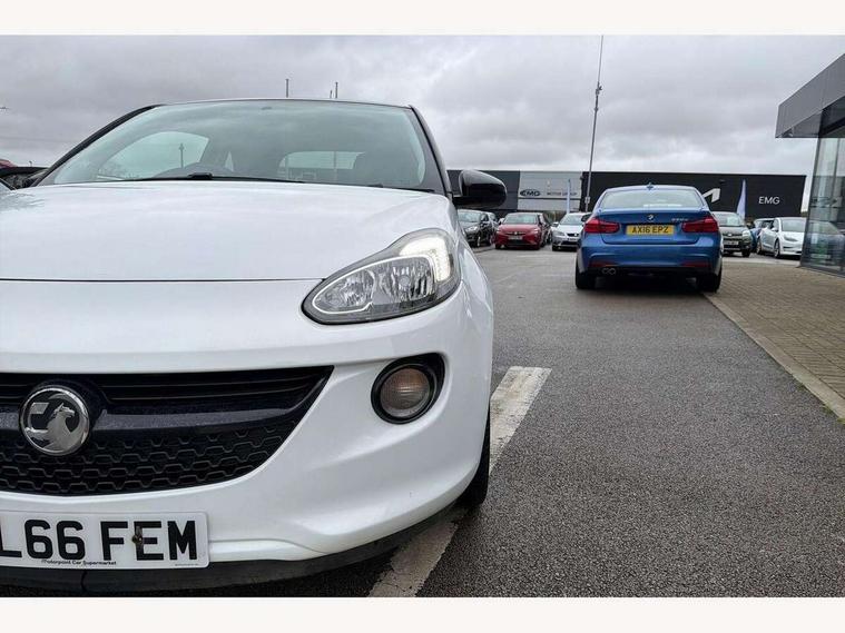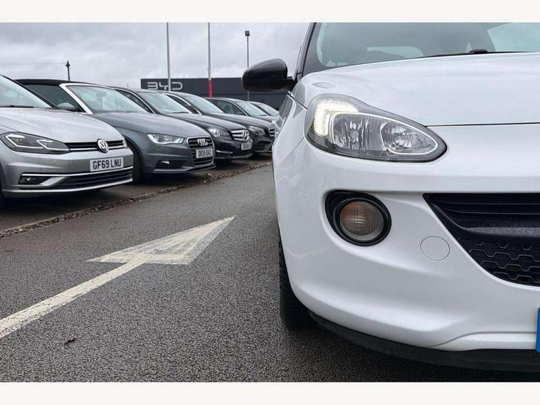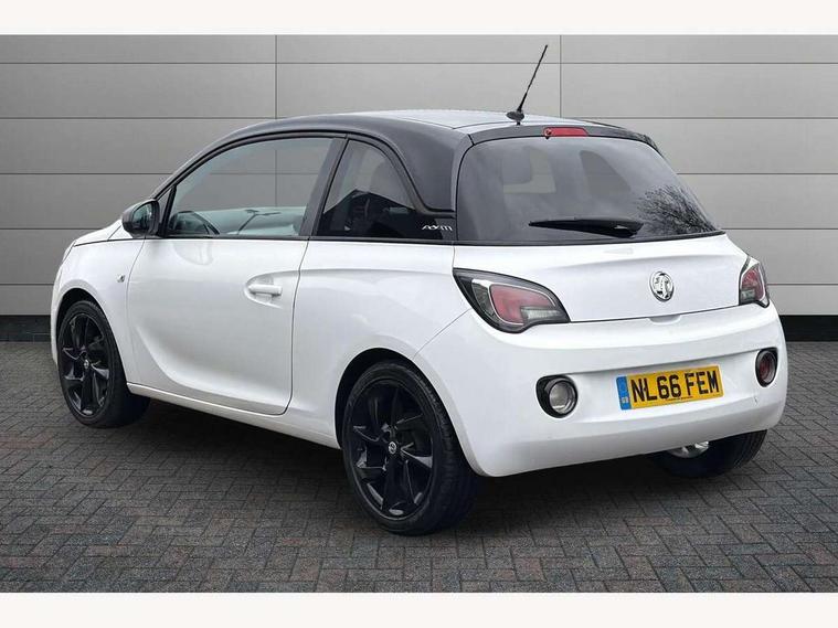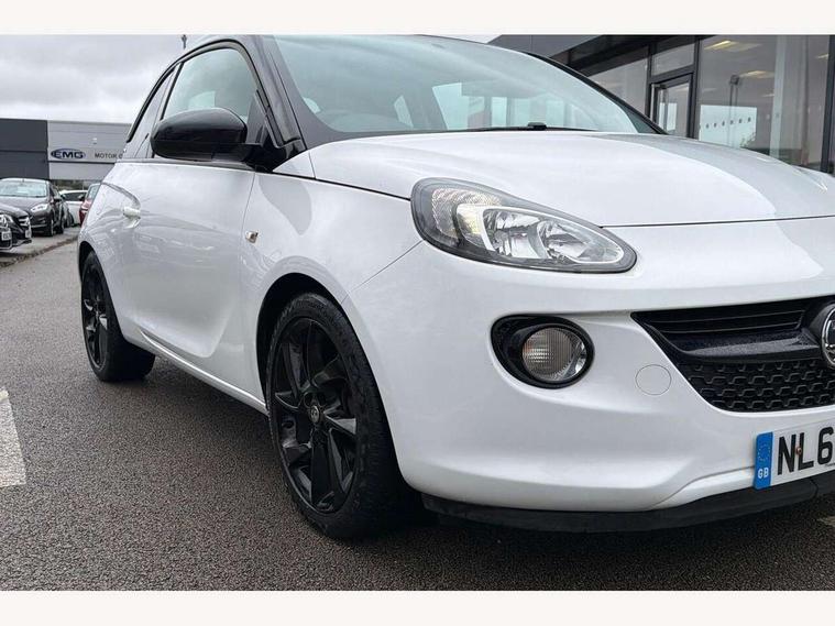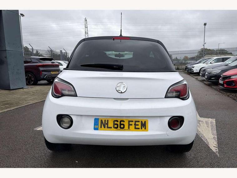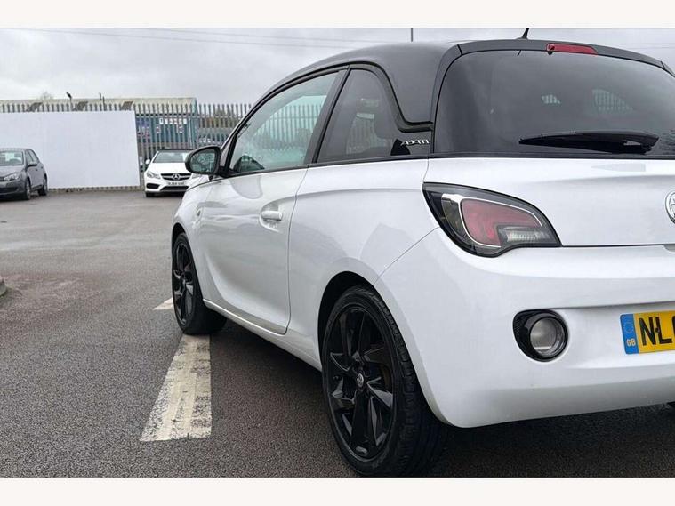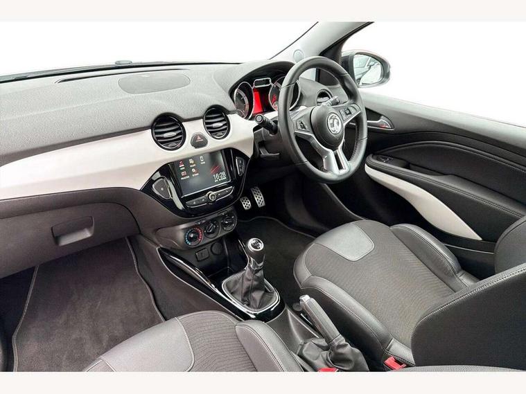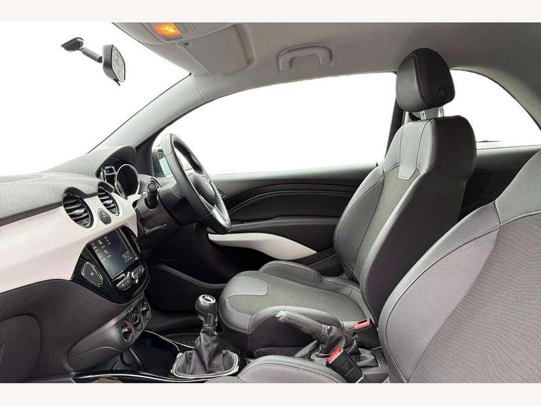 Bluetooth system, Cruise control + speed limiter, Digital clock, Electronic odometer and trip odometer, IntelliLink infotainment system, Low fuel level warning light, On board computer, Rev counter, Service interval indicator, Speed sensitive power steering, Auxiliary input socket, Bluetooth audio streaming, DMB digital radio, Steering wheel mounted audio controls, USB connection, Adaptive brake lights, Electrochromic automatic anti-dazzle rear view mirror, Front grille bar - Black jack, Laminated windscreen, LED daytime running lights, LED tail lights, 12V power socket in centre console, 2 rear cupholders in centre console, 50/50 split folding rear seat, Air conditioning, Air recirculation control/activation light, Colour-keyed fleece velour carpets, Driver/front passenger assist handle, Driver/front seatbelt pretensioners, Facia, door panel inserts in exterior colour, Front body-lock seatbelt pretensioners, Front door pockets, Front seats - 'Easy Entry', Height adjustable driver's seat, Height/reach adjust steering wheel, Illuminated load area, Interior courtesy light operated by all doors, Leather steering wheel, Luggage cover, Morrocana cloth upholstery, Sports pedals, Twin sunvisors with document holders and drivers covered mirror, Roof colour pack (Black Jack) - Adam, ABS, ESP plus, Hill start assist, Seatbelt warning, Side airbags, Side impact protection beams, Traction control, Tyre pressure monitoring system with individual tyre pressure display, Anti-drill door locks, Electric tailgate lock with touchpad, Folding key, Immobiliser, Locking wheel nuts, Remote central locking, 17" Hurricane alloy wheels in black gloss finish, Tyre inflation kit,