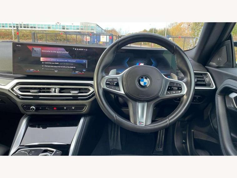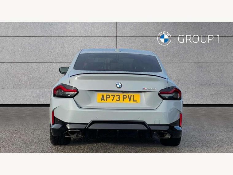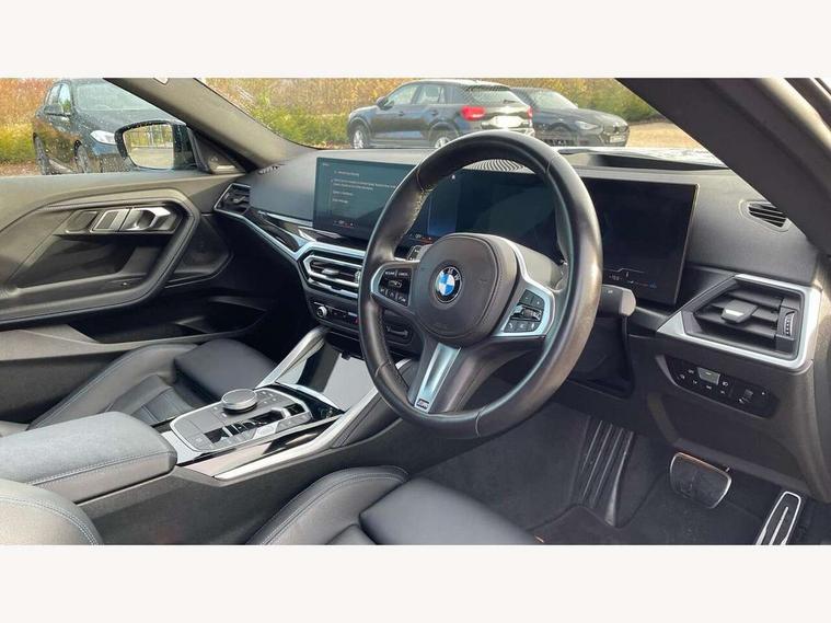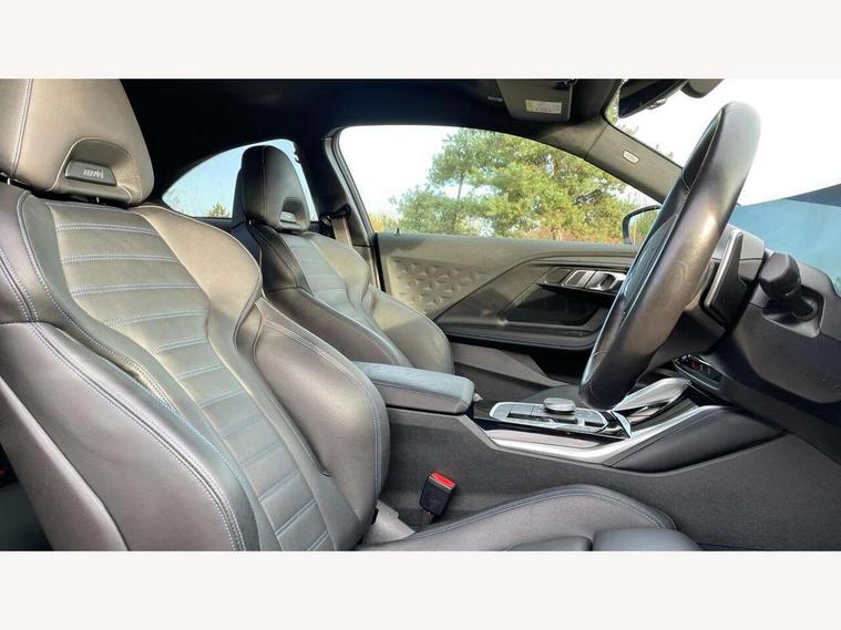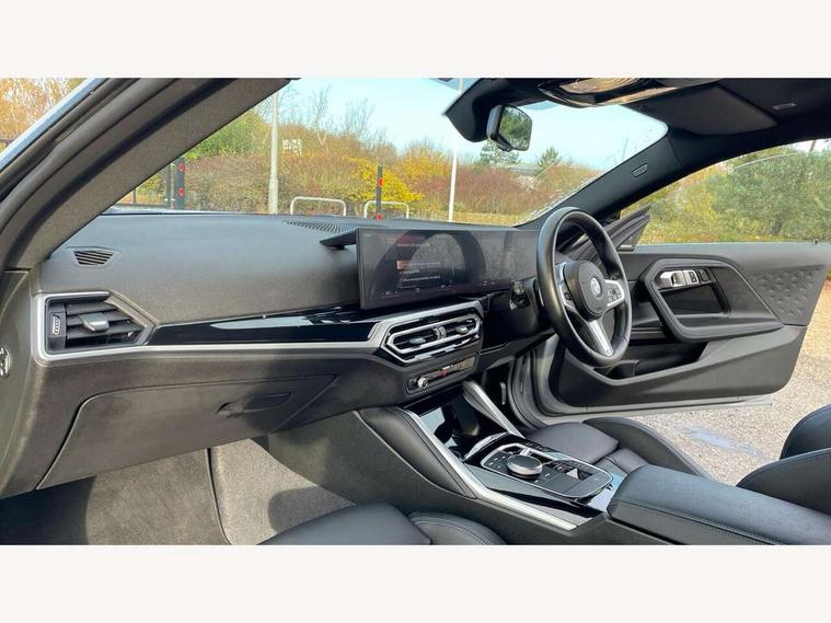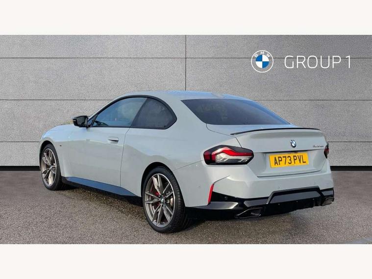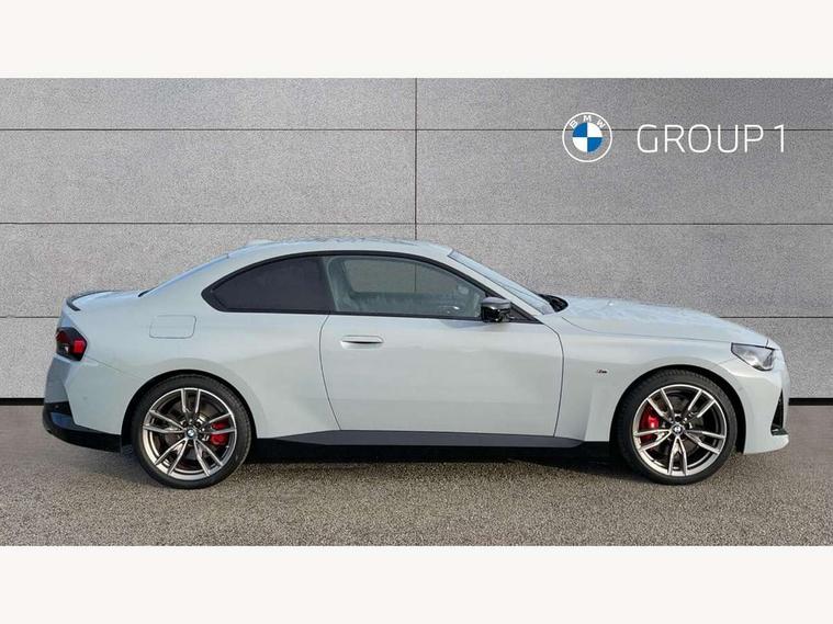 2 USB connections for charging and transferring data, 4G LTE connectivity with hard wired 4G network sim card, Attentiveness assist, Bluetooth with USB, BMW ConnectedDrive online services, BMW Intelligent Personal Assistant, BMW operating system 8 with variable, configurable widgets display information in real time, BMW Teleservices, Check Control warning system for monitoring of lights and door/luggage compartment open warning, Direct selection buttons, Drive off assistant, Driving experience switch with sport+ mode, Eco pro mode, Electric power steering, Front and rear parking sensors, Front/rear Parking distance control, iDrive controller with turn and press function, Integrated owners handbook, Intelligent functions, Live cockpit plus with nav function 12.3" instrument cluster and 14.9" centre display, Oil sensor for level and grade, Optimum shift indicator, Personal Profile, Touch operation on control display, Variable sport steering, Widescreen multi-media display, WiFi interface for wireless connection of mobile terminal devices, Aluminium lightweight construction, Balancer shaft, BMW TwinPower Turbo inline 6-cylinder petrol engine, Double VANOS, Drive performance control with ECO PRO comfort + sport mode, High precision injection, M Sport differential, Petrol Particulate Filter, Sport automatic steptronic transmission with gearshift paddles, manual gearshift time display, launch control, coasting idle ECO PRO/COMFORT modes, Twin scroll turbocharger with Valvetronic, xDrive with rear orientated application, DAB tuner, Acoustic windscreen wipers for reduced driving noise, Adaptive LED Headlights, Automatic windscreen wipers and automatic headlight, Automatically dimming rear view mirror, BMW individual lights shadow line, Body colour door handles flush with door surface, Body colour front and rear bumpers, Daytime running lights, Electric windows - front and rear, with open/close fingertip control and trap release, Exhaust tailpipes x 2 - free form finisher in black chrome in left and right, Exterior air inlets in front bumper with embellishers in high gloss black, Fading support, Flap controlled M Sport exhaust system, Front and rear bumper system with replaceable deformation elements, Front door sill finishers in black plastic with BMW designation, Front ornamental grille frame in high gloss black, Front windscreen wipers with integrated washer jets, Green tinted heat protection glazing, High beam assistant, High gloss black exterior M mirror caps, High gloss black sill, bumper trim sides and diffuser insert, High gloss shadowline exterior trim in mirror triangle cover, mirror cover panel, mirror bezel and window border, High level third brake light, Indicators integrated int mirror housing, LED registration plate light, LED technology rear tail lights, brake lights and turn indicators, Lightweight engineering, M Sport spoiler - Gurney in body colour, Model designation and M badges in cerium grey, Model designation on right side of tailgate, Rear boot, Rear fog lights, Reversing light in rear light cluster, Shark fin antenna, Side frame decorative moulding black high gloss, Single part LED rear lights with smoked glass components, Sun protection glass, Trailer stabilisation logic, Visible VIN plate, xDrive designation on left tailgate, 12V power socket in front centre console with blanking plug, 2 cupholders in front centre console, 2 zone automatic air conditioning, Ambient lighting, Compartment in front of cupholder, Conditioned based service, Driver seat backrest width adjustment, Electric front seat adjustment with driver memory, Front and rear side armrests integrated into door trim, Front armrest, Front door pockets, Front head restraints, Front M Sport seats, Front passenger seat lumbar support, Heated front seats, Illuminated glove compartment with separate small compartment, Lumbar support for driver, M headliner Anthracite, M sport leather steering wheel, M240i badge in instrument cluster, Manually adjustment steering wheel column, Rear seat backrest with manual 40:20:40 split folding, Rear seat centre foldable armrest with integrated cup holder, Single front passenger seat, Storage compartment between rear seats, Storage tray and compartment with cover in centre console, Sun visors with vanity mirrors and insert tab, Through loading system with 40/20/40 split folding 2 rear seat in 2nd row, Two folding rear seat headrests, Velour floor mats, Vernasca leather upholstery, Additional storage compartment pack without USB - 2 Series Coupe, Connected pack professional - 2 Series Coupe, Interior and exterior mirror pack - 2 Series Coupe, M Sport exterior styling aerodynamics pack - 2 Series Coupe M240i, 2 tone horn, Anti lock braking system (ABS) with cornering brake control, Automatic Stability Control (ASC), BMW emergency call, Brake drying, Child seat ISOFIX attachment for the two outer rear seats, Crash sensor activating of airbags, Unlocking doors, hazard warning lights, interior light, safety battery terminal, Deactivation of fuel pump in the event of a crash, Driver and front passenger airbags, Driver and front passenger side airbags, integrated in the door side seat backrest bolsters for all seat variants, Dynamic brake control, Dynamic stability control + (DSC+), Dynamic Traction Control - DTC, Electrically operated hand brake including automatic hold function and automatic release when driving off, Front and rear disc brakes, Head airbags for all 4 outer seats, M seat belts, M Sport brake with red calipers, Manual deactivation of front passenger airbag, Seat belt security check for driver and front passenger, Seatbelt warning, Side impact protection, Three point seat belts on 4 seats including front belt stopper, pyrotechnic belt tensioners and belt force limiters, Tyre pressure sensor, Warning triangle and first aid kit, Alarm system (Thatcham 1) with remote control and electronic engine immobiliser, Central locking switch for all doors, fuel filler cap and luggage