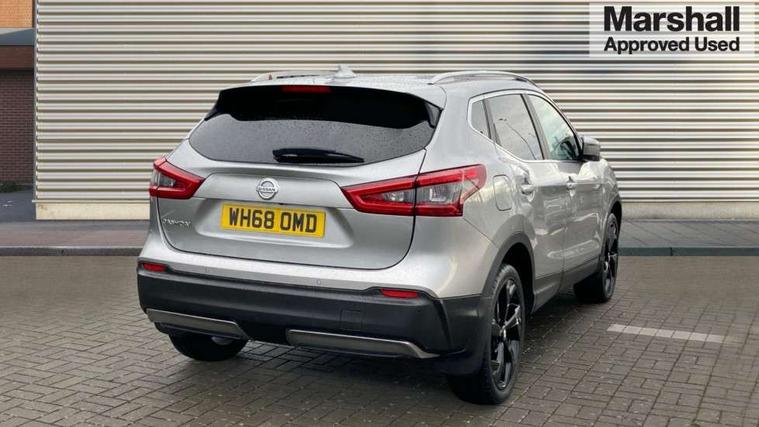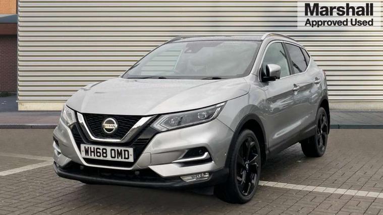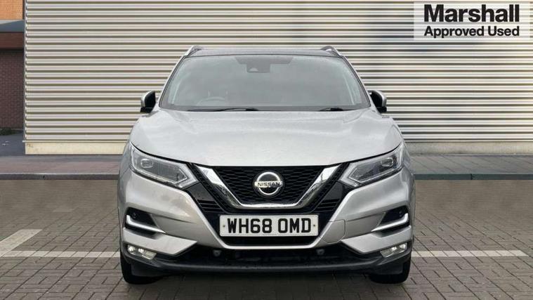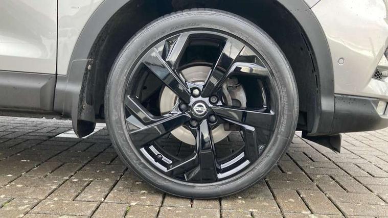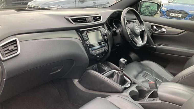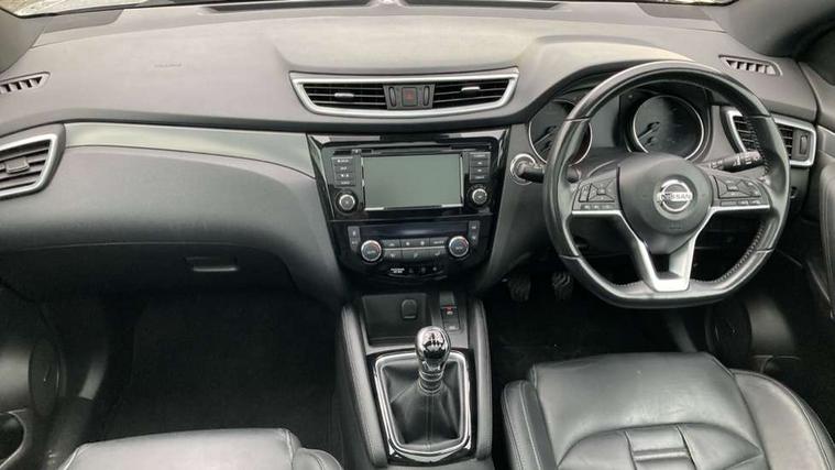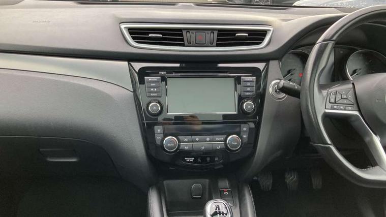 Advanced drive assist display 5'' TFT coloured screen, Android Auto, Apple CarPlay preparation, Bluetooth connectivity, Cruise control + speed limiter, Electric speed sensitive power steering, Front parking sensors, Intelligent around view monitor, Intelligent parking assist, Lane departure warning system, Nissan connect evo 7" touchscreen navigation and entertainment system, Normal or sport selectable steering, Outside temperature sensor, Push button starter, Rear parking sensors, Rear view camera, Service interval indicator, Smartphone integration, Stop/start system, Tomtom connected services, Traffic sign recognition, Trip computer, Voice control system, Nissan chassis control (intelligent ride control, intelligent trace control, intelligent engine brake), AM/FM radio, CD audio system, Aux-in socket, Bose premium 8 speaker system, DAB Digital radio, Steering wheel mounted audio controls, USB port, Anti dazzle rear view mirror, Auto wipers, Body colour bumpers, Body coloured door handles, Chrome window surround, Daytime running lights dip function when turn signal applied, Electric folding door mirrors, Electric front and rear windows with one touch illuminated window controls, Electric front/rear windows, Electrically adjustable door mirrors, Front fog lights, Gloss silver door mirror caps, Heated door mirrors, High beam assist, Intelligent auto headlights, LED indicators in door mirrors, Matt silver roof rails, Panoramic sunroof with one touch shade, Privacy glass, Rear roof spoiler, Rear wiper with reverse link, Shark fin antenna, Underbody vortex generators, 2 X front 12v power sockets, 3 height adjustable rear headrests, 60/40 split folding rear seat, Ambient lighting in centre console, Boot lighting, Centre console storage box/armrest, Chrome interior door handles, Configurable luggage board system, Dark headlining, Dual zone climate control, Electric 4-way lumbar support for drivers seat, Electrically adjustable driver seat, Electrically adjustable passenger seat, Front and rear door pockets with bottle holders, Front and rear seat belt pre-tensioners with load limiters, Height adjustable front headrests, Individual rear seat reading lights, Leather D shaped steering wheel, Leather gear lever, Leather knee pad, Manual lumbar support on passenger seat, Map reading lamp, Memory for drivers seat/door mirrors, Monoform front seats with plastic backboard, One touch electric shade, Parcel shelf stow function under luggage board, Pollen filter, Rear armrest with 2 cupholders, Synthetic leather wrapped door handle with contrasting stitching, Tilt/telescopic adjustable steering wheel, Heat package - Qashqai, LED pack - Qashqai, Safety shield plus pack - Qashqai, 6 airbags - Driver, front passenger, curtain and side airbags, ABS, ESP, EBD and brake assist, Auto hold function, Child locks on rear doors, Electronic parking brake, Front and rear seat belt warning, Front passenger airbag deactivation, Height adjustable front seatbelts, Hill start assist, Intelligent emergency braking with pedestrian recognition, Three 3 point rear seatbelts, Tyre pressure monitoring system, Anti-theft immobiliser, Intelligent Key, Remote central locking, Thatcham Cat.1 alarm, Carbon graphite dash trim, Tyre puncture repair kit,