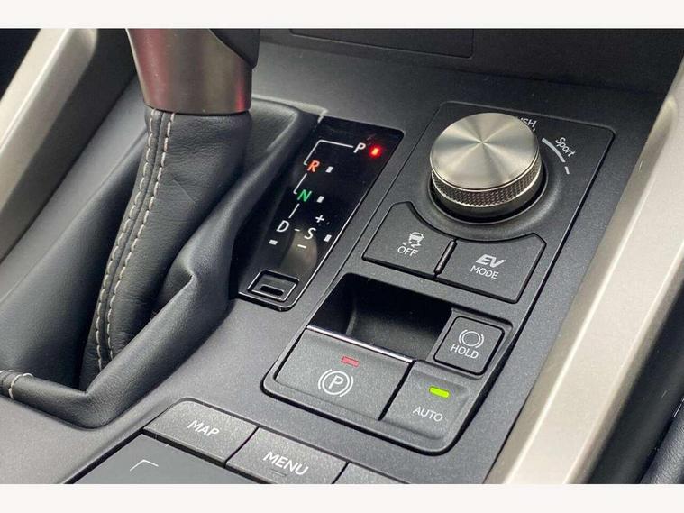 4 driving modes EV/Eco/Normal/Sport, 8" display screen with remote touch interface, Analogue clock, Apple car play/Android Auto, Bluetooth telephone connectivity, Electric speed sensitive power steering, Intelligent parking sensors - 4 front and 4 rear, Lane change flasher function, Lexus link connected services with available optional wifi, Lexus navigation system, Push button starter, Reversing camera, All wheel drive system, Vehicle Dynamics Integrated Management (VDIM), Vehicle Stability Control (VSC), 2 USB ports, 8 Speakers, AUX socket with VTR compatibility, CD player, DAB Digital radio, Auto dimming interior rear view mirror, Bi LED headlight with Auto high beam, Body adhesive, laser screw welding and laser brazed roof structure, Front and rear one touch power windows, with anti-jam protection, Heated and auto folding door mirrors with turn indicators, Hidden exhaust pipe, LED brake lights and rear lights with emergency brake signal, LED daytime running lights, LED front and rear sequential indicators, Rain sensor windscreen wipers, Roof rails, 12V accessory port centre console and luggage compartment, 2 cupholders in front centre console, 2 map pockets in the rear, 2 x fixed shopping bag hooks in boot, 2 x sun visors with vanity mirror and lamp, 6 tie down hooks in boot, 60/40 split folding rear seat, 8 way driver/passenger electrically adjustable front seats, Adjustable rear seat backrest, Card holder installed in driver and passengers sun visors, Centre armrest with storage box, Dual climate control air conditioning system, Front and rear head restraints, Front and rear textile carpet mats, Heated front seats, Leather gear lever, Leather steering wheel with paddle shifts, LED interior illumination, Rear air vents, Rear centre armrest with 2 cupholders, Self charging hybrid, Tahara leather upholstery, Whiplash Injury Lessening (WIL) feature (active headrest) for seats, 2 x Isofix child rear seat restraints, 3 point ELR front seatbelts with pretensioners, 3x3 point rear seat belts, ABS, Adjustable seat belt anchor points, Driver and front passenger 2 stage airbag, Driver/front passenger side airbags, Drivers knee airbag, EBD + Brake Assist, ECB (Electronically Controlled Brake System), Electronic parking brake, Front and rear curtain shield airbags, Front passenger seat cushion airbag, Hill start assist, Hybrid automatic with 6 stage sequential shift and kick down switch, Lexus safety system - dynamic radar cruise control, pre collision system day and night, lane tracing assist, road sign, automatic high beam, OTA, Passenger airbag cut-off device, Traction control, Tyre pressure warning, 2 x remote key fobs, Anti-theft system with siren, alarm, intrusion sensor, glass breakage sensor, tilt sensor and engine immobiliser, Locking wheel nuts, Speed sensitive auto door locking, Two motion door lock with double lock, VIN Window etching, Silver inlays, Space saver spare wheel,