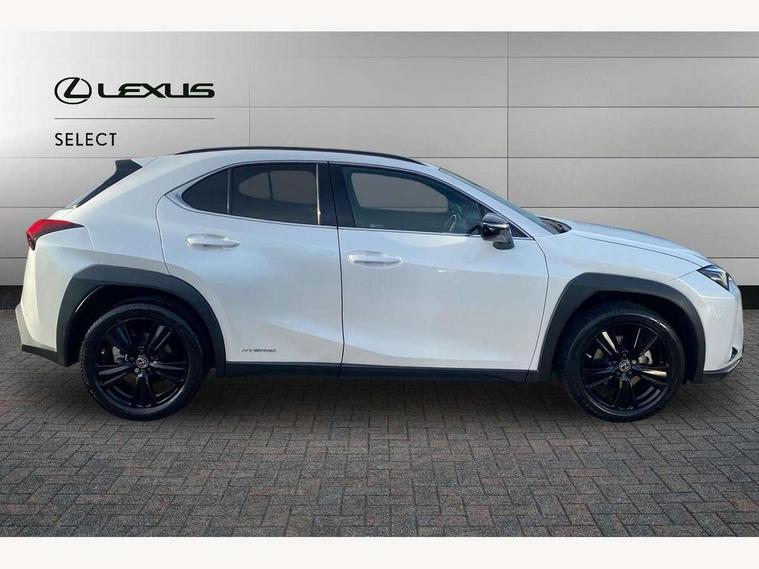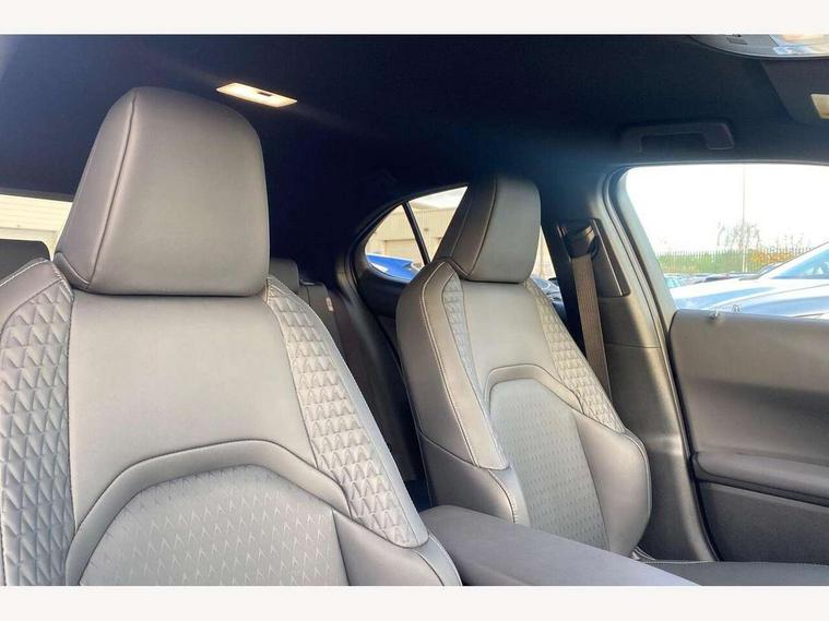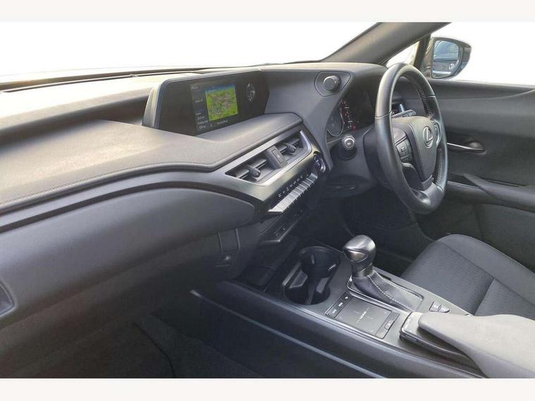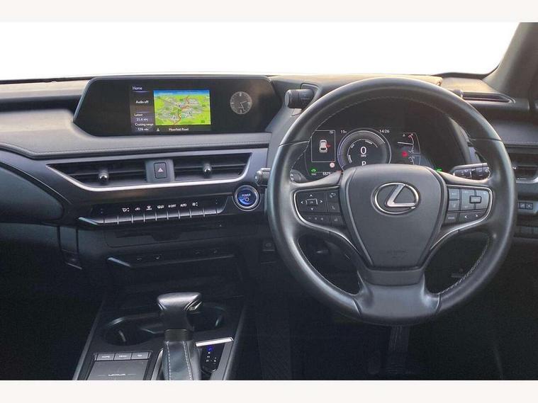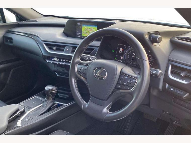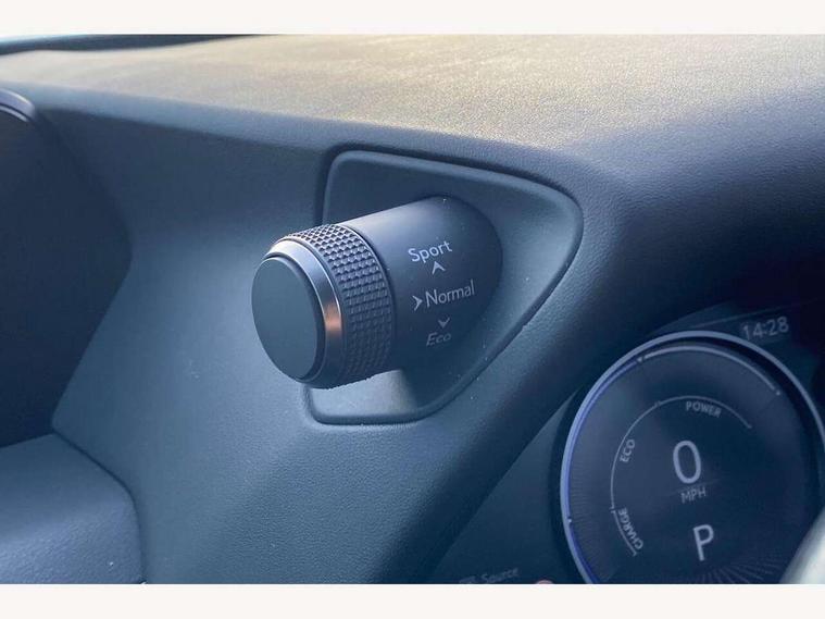 4 driving modes EV/Eco/Normal/Sport, 7" Lexus media display, 7" TFT instrument cluster, Analogue clock with GPS function, Apple car play/Android Auto, Compatible mobile phone bluetooth with audio streaming, E-call, Electric power steering (EPS) with speed sensitive features, Lane change flasher function, Lexus link connected services, Lexus safety systems + includes dynamic radar cruise control, pre collision system day and night, lane tracing assist, road sign assist, Push button start, Remote touch interface, Trip computer, Vehicle Dynamics Integrated Management (VDIM), Vehicle Stability Control (VSC), 2 front USB and 2 rear USB charging points, 6 speakers, AM/FM and DAB radio, AUX socket with VTR compatibility, CD player, Acoustic windscreen, Aero stabilising arch mouldings, Aero stabilising rear lights, Aero ventilated wheels, Bi-LED (low and high beam) headlights with Auto High Beam (AHB), Black roof drip mouldings, Black wheel arches, Body adhesive, laser screw welding and laser brazed roof structure, Body coloured bumpers, Electric adjustable/heated door mirrors, Front and rear one touch power windows, with anti-jam protection, Headlight cleaners, LED daytime running lights, LED tail lights, LED third brake light, Light green UV glass, Manual control of windscreen wipers, Rear wiper, Shark fin roof aerial, Single hidden exhaust pipe, Towing preparation, Variable front intermittent wipers, 12V accessory port centre console and luggage compartment, 2 cup holders in the front and rear centre console, 2 x folding shopping bag hooks in boot, 2 x sun visors with vanity mirror and lamp, 4 x tie down hooks in the boot, 5 headrests, 6 way driver and passenger manually adjustable front seats, 60/40 split folding rear seat, Card holder installed in driver and passengers sun visors, Centre armrest with storage, Driver and passenger door pocket, Dual zone electronic climate control + Nano-E humidity sensor, Glovebox, Illuminated entry system, Leather gear lever, Leather steering wheel, LED interior illumination, Map pockets in the rear of passenger's front seat, Premium fabric upholstery, Rear air vents with 2 USB chargers, Rear armrest with 2 cupholders, Storage tray under audio panel, Textile carpet mats, Tilt/reach adjustable steering column, Under deck storage, Under desk side storage, 2 x Isofix child rear seat restraints, 3x3 point rear seatbelts, Anti-lock braking system (ABS), BAS (Brake Assist System), Driver and front passenger 2 stage airbag, Driver and front passenger knee airbag, Driver/front passenger side airbags, EBD - Electronic brakeforce distribution, ECB (Electronically Controlled Brake System), Electric parking brake, Front adjustable seatbelt anchor points, Front and rear curtain shield airbags, Front outer seatbelt+pre-tensioners, force limiter+tension reduction: 3-point with active safety link to PCS, Hill start assist control (HAC), Passenger airbag cut-off device, Rear outer seatbelt+pre-tensioners, force limiter+tension reduction: 3-point with active safety link to PCS, Centre belt w/o pre tensioner+force limiter, Secondary Collision Brake (SCB), TRC (Traction Control), Tyre pressure warning, 2 x remote key fobs, Anti theft system : Alarm instruction sensor, glass breakage sensor and engine immobiliser, Locking wheel nuts, Remote central door locking, Speed sensitive auto door locking, Two motion door lock with double lock, VIN Window etching, 17" Alloy wheels, Tyre repair kit,