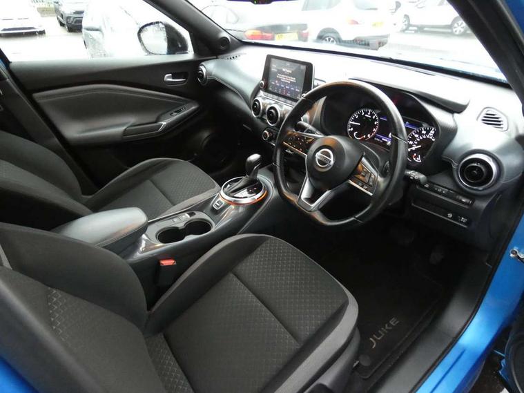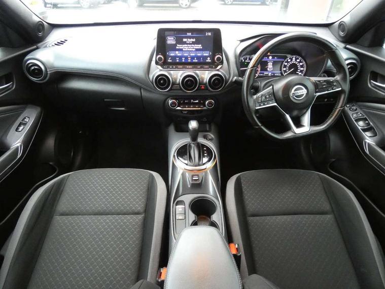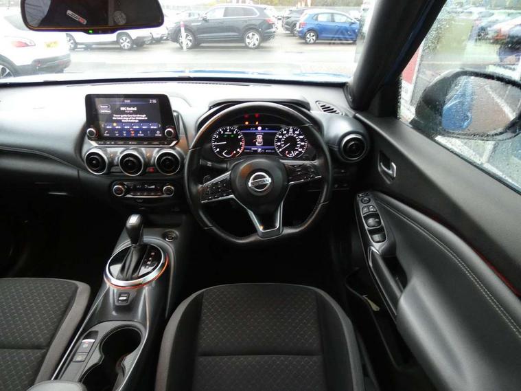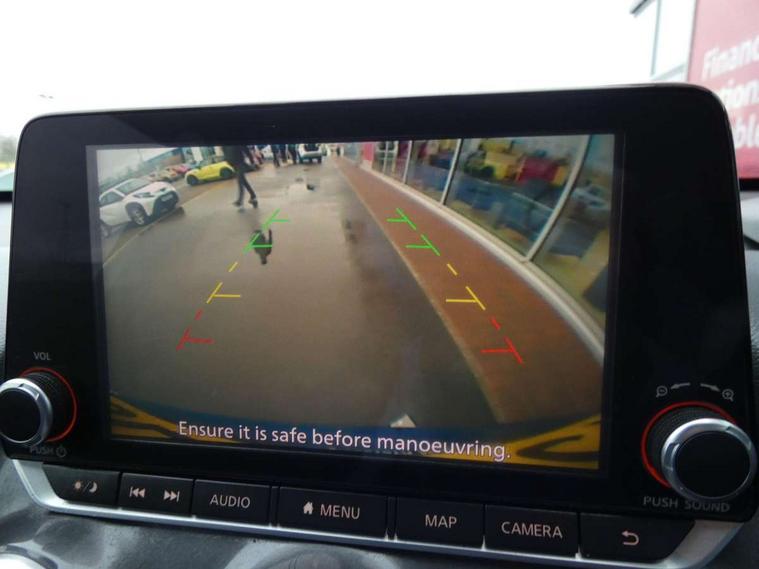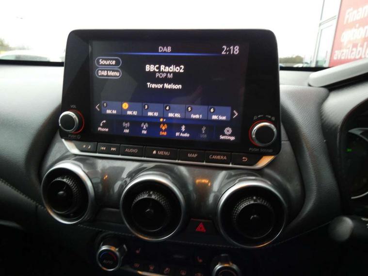 7" full colour TFT screen combimeter, 8" infotainment colour display with touch screen, Apple CarPlay and Google Android auto, Drive modes select (Eco, normal and sport), Emergency and breakdown call, Front parking sensor, Idle start/stop system, Intelligent lane intervention, Lane departure warning system, Nissan connect nav with TomTom traffic, Nissan connect services and Wifi connection, Outside temperature sensor, Power Steering, Rear parking sensor, Traffic sign recognition, Trip computer, Gasoline particulate filter, 6 speakers, Bluetooth system, USB, Aux-in and 12V socket, DAB Digital radio, Rear console USB port, Auto dimming interior rear view mirror, Automatic hazard signal with emergency stop signal, Body colour bumpers, Body colour door handles, Electrically adjustable door mirrors with integrated indicators, Follow me home headlights, Front and rear electric window with one touch driver and passenger window, Heated and auto folding door mirrors, High beam assist, LED daytime running lights, LED front fog lights, LED headlamps, LED rear fog lamp, LED rear lamps, Rain sensor windscreen wipers, Rear privacy glass, Rear spoiler, Rear wiper, Three blink turn signal, 3 height adjustable rear headrests, 60/40 split folding rear seat, Automatic climate control, Card holder on driver sunvisor, Cloth upholstery, Door ambient lighting, Driver and passenger sliding and reclining seats, Driver seat back pocket, Driver side rear coat hanger, Driver/passenger sunvisors and illuminated vanity mirrors, Front and rear cabin lights, Front armrest, Front door pockets with bottle holders, Front head restraints, Front/rear passenger grab handles, Gear console ambient circle lighting, Grey synthetic leather kneepad, Height adjustable driver's seat, Internal chrome door handles, Leather gearshift knob, Leather steering wheel, Luggage board, Luggage space lighting, Monoform sporty seats, Multifunction steering wheel, Passenger seat back pocket, Rear door bottle holders, Steering wheel mounted gearshift paddles, Telescopic steering wheel adjustment, Two cupholders in front centre console, Two rear isofix child seat anchorage points with top tether, Voice recognition switch on steering wheel, Welcome light and console tray ambient lighting, ABS with EBD and brake assist, Active ride control, Active Trace Control, Driver and passenger airbags, Driver and passenger side airbags, Electric handbrake with auto hold function, Electronic Stability Programme (ESP), Front and rear curtain airbags, Height adjustable seatbelts, Hill start assist, Intelligent emergency braking with pedestrian and cyclist recognition, Seatbelt reminder for driver/front passenger and rear seats, Single tone horn, Three 3 point rear seatbelts, Traction control, Tyre pressure monitoring system, VDC Dynamic Vehicle Control, Ventilated rear brake discs, Alarm, Immobiliser, Intelligent Key with push button starter, Remote central locking,