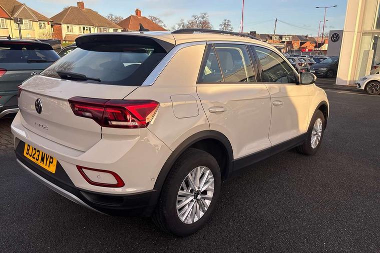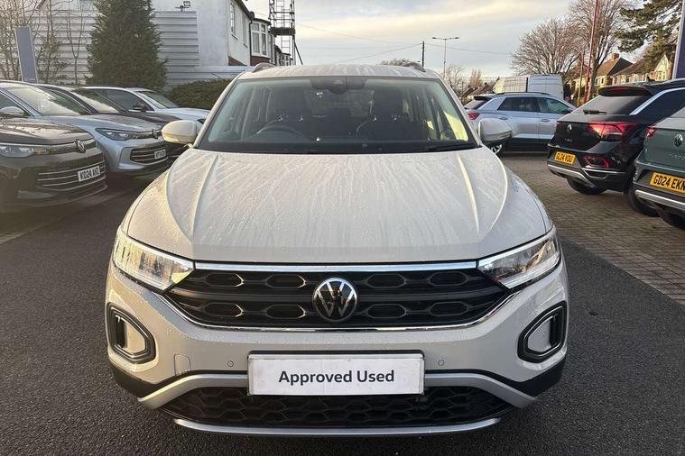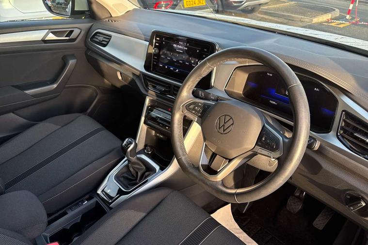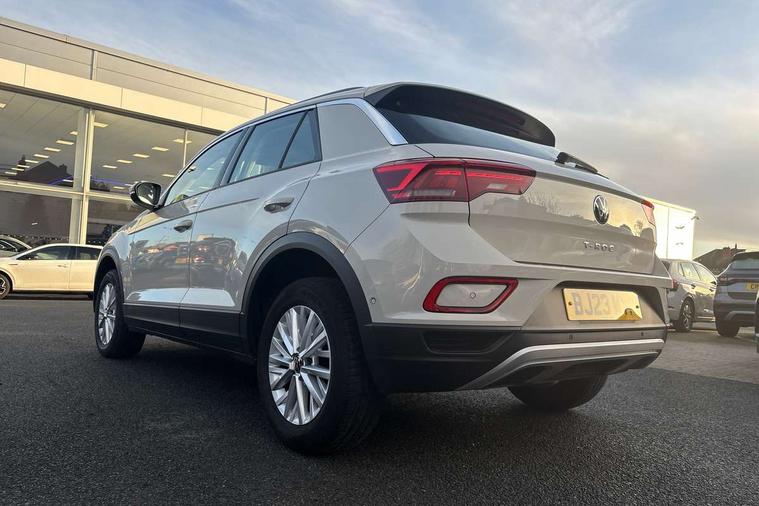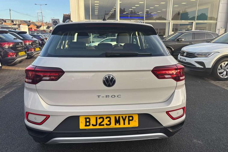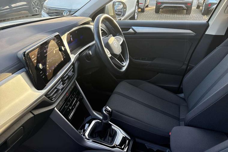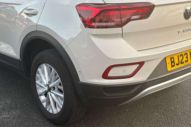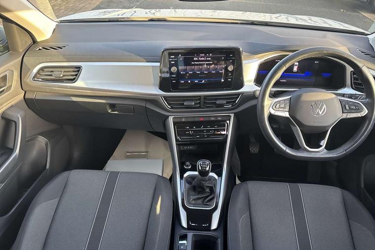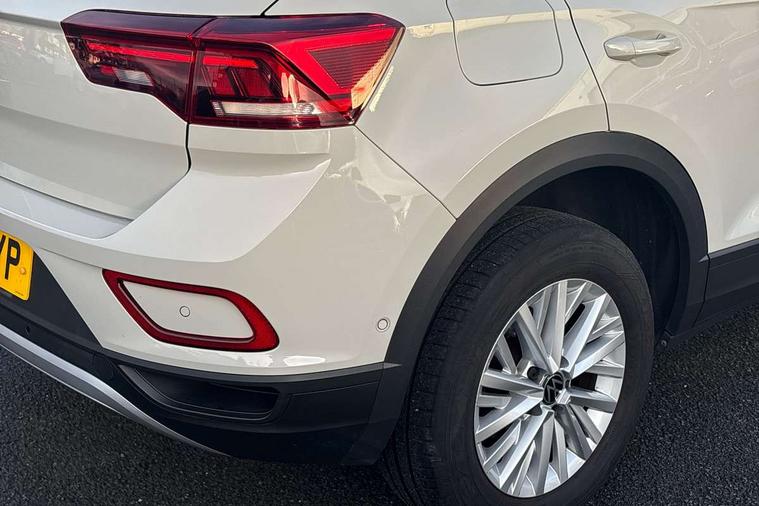 Bluetooth mobile phone interface, Driver alert system with fatigue detection, Driver tips and journey analysis, Emergency call service, Lane keeping system Lane Assist, Modified key software - reduce switch off time for key status change to Long no motion, Online services, Park assist including front and rear parking sensors, Power assisted speed sensitive steering, Service interval indicator, Tailgate/trunk lid release from outside, Think blue trainer driver tips and journey analysis, Warning sound and light for front seatbelts unfastened, Wireless app connect, Battery regeneration during braking, Front shock absorption, Rear shock absorption chassis with increased ride height, Start/stop function with battery regeneration, DAB Digital radio, Diversity antenna for FM reception, Front and rear 6 speakers, Music playback - MP3, WMA and AAC files, Premium USB cable in choice of either Apple or Android smartphone compatibility, SD card slot, Simultaneous pairing of 2 compatible mobile devices, Title and cover art display, We Connect and We Connect Plus functionality, 3rd brake light, Auto dimming interior rear view mirror, Automatic hazard lights activation under emergency braking, Automatic headlight control with LED separate daytime running lights with coming/leaving home function, Black roof rails, Body coloured bumpers and radiator grille with chrome trim and front fog lamps with chrome bezel, Body coloured exterior mirror housings and door handles, Extended roof spoiler, Exterior mirrors aspherical on driver side, convex on front passenger side, External USB type C socket and charging sockets, Front windscreen wiper with intermittent wipe and 4 position delay, Heated rear window, LED Headlights, LED rear combination lamps, LED rear number plate lights, LED tail lamp rear comination lamps, Power windows with comfort operation and circuit breaker, Rain sensor, Rear exhaust tailpipe, Rear fog light on one side and reversing lights on both sides, Rear side wing doors, Rear wash/wipe with intermittent wipe setting, Remote electrically foldable door mirrors, puddle lights and reverse activated passenger's door mirror, 12V power socket in centre console, 3 rear head restraints, 3 seat bench in 2nd row, 4 load lashing points in luggage compartment, Air care climatronic air conditoning system with active combination filter and 2-zone temperature control, Ambient lighting with mirror logo projection, Cloth upholstery, Door and side trim panel in cloth, Drawer under drivers seat, Driver/front passenger seat height adjustment, Front centre armrest, Front comfort sports seats, Front cupholders x 2, Front reading light, Instrument lighting, white adjustable panel illumination, Interior light delay, Isofix child seat preparation, Leather gearshift handle, Load-through provision with cup holder when folded down ('Unsplit rear seat bench, split folding backrest, with centre armrest), Luggage compartment lighting, Lumbar support for driver's and front passengers seat, Non-folding front passenger seat backrest, Single front passenger seat, Storage compartment in left and right luggage area, Storage compartment in rear doors, Storage compartments in driver and front passenger doors, Sunvisors with illuminated vanity mirrors, Variable boot floor, height adjustable and removable, Driver assistance pack without proactive passenger protection - T-Roc, 3 point height adj front seatbelts + pretensioners, 3 point seatbelts in outer rear with ECE label, ABS, Child locks on rear doors, Driver and front passenger airbag with front passenger airbag deactivation, Driver and front passenger safety-optimised head restraints, Drivers seatbelt reminder, Electronic parking brake, Electronic Stability Control (ESC) inc EDL (Electronic Differential Lock) and ASR (Traction Control), Front and rear passengers curtain airbag system including front side airbags, Front assist with city emergency braking and pedestrian monitoring, Front disc brakes, Front seat side impact airbags, Hill start assist, Predictive pedestrian protection, Rear disc brakes, Single tone horn, Tyre pressure loss indicator, Volkswagen roadside assistance, Alarm with interior protection, Anti-theft alarm system with interior monitoring, backup horn, and towing protection, Remote central locking with SAFELOCK, radio remote control with 2 remote control folding keys, Pewter matt decorative inserts for intrument panel, centre console and door panels at the front, Trims for alloy wheels,