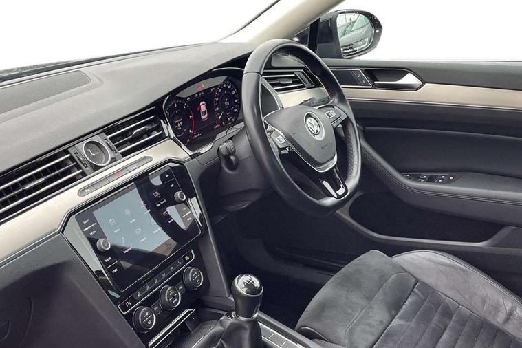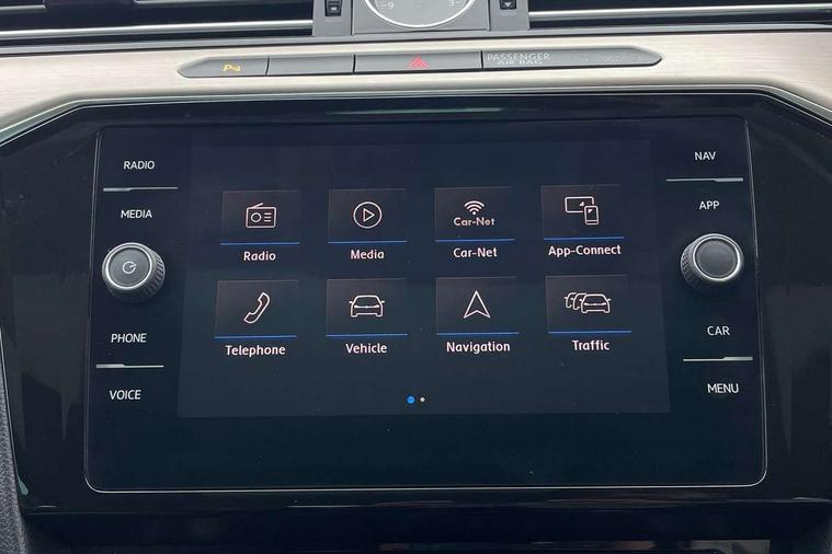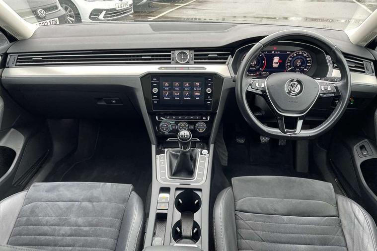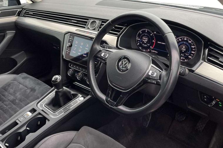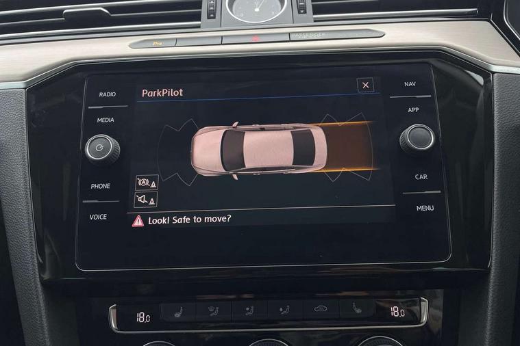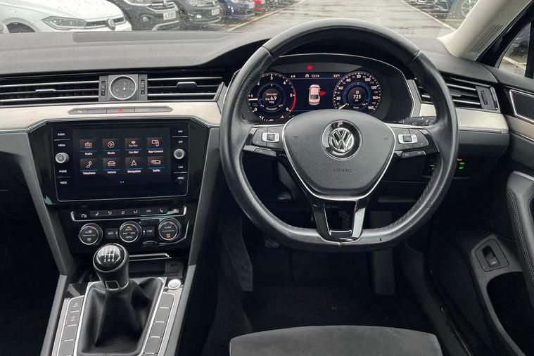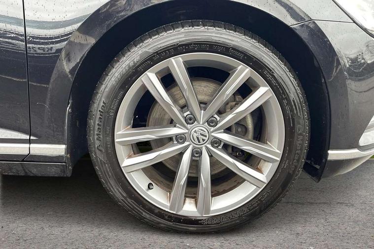 Adaptive cruise control, Analogue clock, App-Connect, Door/boot open warning light, Driver alert system, Driver profile selection, Exterior temperature gauge with frost alarm, Information display, Low washer fluid warning light, Multifunction computer, Remote boot release, Remote fuel flap release, Rev counter with fuel gauge, Service interval indicator, Speed limiter, Warning buzzer and light for front seatbelts unfastened, Diesel particulate filter, Auxiliary socket for external device, Composition media system with Radio/CD/MP3, DAB Digital radio, MDI with USB/iPod connection cables, SD card slot, Auto dimming driver's door mirror, Auto dimming rear view mirror, Automatic activation of hazard warning lights, Automatic headlights with dusk sensor, Body colour bumpers, Body colour door handles, Body coloured door mirrors, Chrome fog light surround, Chrome louvres in grille, Chrome side sills, Chrome side window surrounds, Chrome surround for air intake, Coming/leaving home lighting function, Electric front windows, Electric panoramic sunroof with sunblind, Electric rear windows, Electrically adjustable and heated door mirrors, Gloss black finish on B pillar, Headlight range control, Heated rear window, LED rear lights, Rain sensor, Trailer stability assist, Windscreen wipers/ intermittent wipe + 4 position delay, 12V Accessory socket in centre console, 12V socket in luggage compartment, 3 rear head restraints, 3 spoke multi-function leather steering wheel, 3 Zone electronic climate control with automatic air recirculation, 4 boot load lashing points, 60/40 split folding rear seat, Driver's cushion tilt adjust, Entry lights on doors, Front + rear carpet mats, Front and rear interior lighting with delay and dimming function, Front centre armrest with storage compartment, Front comfort seats, Front cupholders x2 with covers, Front door pocket bottle holders, Height adjustable head restraints, Height/reach adjust steering wheel, Leather gearknob, Load through provision, Lockable, illuminated, cooled glovebox, Luggage compartment cover, removable, Luggage compartment lighting, Rear centre armrest with cupholder and storage, Storage compartment in driver's door, Storage compartment in passenger's door, Storage compartment in rear doors, Storage compartment in roof console, Storage pockets in backrests of front seats, Sunvisors with illuminated vanity mirrors, Variable boot floor, Mirror pack - Passat, Winter pack - Passat - heated front seats, 3 rear 3 point seatbelts, ABS, brake assist and EBD, Automatic post collision braking, Curtain airbags, Driver/Front Passenger airbags, Driver/Front passenger WOKS head restraints, Drivers knee airbag, Electronic parking brake with auto hold, ESP with EDL + ASR, First aid kit, Front assist including city emergency braking, Front side airbags, Height adjustable front 3 point seatbelts + pretensioners, Hill hold function, Passenger airbag deactivation system, Pre crash system, Rear seatbelt warning indicator, Rear side airbags, Warning triangle, Alarm with interior protection, Electronic engine immobiliser, Keyless Start, Remote central locking with 2 remote folding keys, Chrome air vent and instrument surround, White instrument dials, Full size alloy spare wheel,