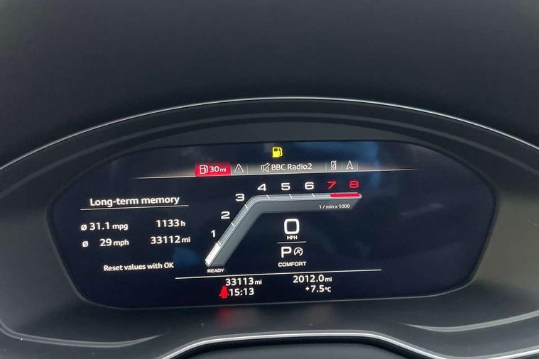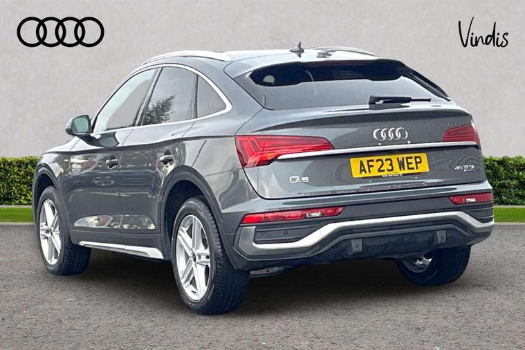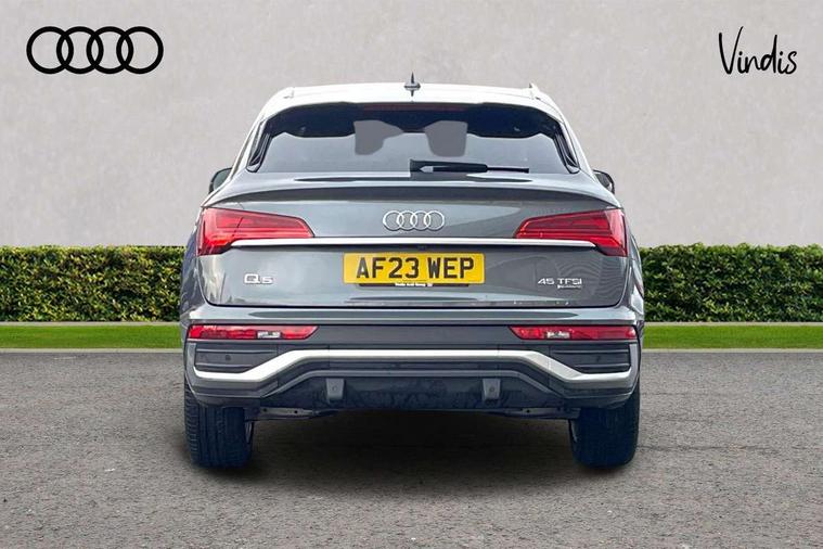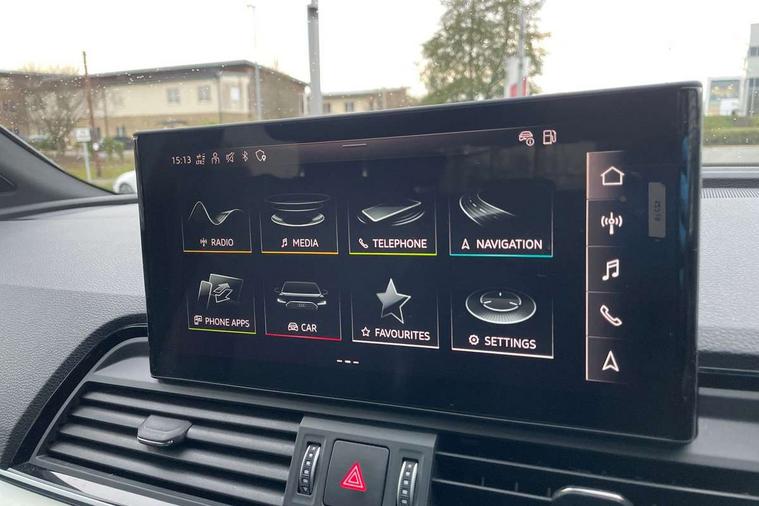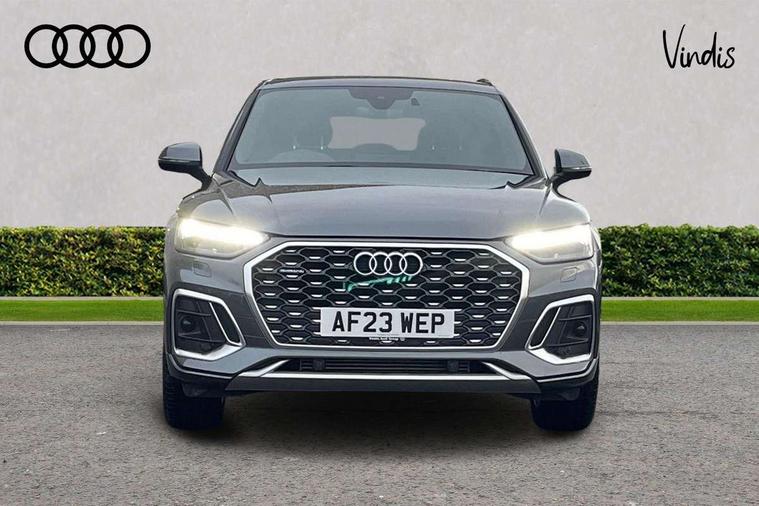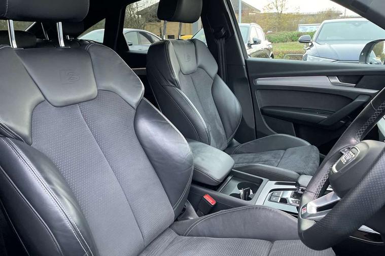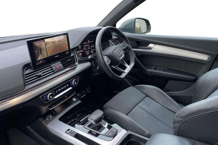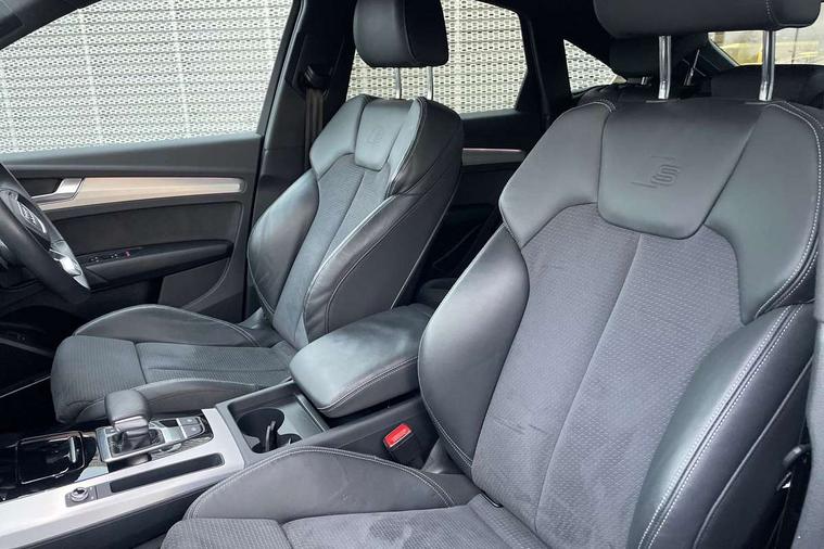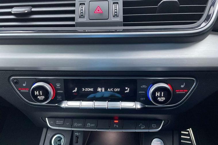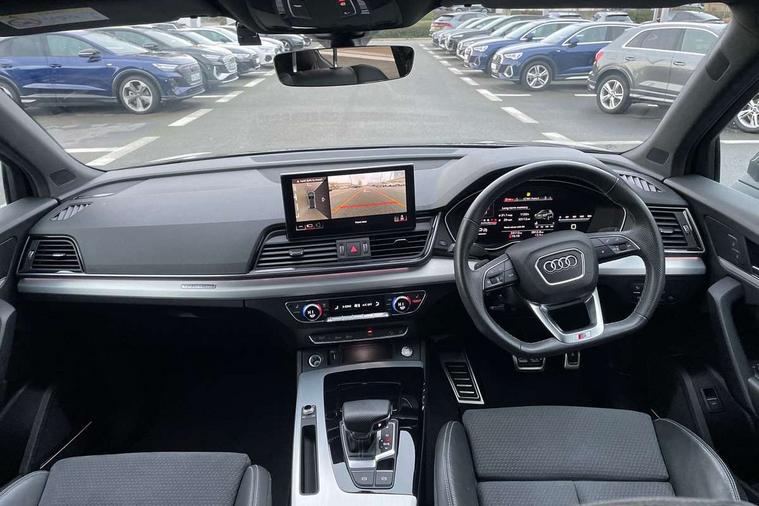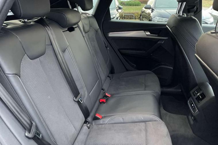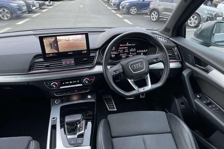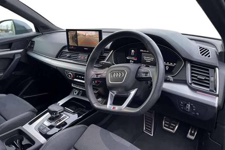 Acoustic front and rear parking sensor, Audi connect safety and service (e-call), Audi connect with Amazon Alexa Integration, Audi drive select, Audi virtual cockpit plus with 12.3" screen and three different layout designs, Audi wireless smartphone interface, Automatic start-stop system with coasting functionality and efficiency programme, Bluetooth interface, Electro - mechanical power assisted steering, MMI navigation plus with 10.1" touch screen, Power tailgate, Reversing camera, Service interval indicator, Voice control system with Audi hotword activation "Hey Audi", Quattro on demand, S line sports suspension, 2 x USB charging port with aux input socket, 8 loudspeakers, DAB Digital radio, Acoustic windscreen, Aluminium roof rails, Audi matrix LED headlights with dynamic front and rear indicators, Auto dimming door mirrors, Auto dimming frameless rear view mirror, Automatic headlight adjustment, Automatic headlights and windscreen wipers, Body colour door mirrors, Body colour rear diffuser with matt aluminium silver surrounds, Body colour underbody protection, Chrome plated exhaust trims, Daytime running lights, Door sills in Selenite silver, Electric adjustable/heated/folding door mirrors, Front air inlet surrounds in aluminium, Front and rear electric windows, Front radiator grille in honeycomb design, Headlight washers, High level LED brake light, Lower bumpers painted in contrast Manhattan grey, Rear chrome trim strip below lights, Rear privacy glass and rear side windows, Rear side wing doors, Rear wiper, Roof bars, S Line badges on the front wings, S Line front and rear bumpers, S Line rear spoiler, S Line side skirts, 3 rear headrests, 3 spoke leather multifunction steering wheel with S badging perforated leather grips, 40:20:40 split folding 3 rear bench seat in 2nd row with rear centre armrest, Black cloth headlining, Comfort front centre armrest, Contrast stitching on seats, steering wheel and gear lever gaiter, Deluxe 3 zone electronic climate control, Front head restraints, Front/rear floor mats, Gear lever in black leather, Heated front seats, Height/reach adjustable steering column, Illuminated door sill trims with S logo, Manual seat adjustment with 4-way electric lumbar support, Removable luggage compartment floor, Single front passenger seat, Stainless steel pedals, Sunvisors with vanity mirrors, Trunk roller cover, High gloss pack - Q5, LED interior light pack - Q5, 3 point seatbelts on all seats, 6 airbags - Driver, front passenger, curtain and side airbags, Electrically operated child locks on rear doors, Electromechanical parking brake, Electronic stabilisation control including ABS, ASR and EDL, First aid kit with warning triangle and vests, Front passenger airbag deactivation, Hill descent control, Hill hold assist, ISOFIX child seat mounting for front passenger seat and ISOFIX child seat mounting with Top Tether for outer rear seats, Multi collision brake assist, Pop-up bonnet for pedestrian protection, Pre sense city, Seat belt force limiter, Seatbelt monitoring, Tyre pressure warning, Anti theft alarm, Anti-theft wheel bolts, Keyless Go access/ignition system, Remote central locking, Air vents inserts and centre console in gloss black, Matt brushed aluminium inlays,