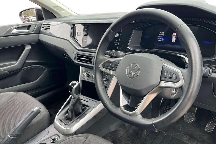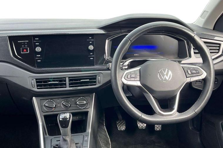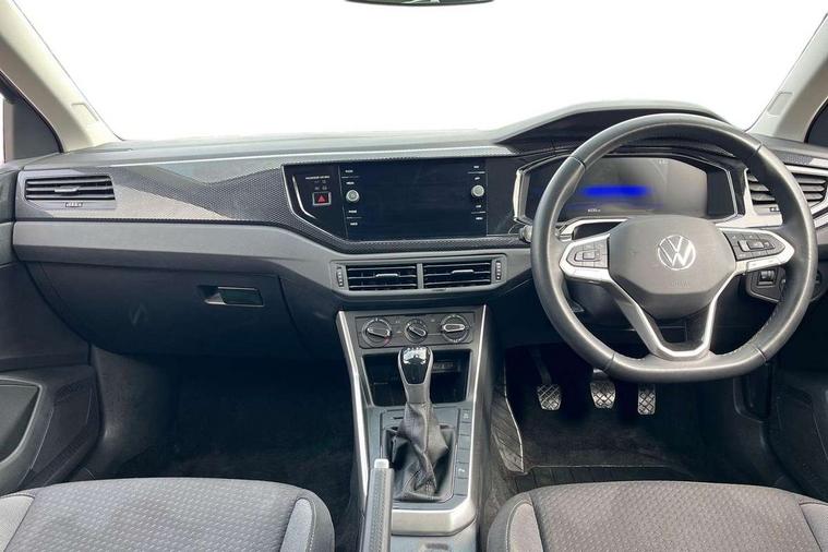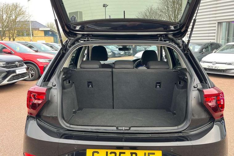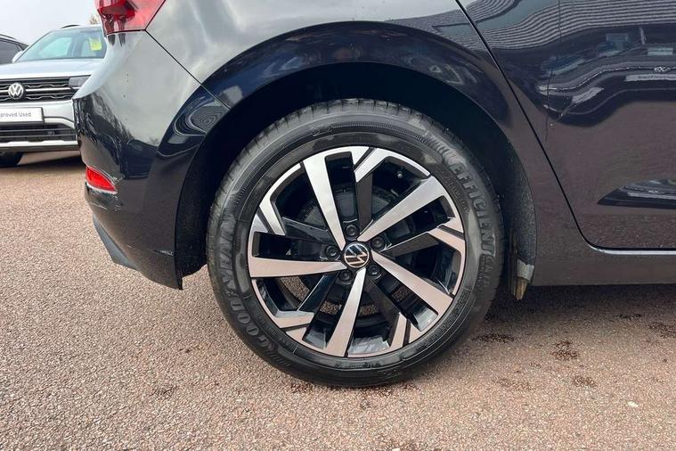 Adaptive cruise control without follow-to-stop and speed limiter, Advanced driver attention and drowsiness monitor, Bluetooth mobile phone interface, Dynamic road sign display, Emergency call service, Multifunction front facing camera for distance control, Park distance control, Power assisted speed sensitive steering, Preparation for navigation system with media and internet package, Preparation for We connect and We connect plus, Rear view camera, Speedo and rev counter, electronic odometer, trip, service interval display and exterior temperature gauge, Standard rear axle, Travel Assist - Lane keeping system and traffic jam assist, Travel assist including emergency assist, Trip computer, Warning signal and warning light for front and rear seatbelts not fastened, Washer fluid level indicator, Wireless app connect, Front wheel drive, Rear shock absorpion, Start-stop system with battery regeneration (recuperation - energy recovery during braking), DAB Digital radio, Diversity antenna for FM reception, Front and rear 6 speakers, Automatic dimming interior rear view mirror, Automatic headlight control with LED separate daytime running lights with coming/leaving home function, Body colour bumpers with chrome inserts, Body colour door handles, Body colour door mirrors, Electric front windows, Engine badge deletion, Headlight range adjustment, Heat insulating and laminated safety glass windshield, LED Headlights, LED rear combination lamps, Power folding adjustable/heated exterior mirrors and front passenger exterior mirror lowering function, Rain sensor, Rear electric windows, Rear fog light, Rear side wing doors, Rear tinted glass from B-pillar backwards approx 65% tinted, Rear windscreen washer and wiper with interval delay, Third brake light, 12V power socket in centre console, 2 front and 2 rear reading lights with switch off delay and dimmer, 2 USB-C ports in the front, 2 USB-C charging sockets on the center console in the rear, 3 rear head restraints, 60/40 split folding rear seat and rear seat bench not split, Ceramique roof lining, Chrome plated radiator grille inserts, air vent surrounds and light switch surrounds, Door and side trim panel, Driver and front passenger seat height adjustment, Driver/passenger sunvisors with illuminated vanity mirrors, Front centre armrest, Front seat backrest storage pockets, Front standard seats, Handbrake lever handle in leather, Hartley/Thomas cloth upholstery, Headliner in recycled material, Isofix child seat preparation easy-fit (for two outer rear seats, and front passenger seat) compatible with I-size, Leather trimmed gear knob, Luggage compartment cover, Luggage compartment lighting, Removable luggage compartment floor, Single front passenger seat, Standard climatic zones, Standard pedal cluster, Three spoke leather wrapped multifunction steering wheel, Light and vision pack - Polo, 3 point height adj front seatbelts + pretensioners, 3 point seat belt for centre rear seat, 3 point seatbelts, outer rear with ECE lable, ABS, Driver and front passenger airbag with front passenger airbag deactivation, Drivers and front passengers safety optimised head restraints, ESC (Electronic stability control) + EDL (Electronic Differntial lock) and ASR (Traction control), Extended and predictive pedestrian/ cyclist protection, Front assist with autonomous emergency braking (for Adaptive Cruise Control ACC up to 130 mph), Front curtain and side airbags with center airbag, Front disc brakes, Hill hold control, Manual child lock in rear doors, Rear drum brakes, Single tone horn, Tyre pressure loss indicator, Alarm with interior protection, Anti-theft alarm system with interior monitoring, backup horn, and towing protection, Anti-theft wheel bolts, Electronic engine immobiliser, Lava stone black gloss/matt decorative inserts in dash and front door panels, 16" Torsby alloy wheels, Low rolling resistance tyres,
