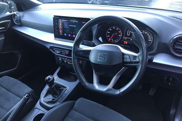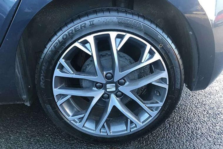 17" Dynamic machined alloy wheels in Nuclear grey, Electronic engine immobiliser, KESSY Keyless entry and go, Locking wheel bolts, Perimeter alarm and interior monitoring with backup horn and tow away protection, Remote central locking + deadlocks, Auxiliary input socket, Radio/MP3 player, SD card slot, Steering wheel mounted controls, 3 point seatbelts on all 3 rear seats, ABS, Active front headrests, Child locks on rear doors, Electronic stability control, Energy recovery system, Front assist forward collision warning and autonomous emergency braking, Front driver and passenger side airbags with curtain airbag and front passenger airbag deactivation, Hill hold control, Multi-Collision braking, Seat belt reminder for front and rear seats, Tiredness recognition system, Tyre pressure monitoring system, Anti theft roof antenna, Atom grey door mirrors, Auto dimming rear view mirror, Automatic rain sensing wipers, Body colour bumpers, Body colour door handles, Chrome window surround and upper grille surround, Dark tinted rear windows, Electric adjustable/heated/folding door mirrors, Electric front windows, Electric headlight adjustment, Electric rear windows, Front/rear fog lights, FULL LED automatic headlights with dynamic headlight range control, coming and leaving home, LED daytime running lights, LED tail lights, 60/40 split folding rear seat, Ambient interior lighting, Chrome detailing and black headlining, Comfort seats, Dual zone climate control with combination filter, Front centre armrest, Front courtesy lights, Front cupholders x 2, Front reading lights, Gear shift indicator, Glovebox, Height adjustable front and rear headrests (five), Height adjustable front seats, Height/reach adjust steering wheel, Illuminated air vent surrounds, Illuminated boot, Instrument lighting with brightness control, Isofix, Leather multifunction flat bottomed sports steering wheel, Microsuede cloth upholstery, Passenger sunvisor, Storage pockets on back of front seats, Sunvisors with mirror and driver side card holder, 'Lights On' Reminder warning buzzer, 9.2" touchscreen navigation system with type C USB socket, Voice control and DAB/AM/FM radio, Auto start and stop system, Bluetooth audio streaming with handsfree system, Digital clock, Full link smartphone integration with mirror link, wireless apple carplay, Google android auto + USB Type C cable for apple and android devices, Lane assist, Low fuel warning light, Outside temperature gauge, Power Steering, Rear parking sensor, Seat connect with safety, service, remote and online, SEAT logo boot release, Speed limiter, Trip computer, Comfort suspension,