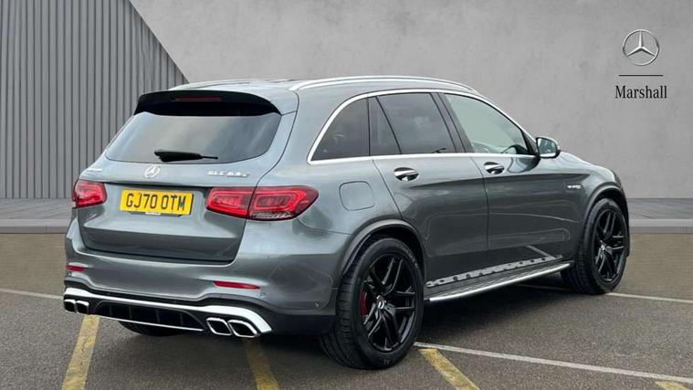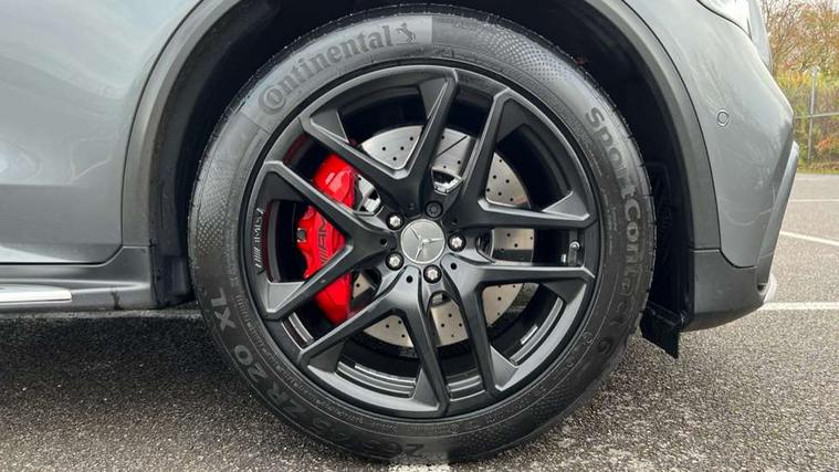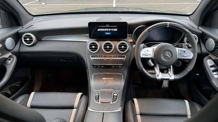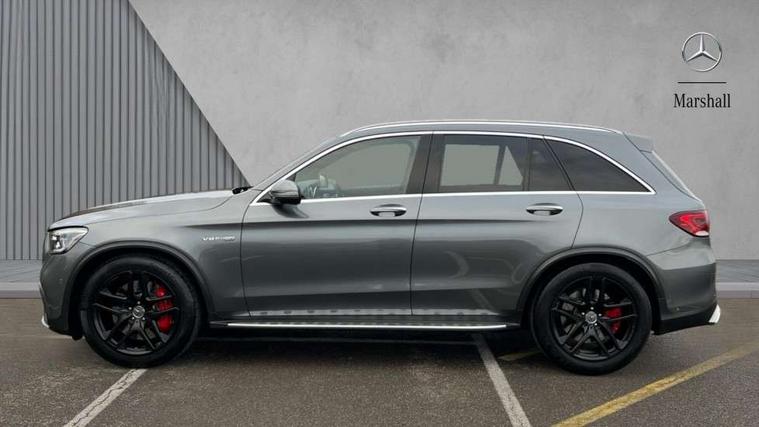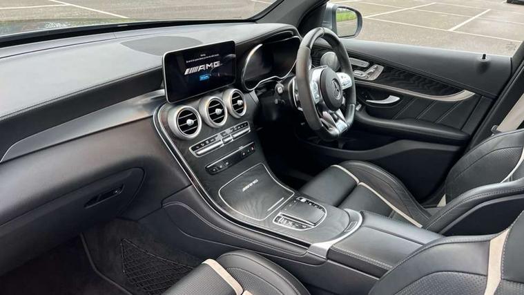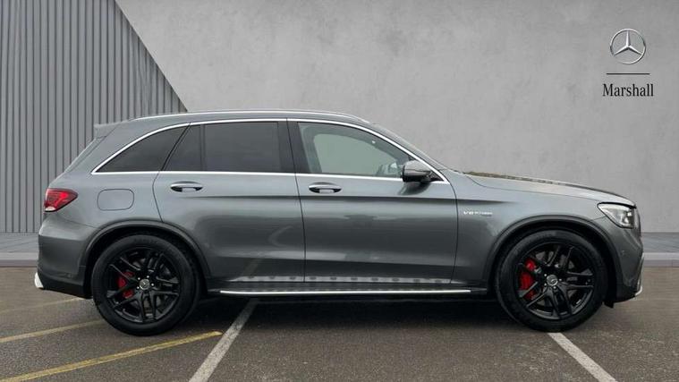 360 degree camera, Active parking assist with parktronic system, AMG track pace, Attention assist, Bluetooth interface for hands free telephone, Collision prevention assist plus, DYNAMIC SELECT with a choice of driving modes (ECO, Comfort, Sport, Sport+ and Individual), Easy pack automatic powered tailgate, ECO start/stop function, Hard disk navigation, Hey Mercedes Voice activation, Instrument cluster with12.3-inch digital instrument cluster display. High resolution instrument cluster screen with choice of three display styles, MBUX augmented reality for navigation, MBUX Interior assistant, Mercedes connect me with remote online services, Multi function trip computer, Outside temperature display, rear seatbelt status indicator, Remote boot release, Service indicator (ASSYST), Smartphone integration with Apple CarPlay and Android auto, Traffic sign assist, Wireless charging, 66 litre fuel tank, Air body control air suspension for front and rear axles with continuously adjustable damping, AMG electronic rear axle limited slip differential lock, AMG performance 4MATIC+, AMG SPEEDSHIFT MCT 9 speed automatic sports transmission steering wheel gearshift paddles and RACE START function, silver aluminium gear shift paddles, Petrol Particulate Filter (PPF), Burmester surround sound system, DAB Digital radio, MBUX multimedia system with DAB digital radio and touchpad including satellite navigation, Media display 10.25-inch touchscreen display, Pre installation for Mercedes Benz Link, USB ports x 2 in centre console, Adaptive brake lights, AMG bodystyling with 2 black louvres in outer air intakes, AMG bodystyling with rear apron and diffuser fins, AMG radiator grille with black vertical louvres and trim strip in high gloss chrome, Badging - V8 BITURBO 4MATIC+ lettering on front wings, Body coloured bumpers, Electric panoramic glass sunroof, Electric windows one touch open/close, Electrically adjustable and heated door mirrors, Front and rear exterior chrome trim, Headlamp assist automatic headlamp activation, LED tail lamp, Multi beam LED headlamps with 84 indiviually control LED, daytime running lamps, Active Light, cornering light, enhanced fog lamp, adaptive Highbeam Assist, Privacy glass with dark glass from B pillar backwards, Rain sensor windscreen wipers, Range adjustable headlights, Rear wiper, Running boards, Tinted glass all round with single layer safety glass, 2 way rear head restraints, 3-spoke multifunction AMG steering wheel in black nappa leather with flattened bottom section, chrome inserts and perforated leather in grip area, 40:20:40 split folding rear seats, Ambient lighting, AMG floor mats with edging and embroidered AMG lettering, AMG performance seats, Automatic child seat recognition sensor, Dividing net - rear, Double cup holder in centre console, Front armrest with storage box, Front door sills with Mercedes Benz lettering, Front head restraints, Heated front seats, Illuminated and lockable glove compartment, Nappa leather upholstery, Rear top tether child seat ISOFIX attachment, Sports pedals with stainless steel surfaces and rubber studs, Steering wheel with touch control buttons, THERMATIC automatic climate control, AMG Driver's package - GLC, Easy-pack load compartment cover, Interior lighting pack - GLC, Keyless Go comfort pack - GLC, Memory pack - GLC, Mirror pack - GLC, Storage pack - GLC, 3 rear 3 point seatbelts, Active bonnet, Adaptive brake system with HOLD function and brake drying in the wet, ASR, Brake calipers with Mercedes-Benz lettering + perforated brake discs, Child proof door locks, Dual-stage airbags - driver and front passenger, driver knee bag and window bags for driver, front passenger and rear passengers, Electronic parking brake, Electronic stability programme (ESP) with curve dynamic assist and cross wind assist, Front and rear seatbelt reminder, Front passenger seat occupancy sensor, Hill hold function, Seat belts in Crystal grey, Tyre pressure monitoring system, Warning triangle and first aid kit, Alarm system/interior protection/immobiliser, Automatic door locking, Remote central locking, Run flat tyres,