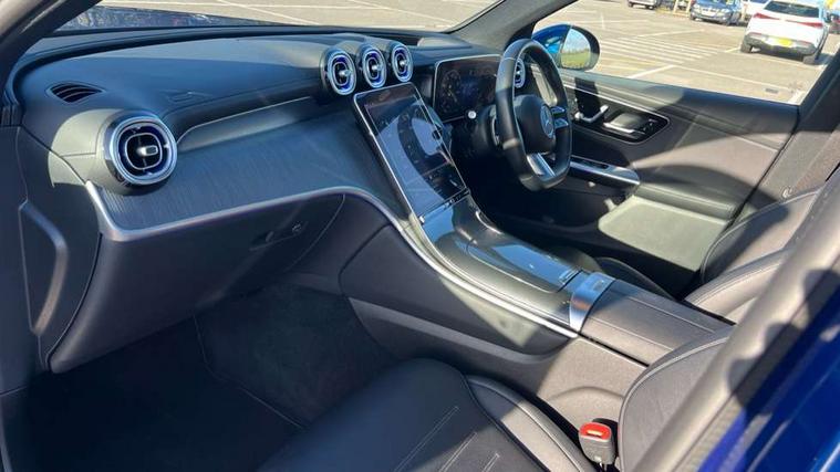 11.9" high resolution multimedia colour display, 12.3" Digital individually configurable instrument display, Acoustic presence indicator, Attention assist, Collision prevention assist plus, Direct steer speed sensitive steering, DYNAMIC SELECT with a choice of driving modes (ECO, Comfort, Sport, Sport+ and Individual), Easy pack automatic powered tailgate, eCall emergency call system, ECO start/stop function, Fingerprint scanner, Fluorescent jacket for driver, Hard disk navigation, Head up Display, Instrument display in miles with English lettering, MBUX navigation premium, MBUX voice control activated by keywords "Hey Mercedes", Mercedes me connect, Outside temperature display, Remote boot release, Remote services, Road sign recognition system, Service indicator (ASSYST), Smartphone integration, Status display for rear seat belts in instrument cluster, Wireless charging, 48V Mild hybrid technology, 4MATIC permanent four wheel drive, 62 litre fuel tank, 9G TRONIC plus automatic transmission, Petrol Particulate Filter (PPF), Residual engine heat utilisation, Sport suspension, Burmester 3D surrround sound system, DAB digital radio tuner, MBUX extended functions, Sound personalisation, USB ports x 2 USB C ports in centre console, Adaptive high beam assist plus, Aluminium look running boards with rubber studs, Aluminium roof rails, AMG bodystyling front apron, rear apron and side skirts, AMG Line exterior, Auto headlights, Body colour bumpers, Digital light LED headlights with projection function, Electric panoramic glass sunroof, Electrically adjustable door mirrors, Front and rear electric windows, Headlight washers, Heat and noise insulating acoustic glass, Heat insulating dark tinted glass, Heated door mirrors, Heated rear window, Integrated LED daytime running lights, LED indicator lights, LED rear fog lights, LED tail lamp, LED third brake light, Radiator grille with Mercedes Benz pattern and integreated Mercedes star and louvre in dark grey matt with chrome inlay and black frame, Rain sensor windscreen wipers, Rear side wing doors, Rear wiper, Transparent Bonnet, Two chrome plated tailpipe trim elements, Welcome and follow-me home light functionality, Wider wheel arch for AMG wheels, 3 seat bench in 2nd row, 40:20:40 split folding rear seats, Ambient light in 64 colour with dynamic multicolour LED interior lightings, AMG line interior, AMG sports seats, Automatic child seat recognition sensor, Black fabric roof lining, Black floor mats with AMG lettering, Double cup holder in centre console, Easy-pack removable load compartment cover, Electrically height/reach adjustable steering column, Front centre armrest with stowage compartment, Front head restraints, Galvanised steering wheel gearshift paddles, Heated front seats, Illuminated door sill panels with Mercedes Benz lettering, Illuminated glove compartment, Instrument panel and beltlines in Artico man made leather in nappa look, Multi function steering wheel with audio and onboard settings control, Multifunction sports steering wheel in nappa leather, Rear centre headrest, Rear head restraints, Rear top tether child seat ISOFIX attachment, Single front passenger seat, Sports pedals with stainless steel surfaces and rubber studs, Steering wheel with audio and onboard settings control, Sun visors, THERMOTRONIC 4 zone automatic climate control, Anti theft protection package - GLC, Boot comfort package - GLC, Exterior chrome package - GLC, Interior chrome package - GLC, Interior lighting pack - GLC, Memory pack - GLC, Mirror pack - GLC, Parking package with 360 degree camera - GLC, Seat comfort package - GLC, Stowage space package - GLC, USB Package - GLC, 3 rear 3 point seatbelts, Anti-lock braking system (ABS), ASR traction control, Automatic front passenger airbag deactivation, Black seat belts, Brake calipers with Mercedes-Benz lettering + perforated brake discs, Braking system with larger brake discs on the front axle, Child proof door locks, Dual-stage airbags - driver and front passenger, driver knee bag and window bags for driver, front passenger and rear passengers, Electronic parking brake, Electronic stability programme (ESP) with curve dynamic assist and cross wind assist, Front and rear seatbelt reminder, Front seatbelt pretensioners, Hill start assist, Tyre pressure monitoring system, 360 degree guard vehicle protection plus, Anti theft alarm system with preinstallation for collision detection, Dashcam, Immobiliser, Keyless Go entry and starting function, Anthracite lime wood trim, Centre console in metal structure finish, 20" AMG multi spoke light alloy wheels in painted black with high sheen finish, Summer tyres, TIREFIT with tyre inflation compressor,