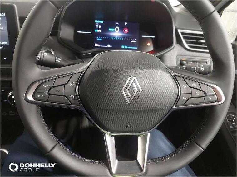 7" digital driver display, Apple car play/Android Auto, Cruise control + speed limiter, Driver attention warning, Easy link 7" touchscreen with built in navigation + Wifi smartphone integration plus, Eco mode driving function, Emergency call system, Front park assist, Front parking sensors, Lane departure warning system, Lane keep assist, Multisense 3 driving modes including ambient lighting, Over speed prevention, PAS, Rear park assist, Rear parking sensors, Rear view camera, Saftey shield [button for personalisation configuration of key ADAS features], Start/stop system, Traffic sign recognition, Wireless phone charger, 2 USB ports, Arkamys speakers - x6 inc. 2 boomer, 2 tweeter and 2 bicone, Bluetooth, 1x jack, 1x aux socket, DAB/FM Radio, Automatic headlights, Automatic windscreen wipers, Black auto folding wing mirrors with defrosting and temperature gauge and LED indicator, Body colour bumpers, Body colour door handles, Body colour F1 blade, Chrome insert on lower side doors, Chrome side window surrounds, Chrome upper grille, Electric rear windows, Electrically adjustable door mirrors, Electrochromatic rear view mirror with light and rain sensor - Black, Exhaust pipe, Exterior rear hidden door handles, Front and rear LED roof light x 2, Front fog lights, Full LED front and rear headlamps integrating daytime running lights at the front and rear, Heated rear windscreen, LED rear signature lighting, LED third brake light, One touch electric front windows, Rear brake light, Rear side wing doors, Rear wiper, Shark fin antenna, Tinted rear windows, 3 rear height adjustable headrests, 3 seat bench in 2nd row, 60/40 split and fixed base rear seat bench, Automatic air conditioning, Black armrests in door panel, Centre console armrest, Fabric upholstery, Floating console with storage, Height adjustable front headrests, Isofix system on outer rear seats, Mechanical height adjustable front seats, Power supply jack, Single front passenger seat, Sun visor without light, Synthetic leather steering wheel, 3 point seatbelts on all rear seats, ABS, Active emergency braking system - Urban and pedestrian/cyclist, Automatic emergency braking system with emergency brake assist, Child locks on rear doors, Curtain airbags, Distance warning alert, Driver and passenger airbags, Electronic brake force distribution, Electronic parking brake with auto hold, ESC (Electronic Stability Control), Front passenger airbag deactivation, Front side airbags, Height adjustable passenger seatbelt, Hill start assist, Seatbelt reminder, Tyre pressure monitor, 2x Black keys, Hands free key card with push button, start and stop function, RAID (Renault Anti-Intruder Device) automatic door locking, Superlocking, Dark interior roof trim, 17" Monastella Diamond Cut Alloy with grey/black Inserts,