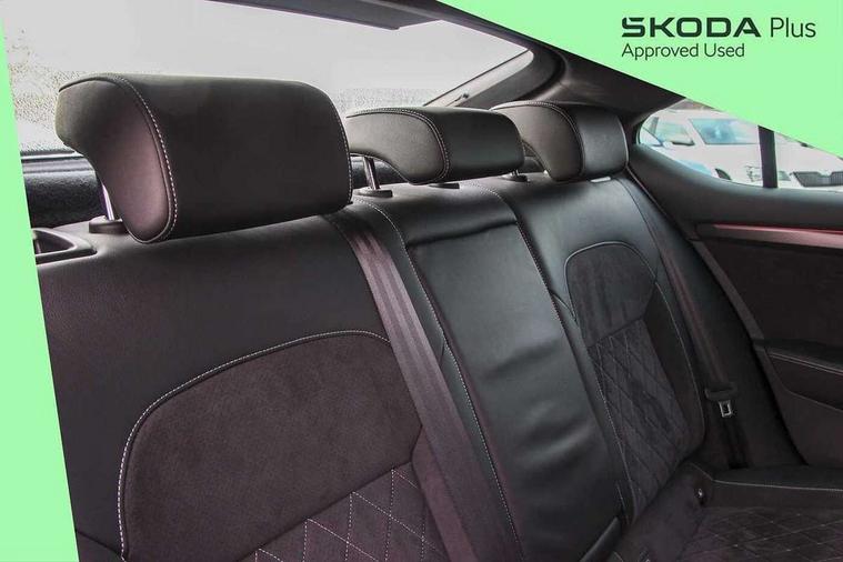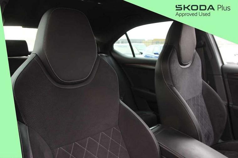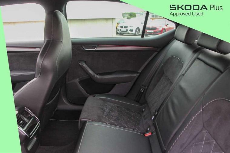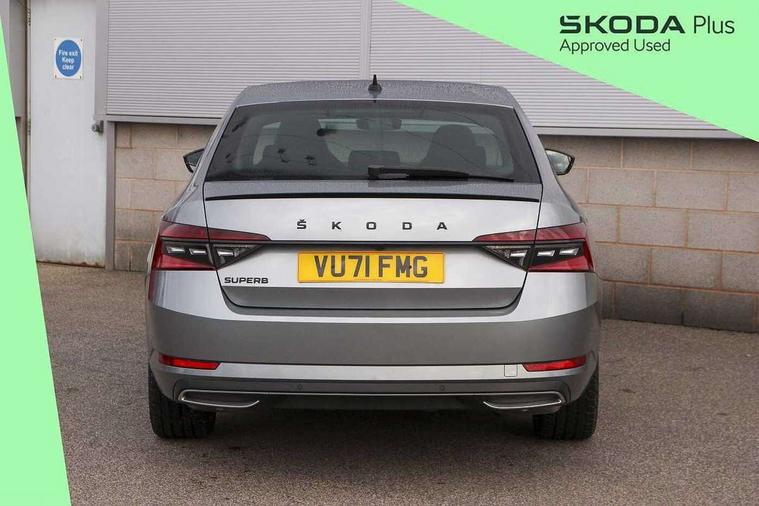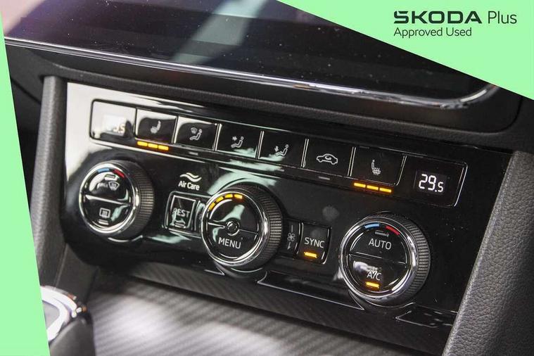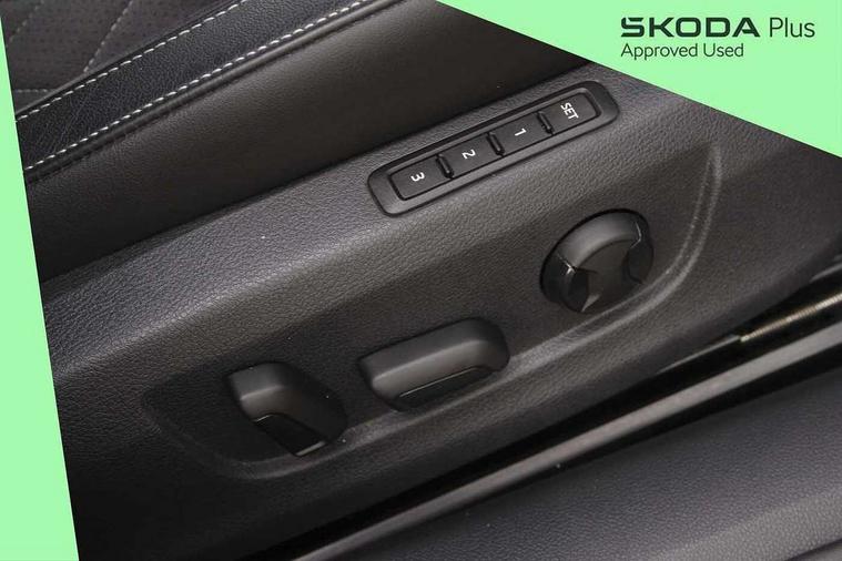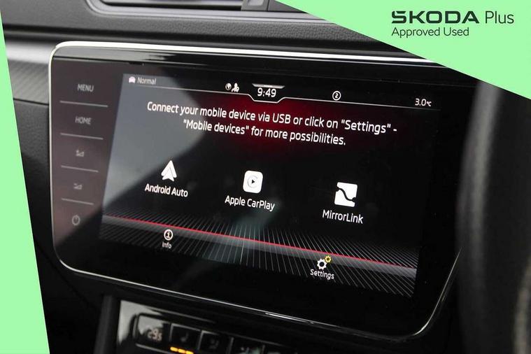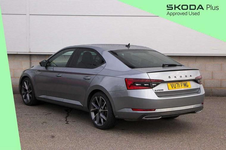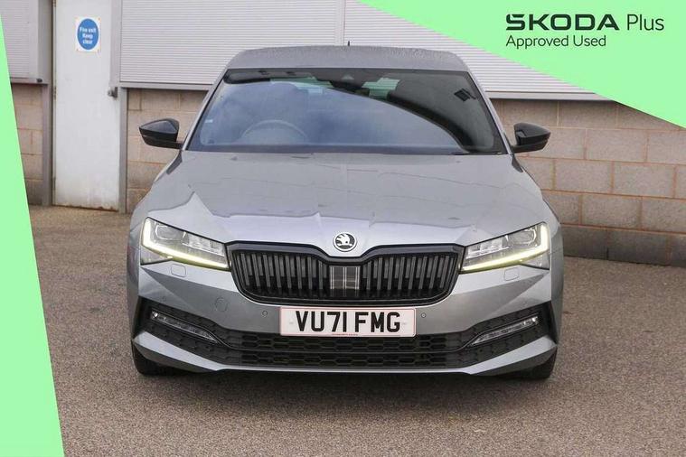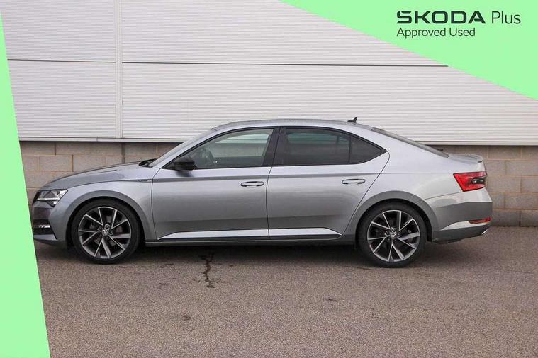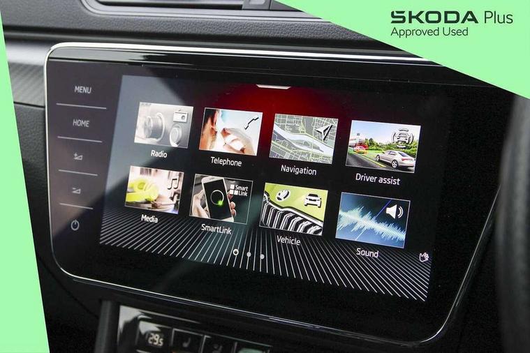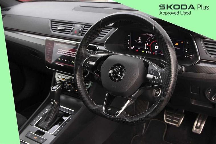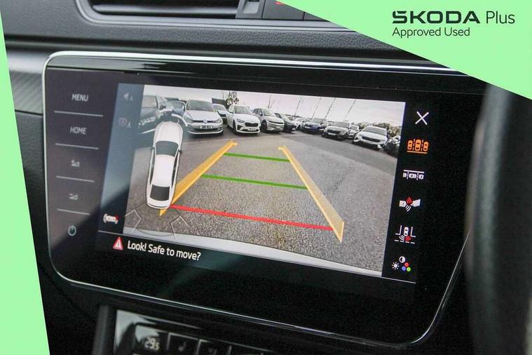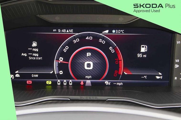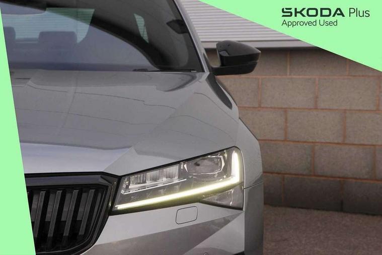 Bluetooth system, CareConnect and Emergency Call, Columbus HDD satellite 3D map navigation with 9.2" colour touch screen, web radio, integrated Wi-Fi, Driver fatigue sensor, Front assist with pedestrian protection, Progressive dynamic steering, Stop/start engine system and energy recovery, Virtual cockpit, Voice control system, Wireless smartlink apple carplay, SmartLink+ android auto and mirror link connectivity, XDS+, 2 USB ports, Bolero radio with 8" touchscreen display, DAB Digital radio, Aero front windscreen wipers with intermittent function, Auto dimming rear view mirror, Black rear badge, Body colour door handles, Cornering front fog lights, Electrically adjustable heated and folding door mirrors with memory function, Front and rear electric windows, Full matrix LED headlights with AFS LED DRL integrated with headlight washer LED rear lights(High function), dynamic indicators and lighting animation, Gloss black exterior door mirrors with sports styling including front grill, side strip and window surrounds, Gloss black grille surround with gloss black rib elements, Gloss black rear spoiler (roof), Gloss black strip between rear lights, Light assistant (coming/leaving home/tunnel light), Privacy glass, Rain sensor, Rear exhaust diffuser styling elements, Sportline badging, 12v power point in centre console, 3 spoke leather multifunction sports steering wheel with silver stitching and DSG paddles, Alcantara/leather upholstery with silver diamond stitching sports seats, Black roof headlining, Black textile floor mats, Carbon optic interior elements, Electric auxiliary air heater, Front armrest with storage box, Height adjustable front and rear head restraints, Ice scraper, Illuminated and cooled glovebox, Interior lights with control switches, Isofix child seat fittings on outer rear seats, One umbrella compartments in driver door with one umbrella in drivers door, Overhead glasses storage compartment, Rear centre armrest with cupholders, Removable parcel shelf, Split folding rear seats, Sun visors with illuminated vanity mirrors, Ticket holder on A Pillar, LED package plus - Superb, 3 rear seatbelts, 7 airbags - Front, front side, curtain, driver's knee airbag with front passenger deactivation switch, Driver and passenger seatbelts with warning light, Electronic parking brake, ESC including ABS, EBV, MSR, ASR, EDS, HBA, DSR, RBS, CBC, multi-collision brake (MKB) and Auto hold, Hill start assist, Tyre pressure monitor, Alarm with interior monitoring tilt sensor and back up horn, Electronic engine immobiliser, Keyless entry and start/stop, Remote central locking with SAFE system, Third remote key,