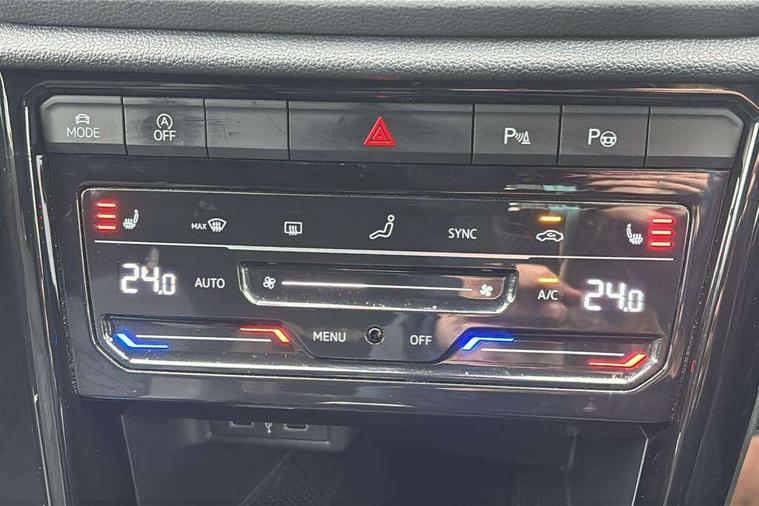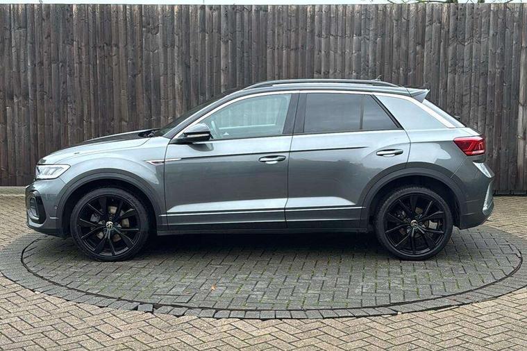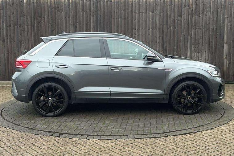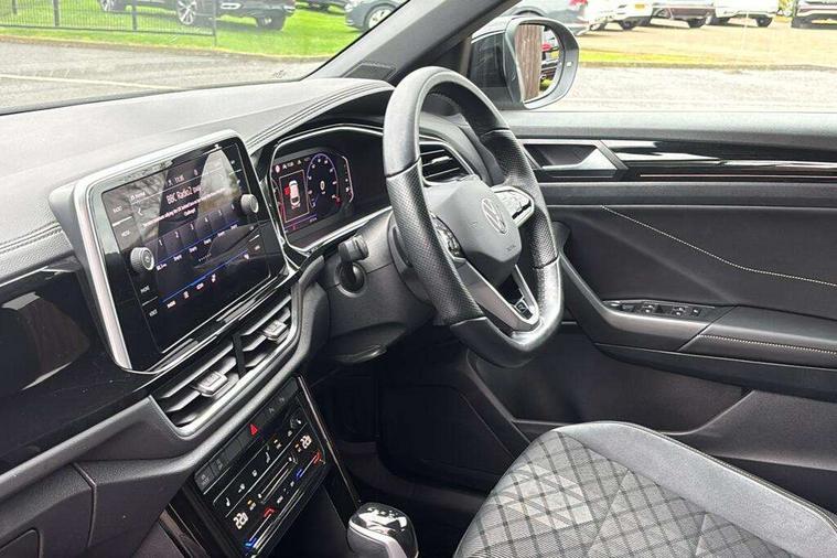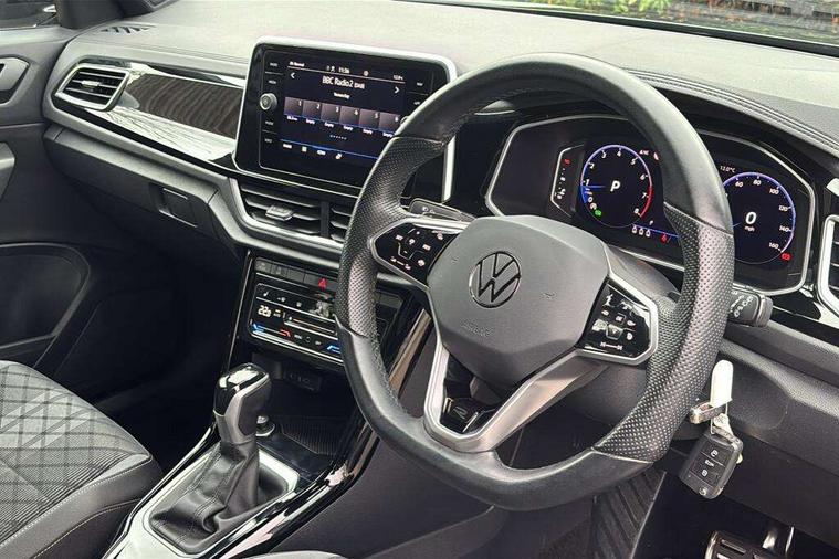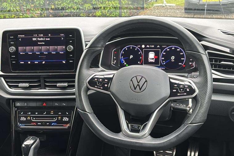 10.25" Digital cockpit pro, Bluetooth mobile phone interface, Driver alert system with fatigue detection, Driver tips and journey analysis, Emergency call service, Lane keeping system Lane Assist, Modified key software - reduce switch off time for key status change to Long no motion, Online services, Park assist including front and rear parking sensors, Service interval indicator, Tailgate/trunk lid release from outside, Think blue trainer driver tips and journey analysis, Warning sound and light for front seatbelts unfastened, Wireless app connect, Battery regeneration during braking, Start/stop function with battery regeneration, Diversity antenna for FM reception, Front and rear 6 speakers, Music playback - MP3, WMA and AAC files, Premium USB cable in choice of either Apple or Android smartphone compatibility, SD card slot, Simultaneous pairing of 2 compatible mobile devices, Title and cover art display, We Connect and We Connect Plus functionality, 3rd brake light, Auto dimming interior rear view mirror, Automatic hazard lights activation under emergency braking, Automatic headlight control with LED separate daytime running lights with coming/leaving home function, Extended roof spoiler, Exterior mirrors aspherical on driver side, convex on front passenger side, External USB type C socket and charging sockets, Front windscreen wiper with intermittent wipe and 4 position delay, Heated rear window, LED Plus headlamps, LED rear combination lamps, LED rear number plate lights, LED tail lamp rear comination lamps, Power windows with comfort operation and circuit breaker, R-Line design body coloured bumpers, Rain sensor, Rear exhaust tailpipe, Rear fog light on one side and reversing lights on both sides, Rear side wing doors, Rear wash/wipe with intermittent wipe setting, Remote electrically foldable door mirrors, puddle lights and reverse activated passenger's door mirror, 12V power socket in centre console, 3 rear head restraints, 3 seat bench in 2nd row, 4 load lashing points in luggage compartment, Air care climatronic air conditoning system with active combination filter and 2-zone temperature control, Black roof lining, Chrome plated radiator grille inserts, air vent surrounds and light switch surrounds, Door and side trim panel with leatherette insert, Drawer under drivers seat, Front + rear carpet mats, Front centre armrest, Front cupholders x 2, Front footwell illumination, Front reading light, Front scuff plates with R logo, Instrument lighting, white adjustable panel illumination, Interior ambient lighting and surround lighting, Interior light delay, Isofix child seat preparation, Leather gearshift handle, Load-through provision with cup holder when folded down ('Unsplit rear seat bench, split folding backrest, with centre armrest), Luggage compartment lighting, Single front passenger seat, Stainless steel pedals, Storage compartment in left and right luggage area, Storage compartment in rear doors, Storage compartments in driver and front passenger doors, Sunvisors with illuminated vanity mirrors, Variable boot floor, height adjustable and removable, Driver assistance pack without proactive passenger protection - T-Roc, 3 point height adj front seatbelts + pretensioners, 3 point seatbelts in outer rear with ECE label, ABS, Child locks on rear doors, Driver and front passenger airbag with front passenger airbag deactivation, Driver and front passenger safety-optimised head restraints, Drivers seatbelt reminder, Electronic parking brake, Electronic Stability Control (ESC) inc EDL (Electronic Differential Lock) and ASR (Traction Control), Front and rear passengers curtain airbag system including front side airbags, Front assist with city emergency braking and pedestrian monitoring, Front seat side impact airbags, Hill start assist, Predictive pedestrian protection, Rear disc brakes, Single tone horn, Tyre pressure loss indicator, Volkswagen roadside assistance, Alarm with interior protection, Anti-theft alarm system with interior monitoring, backup horn, and towing protection, Remote central locking with SAFELOCK, radio remote control with 2 remote control folding keys, Trims for alloy wheels,