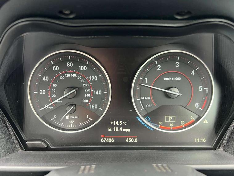 BMW Online services, BMW Teleservices, Brake pad wear indicator warning light, Check control system, Door/boot open warning, Lights on warning, Oil temperature gauge, On board computer, Outside temperature display, Personal Profile, Service interval indicator, Speed limiter, Stop/start button, Diesel particulate filter, Drive Performance Control, Sports function on gearbox with steering wheel mounted gearshift paddles, Auxiliary point for auxiliary devices, BMW professional radio/CD/MP3, DAB Digital radio, 2 speed adjustable intermittent wipers with wash/wipe function, Body colour bumpers, Body colour door handles, Body colour door mirrors, Body colour roof mouldings, Chrome kidney grille with black vertical slats, Door mirror integrated indicators, Dual dark chrome exhaust tailpipes, Electric adjustable heated door mirrors, Electric front and rear windows with fingertip open/close + anti-trap all round, Exclusive door sill finishers, Follow me home headlights, Front fog lights, Heat insulating tinted glass, Heated windscreen washer jets, M aerodynamic body styling, Rain sensor including auto headlights activation, Welcome lighting, 12V sockets in front centre console and passenger footwell, 4 grab handles, Anthracite Velour floor mats, Folding storage compartment with glasses holder + coin tray, Front cupholders x 2, Front door storage bins, Front head restraints, Front sliding armrest, Front sports seats with electric side bolster adjustment, Front/rear armrests within door panels, Glovebox with lid, ISOFIX child seat preparation+airbag deactivation, Lashing eyelets in boot, Leather gearknob, M Sport multifunction leather steering wheel, Reach + rake adjustable steering column, Rear centre armrest, Storage compartment in rear centre console, ABS/EBD, Automatic Stability Control (ASC), BMW emergency call, Cornering brake control (CBC), Crash Sensor - activates hazard/interior lighting + unlocks doors, Driver seatbelt warning indicator, Driver/Front Passenger airbags, DSC+, Dynamic brake control, Dynamic Traction Control - DTC, Front seatbelt force limiters, Front seatbelt pretensioner, Front side airbags, Hill start assist, Tyre pressure monitoring system, Warning triangle and first aid kit, Drive away door locking, Electronic immobiliser, Remote central locking, Remote control Thatcham category 1 alarm, Run flat tyres,