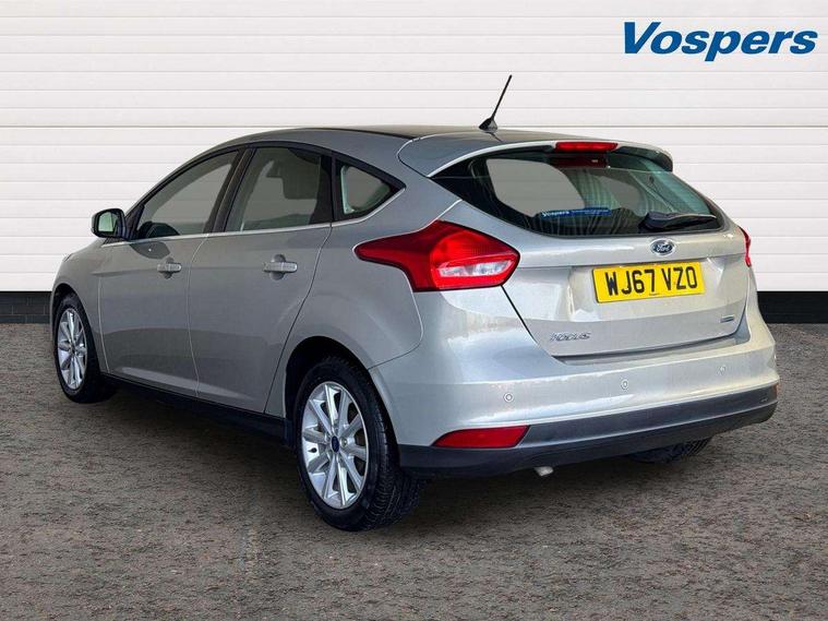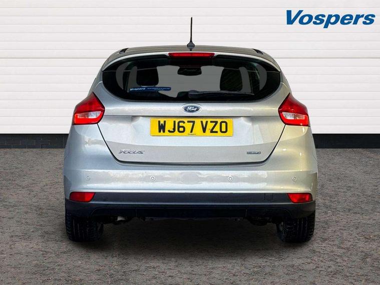 Cruise control + speed limiter, Digital clock, Easy fuel capless refuelling system, Eco mode, Electric boot release, PAS, Rear parking sensor, TFT cluster screen, Trip computer, 6 speakers, Aux input, Steering column with mounted audio controls, SYNC 2 DAB radio/CD, 8" colour touch screen, emergency assistance, Bluetooth connection, advanced voice control, USB connection, 'Quickclear' heated windscreen/heated washer jets, Auto dimming rear view mirror, Automatic headlights, Automatic rain sensing wipers, Body colour bumpers, Body colour door handles, Body colour door mirrors, Body colour rear spoiler, Chrome finish on upper door line, Chrome radiator grille and surround, Electric adjustable heated door mirrors, Front fog lights, Front variable intermittent wipers with electric wash, Heated rear window, LED daytime running lights, Tailgate wash/wipe, 3 spoke leather steering wheel, 60/40 split back and cushion rear seats with 2 height adjustable headrests, Centre console storage box/armrest, Driver's seat with adjustable lumbar support, Dual electronic automatic temperature control air conditioning - CFC-free, Height adjustable front headrests, Isofix child seat preparation, Passenger seat height/lumbar adjustment, Reach + rake adjustable steering column, Sports style front seats, ABS+Electronic Brake force Distribution, Active city stop, Driver airbag, ESP with traction control + emergency brake assist, Front inertia reel height adjustable seatbelts with pre-tensioners, Front passenger airbag, Front side airbags, Hill start assist, Side curtain airbags, Three rear inertia reel lap/diagonal seatbelts, Torque vectoring brake, Tyre pressure monitoring system, Immobiliser-Passive Anti-Theft System (PATS), Key free system, MyKey system, Remote central double locking, Thatcham Cat.1 alarm,