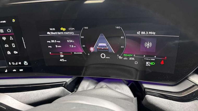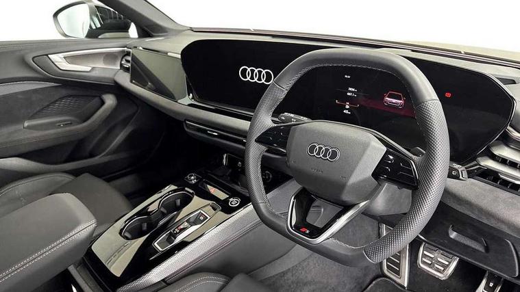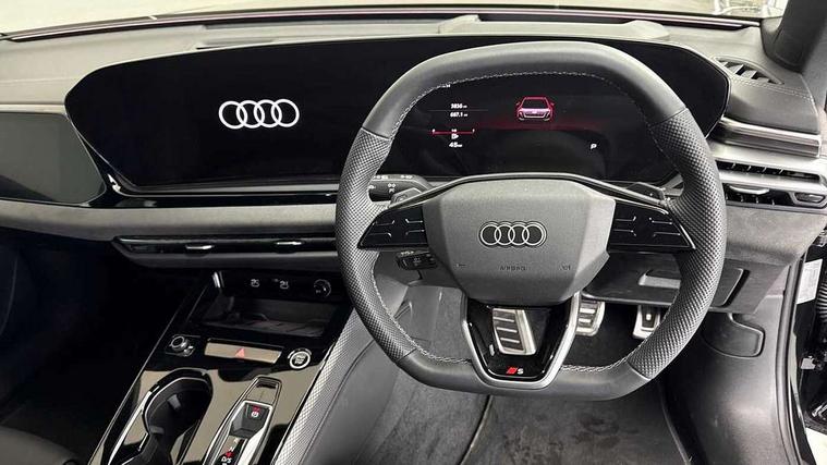 Adaptive cruise control, Advanced driver attention and fatigue montior, Audi application store, Audi assistant, Audi connect emergency call and service, Audi drive select, Audi virtual cockpit plus with 11.9" OLED colour display, Automatic start/stop system with coasting functionality, Camera based traffic sign recognition, Intersection assist, Lane change assistant with exit warning system, rear cross traffic alert and rear turn assist, Lane departure warning with emergency assist, MMI 10.9" front passenger touch display, MMI navigation plus with high resolution 14.5" OLED touchscreen colour display, Park assist plus, Parking system plus with 360 display, Progressive steering with servotronic, Smartphone interface, Swerve assist and turn assist, Top view camera, Traffic sign based speed limiter, Sports suspension lowered by 20mm, 2 USB-C ports in both the front and rear, Audi sound system impressive sound with 8 loudspeakers including centre speaker and subwoofer, 6-channel amplifier with a total output of 180 watts, DAB digital radio reception, Smartphone compartment with wireless charging, Aluminium window trims, Auto dimming rear view mirror, Black door handles, Black roof rails, Dark chrome-plated tailpipe trims, Door mirrors - electrically adjustable, heated, folding and auto dimming on both sides, Front and rear electric windows, Front door sill trims with aluminium inlays, illuminated with 'S' logo, Headlight cleaning system, High beam assist, LED daytime running lights, LED rear lights pro incl. dynamic rear indicators and illuminated light strip with animated coming and leaving home function, LED third brake light, Matrix LED headlights with eight light signatures selectable via the MMI or the myAudi app, Privacy glass, Rear and side windows with heat insulating glass, Rear side wing doors, Rear wash/wipe, S Line badges on the front wings, S line bumpers, radiator grille and diffuser in phantom black and diffuser insert in matt anthracite, White rhombus logo projection light in exterior mirrors, Windscreen with acoustic glazing, 3 rear headrests, 3 seat rear bench, 3 spoke leather steering wheel with multi-function buttons with touch control, flattened on top and bottom, with S badging and contrast stitching, 3-zone automatic climate control, 40:20:40 split folding rear seat bench with centre armrest and cup holders, Comfort front centre armrest, Electrically adjustable front seats, Front and rear floor mats, Front sport seats with integrated headrest and S embossed logo, Headlining in black cloth, Heated front seats, i-Size child seat mounting on the front passenger side and outer rear seats, i-Size and top tether on the outer rear seats, Luggage compartment lid, electrically opening and closing, Manual steering column height and depth adjustment, Memory function for driver seat, Single front passenger seat, Stainless steel pedals and footrest, Steering wheel grips in perforated leather and shift paddles, Ambient lighting package plus - A5, Black styling package plus - A5, 3x3 point rear seat belts, Acoustic vehicle alerting system, Convenience key with safelock, Driver airbag, Electric child safety locks, First aid kit with warning triangle and vests, Front emergency brake assist, Front passenger airbag, Front passenger airbag deactivation, Hill hold assist, Occupant detection in rear seat area, Proactive passenger protection system for front, sides and rear, Red brake calipers, Seat belt monitoring with rear seat occupant reminder, Side airbags in front and rear with head airbag system and front interaction airbag, Tyre pressure loss indicator, Anti theft alarm, Anti-theft wheel bolts, Keyless Go, Accent surfaces and control buttons in gloss black, Black dashboard with contrast stitching, Softwrap in Dinamica with contrast stitching, Upper and lower interior elements in dinamica microfiber, 20" 5 arm fold design Audi sport alloy wheels in silk matt grey and gloss turned finish, Tyre repair kit,
