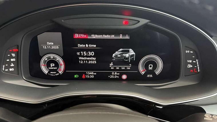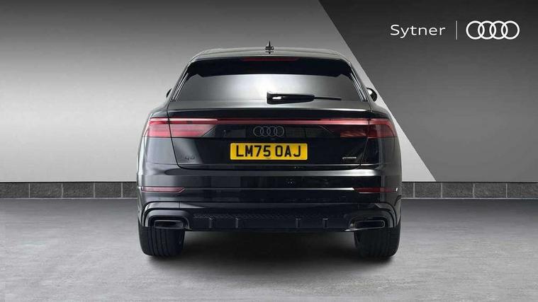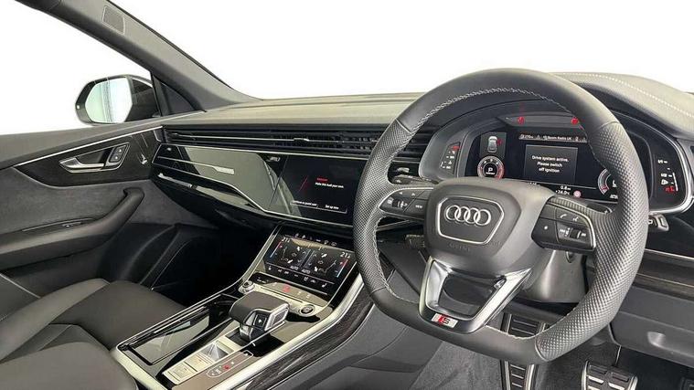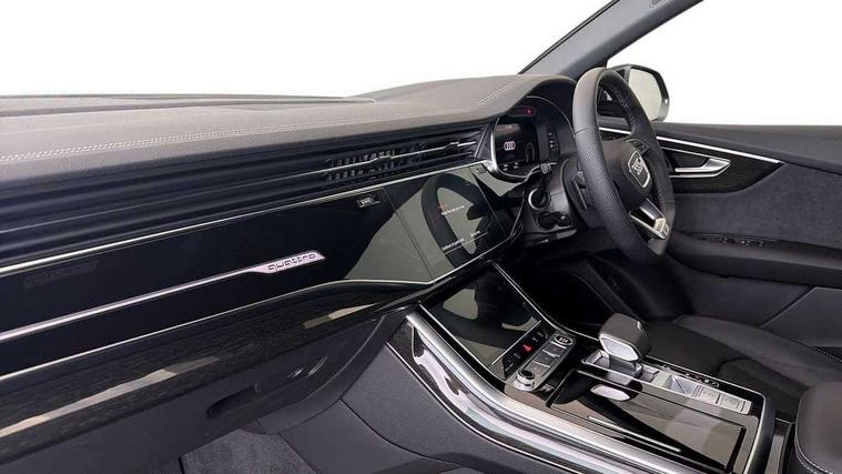 10.1" and 8.6" Dual colour touchscreens, Audi application store, Audi connect safety and service (e-call), Audi connect with Amazon Alexa Integration, Audi drive select, Audi parking system plus includes 360 degree display with front and rear sensors, Audi phone box light with wireless charging, Audi virtual cockpit - 12.3" high resolution LCD display with fully customisable instrument cluster, Automatic start/stop system, Bluetooth, Electro-mechanical PAS, Low washer fluid indicator, MMI navigation plus with MMI touch, Natural voice recognition, On board computer, Operating buttons in black, glass look with haptic feedback, Power operated tailgate, Rear view camera, Service interval indicator, Smartphone interface includes wireless Apple carplay/Android Auto, 48V Mild hybrid technology, Adaptive sport air suspension, Diesel particulate filter, Quattro all wheel drive with self locking centre differential, Audi music interface with 2 USB ports with charge and data functions, Audi sound system with 6 channel amplifier, 180 watt amplifying capacity and 10 loudspeakers including subwoofer, Aux-in socket, DAB Digital radio, 3rd brake light, Audi beam, Auto dimming frameless rear view mirror, Black exhaust tailpipes, Black single frame mask, Coming/leaving home lighting function, Electric front+rear windows, Electrically folding auto dimming/adjustable/heated door mirrors with memory function, LED side indicators and kerb view function for passenger side, Headlight washers, Heat insulating glass in windshield, LED rear light plus, LED signature daytime running lights, Loading edge protection in stainless steel, Matrix LED headlights with dynamic front and rear indicators, Platinum grey front spoiler lip and diffuser insert with honeycomb grille in black, Privacy glass - dark tinted rear and rear side windows from B-pillar backwards, Rain and light sensors, Rear side wing doors, Rear wiper, Singleframe grille surround in matte platinum grey, 2 zone automatic climate control, 3 bench rear seats in 2nd row, 4-way lumbar support for front seats, 40:20:40 split folding rear bench seat, Black cloth headlining, Comfort front centre armrest, Driver seat memory function, Electrically adjustable front seats, Front head restraints, Front/rear floor mats, Heated front seats, ISOFIX child seat mounting for front passenger seat and 2 outer rear seats with top tether child seat mounting for all 3 rear seats, LED interior ambient lighting, Luggage compartment sill protection in stainless steel, Rear centre armrest with 2 cupholders, Rear headrests, Seat cushion displaceable by 100mm in the ratio 60:40, Single front passenger seat, Stainless steel pedals, Sunvisors with illuminated vanity mirrors, Black styling pack plus - Q8, 3 point seatbelts on all seats, Audi pre sense front, Convenience key with safelock, Driver and front passenger, front side and curtain airbags, Electromechanical parking brake, Electronic Stability Control (ESC) including ABS, ASR and EDL, Front passenger airbag deactivation, Hill descent control, Hill hold assist, Predictive pedestrian protection, Seatbelt monitoring, Traction control, Tyre pressure loss indicator, Warning triangle and first aid kit, Anti theft alarm with tow away protection, Anti-theft wheel bolts and wheel loosening detection, Electronically operated child lock, Immobiliser, Keyless go with remote central locking, Polished oak trim with grey finish inlay, Tool kit, Tyre repair kit,
