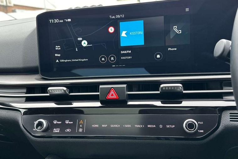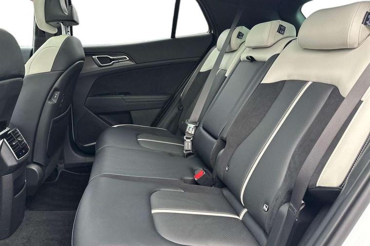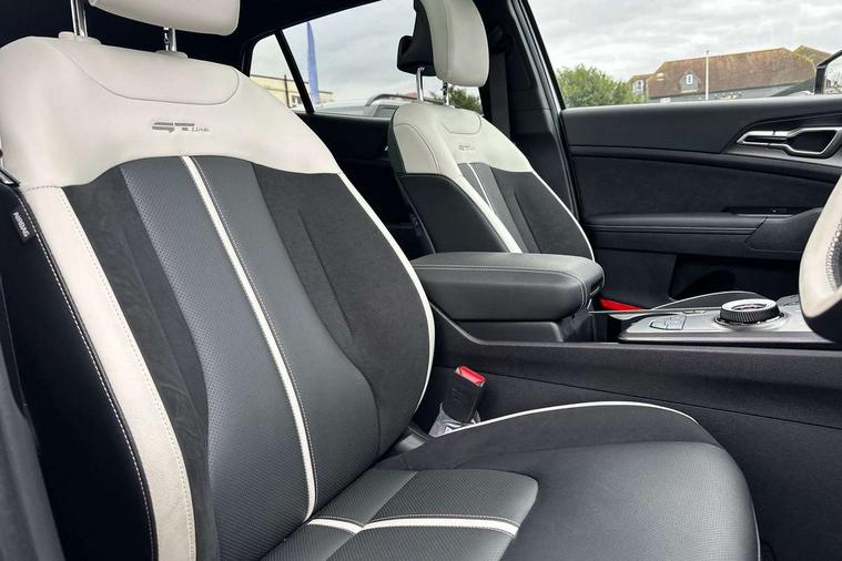 12.3" Driver display screen, 12.3" Touchscreen navigation system, 360 degree around view monitor, Blind spot collision avoidance assist, Blind spot view monitor, Bluetooth connection, Customisable head-up display, Digital key 2.0, Drive mode selector, Driver attention warning, E-call, Emergency stop signalling system, Forward collision avoidance assist 2.0, Front and rear parking sensors, Highway Driving Assist (HDA 2.0), Intelligent speed limit assist, Kia Connect (UVO), Lane Following Assist (LFA), Lane keep assist, Low washer fluid warning, Motor driven power steering, Over the air (OTA) functionality, Parking collision avoidance assist (PCA), Rear cross traffic collision avoidance assist (RCCA), Reversing camera, Safe exit warning (SEW), Smart cruise control with stop and go functionality, Smart power tailgate, Speed limiter, Trip computer, Windscreen washer level indicator, Wireless apple car play/android Auto, Wireless Smartphone charger, DAB Radio with MP3, Front passenger 1x USB-C port, Harman Kardon premium sound system with 8 speakers, Rear passenger 2x USB-C port, Steering wheel mounted audio controls, USB-C port for connection of a media device, Auto dimming rear view mirror, Automatic defog system, Automatic headlight control system, Black and body coloured bumpers, Body colour exterior door handles, Body colour radiator upper garnish and door garnish, Dual LED headlights with adaptive driving beam, Electric front and rear windows with front one touch function, Electrically adjustable/heated/folding door mirrors with LED indicators, Front and rear body colour skid plates, Gloss black door mirrors, Gloss black radiator grille, Gloss black wheel arches, Glossy black roof rails, GT-Line exterior styling, Heated rear window, High beam assist, LED daytime running lights, LED front fog lamps, LED High mounted stop light, LED rear lights, Panoramic sunroof with tilting and sliding function with electric blind, Privacy glass in rear windows and tailgate, Rain sensing wipers, Rear fog lamp, Rear roof spoiler, Rear side wing doors, Rear wiper, Satin finished beltline, Silver window surround, Trailer stability assist, 12V power socket in front and luggage compartment, 3 seat bench in 2nd row, 3 x passenger assist grips, 40/20/40 split folding rear seat, All-round height adjustable headrests, Alloy pedals, Automatic air conditioning, Black headlining, Centre console storage box, Cupholders in rear armrest, Customisable ambient lighting, Door courtesy lamps, Driver and front passenger sunvisors with illuminated vanity mirrors, Drivers seat power lumbar support, Electric adjustable driver seat with memory function, Electric adjustable front passenger seat, Front and rear door storage, Front seat and rear pockets, Gear shift indicator, Glovebox, GT-Line Interior Styling, Heated front and outer rear seats, Heated steering wheel, ISOFIX Child seat top tethers and anchor fixings outer rear seats, Leather steering wheel, Leather/suede upholstery, LED front cabin light, LED interior personal lamp, LED lighting in overhead console, LED rear reading lights, Luggage area LED light, Luggage area load cover, Luggage area parcel shelf, Luggage board, Luggage compartment under floor storage, Luggage net hooks, Manual adjust steering wheel, Metal paint interior door handles, Paddle shift controls, Rear air conditioning, Rear cabin light, Rear coat hooks, Single front passenger seat, Ventilated front seats, Ventilation ducts to rear compartment, Active front headrests, All round 3-point seatbelts, Anti-lock braking system (ABS), Dual front side airbags, Dual horn, Dynamic brake control, Electronic parking brake with auto hold function, Electronic stability control with downhill brake control, Front passenger airbag cut-off switch, Front seatbelt pretensioners + load limiters, Height adjustable front seatbelts, Hill start assist control (HAC), Impact sensing auto door unlocking, Multi collision brake assist, Rear airbags, Rear door child safety locks, Rear seat alert system, Seatbelt reminder warning, Traction control, Twin curtain airbags, Twin front airbags, Tyre pressure monitoring system, Vehicle stability management, Customisable automatic door locking, Customisable automatic door unlocking, Door deadlocks, Engine Start/Stop Button with Smart Entry System, Locking wheel nuts, Smart key with motion sensor, Speed sensitive auto door locking, Thatcham category 2 security alarm and immobiliser, Visible vehicle identification number, 18" GT-Line alloy wheels, Tyre mobility kit,