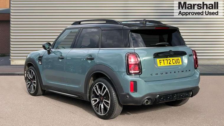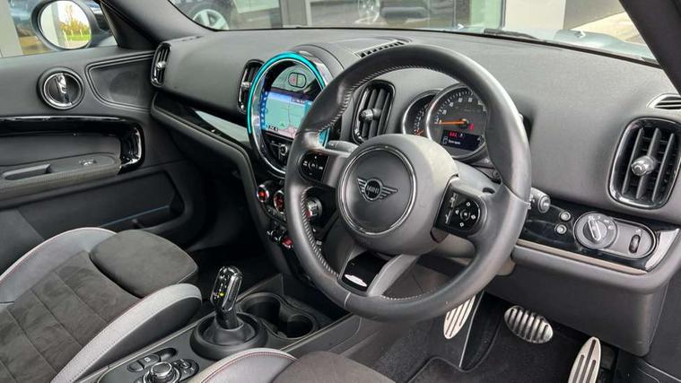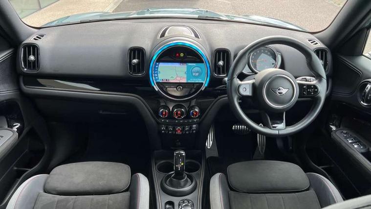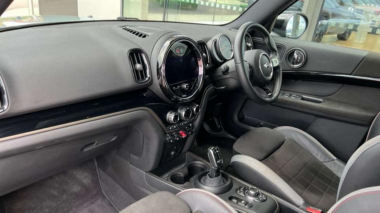 Active Guard incl speed limiting and lane departure functions with auto steering, and front collision warning with brake intervention, Automatic start/stop function with brake energy recuperation, Compatible mobile phone bluetooth with audio streaming, Cruise control with brake assist, Electro-mechanical speed dependant steering assistance, Instrument cluster, MINI Driving Modes - centre toggle switch to control driving setting (sport, mid and green), Mini E-call, On board computer, Rear parking distance control, 51 Litre fuel tank, Double Vanos system, Fully variable valve control, High precision injection, Performance Control, Steptronic transmission with double clutch, FM tuner and DAB digital radio, 3rd brake light, Body colour fuel filler cap, Day time driving lights, Door sill strips, Dynamic brake lights, Electric windows, Heated rear window, Heated windscreen washer jets, John Cooper Works - aerodynamic kit (front and rear apron, spoiler), front and rear sport bumpers and part-painted side sills with door sill finishers, John Cooper Works Logo, LED fog lights, LED Headlights, Model logo, Model logo on Tailgate, Rain sensor with auto headlights, Rear fog lights, Rear side wing doors, Rear window wiper, Side scuttle panel with integrated indicator, Split rear doors, Sun/heat protection glass, White indicator lenses, 12V socket in centre console, 3 seat bench in 2nd row, 360L luggage compartment capacity, 4 lashing eyes in luggage compartment, 40:20:40 split folding rear seats, Anthracite headlining with grab handles and clothes hooks, Chrome interior highlights, Colour line - Carbon black, Cupholders, English handbook, Floor mats, Front headrests, Glove compartment, Height and length steering column adjustment, Interior lighting with 12 basic colours selectable via toggle switch in roof, Isofix rear child seat preparation, LED reading lights, vanity mirror lights, front foot well light and spotlight on front seats, Manual air conditioning, Mini John Cooper Works leather gearshift lever and handbrake gaiters, Multifunction steering wheel, Nappa leather steering wheel with MINI Yours logo, Rear headrests, Single front passenger seat, Stainless steel pedals and foot rest, Storage compartments in doors, Sunvisors with vanity mirrors, Excitement pack - Countryman, Navigation pack - Countryman, Piano black exterior pack - Countryman, 2 tone horn, 3 point seatbelts on all seats, 6 Airbags - front, side, head and seat belt tensioners, Anti-lock braking system (ABS), DSC - Dynamic Stability Control, Electronic handbrake, Front and rear disc brakes, Hill start assist, Manual rear child locks, Tyre pressure monitoring system, Alarm system with tilt sensor, monitoring doors, bonnet interior and tailgate, Auto drive away locking, Deadlocking function, Electronic vehicle immobiliser, Locking wheel bolts, Start/stop toggle with keyless go, Piano black JCW interior trim, Tool kit,