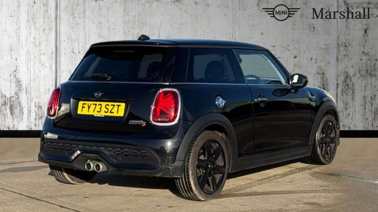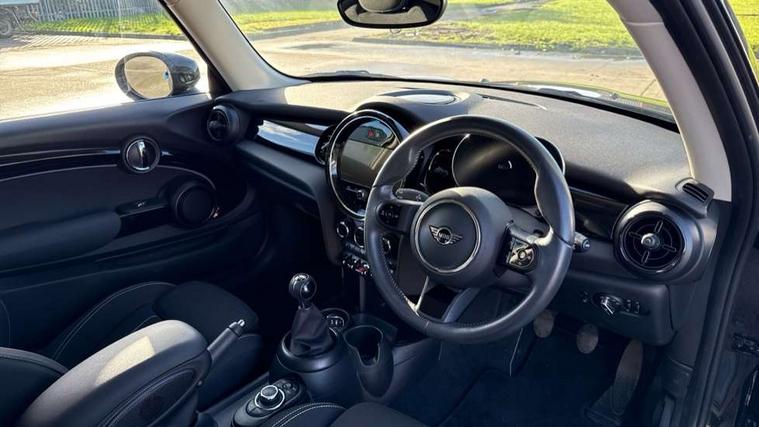 Automatic start/stop function with brake energy recuperation, Compatible mobile phone bluetooth with audio streaming, Electro-mechanical speed dependant steering assistance, Instrument cluster, MINI Driving Modes - centre toggle switch to control driving setting (sport, mid and green), Mini E-call, MINI TeleServices, On board computer, Service interval indicator, Double Vanos system, Fully variable valve control, Gear change indicator display, High precision injection, Performance Control, 6.5" touchscreen with LED ring, FM tuner and DAB digital radio, Automatic headlight activation switch, Bonnet scoop, Chrome border honeycomb structure radiator grille with S badge, Chrome plated fuel cap, Dynamic brake lights, Electric front+rear windows, Heated rear window, Heated windscreen washer jets, LED headlight with closed ring and daytime driving lights, Metal door sill strips with Cooper S imprint, Model logo Cooper S on right of tailgate, Rain sensor window wipers, Rear fog lights, Rear LED lights with union jack design, Rear window wiper, Side scuttle panel with integrated indicator, Sun/heat protection glass, Two central exhaust tailpipes with chrome finisher, White indicator lenses, 12V Accessory socket in centre console, 4 lashing eyes in luggage compartment, 60/40 split folding rear seat, Carbon Black colour line, knee roll and door armrests, Chrome interior highlights, Colour line - Carbon black, Cupholders, Front and rear head restraints, Front and rear isofix with front passenger airbag deactivation, Glove compartment, Height and length steering column adjustment, Interior lighting with 12 basic colours selectable via toggle switch in roof, Leather gearshift lever and handbrake gaiters, LED reading lights, vanity mirror lights, front foot well light and spotlight on front seats, Manual air conditioning, Mechanical seat adjustment, driver seat height adjust, forward/back and front seats backrest, Mini logo projection on floor from drivers exterior mirror, Multifunction steering wheel, Satellite grey headlining, Storage compartments in doors, Storage pocket on back of front seats, Sunvisors with vanity mirrors, 3 point seatbelts on all four seats, 6 Airbags - front, side, head and seat belt tensioners, Anti-lock braking system (ABS), DSC - Dynamic Stability Control, Front and rear disc brakes, Hill start assist, Two tone horn, Tyre pressure monitoring system, Alarm system with tilt sensor, monitoring doors, bonnet interior and tailgate, Electronic vehicle immobiliser, Start/stop toggle with keyless go, Tool kit, Tyre repair kit,