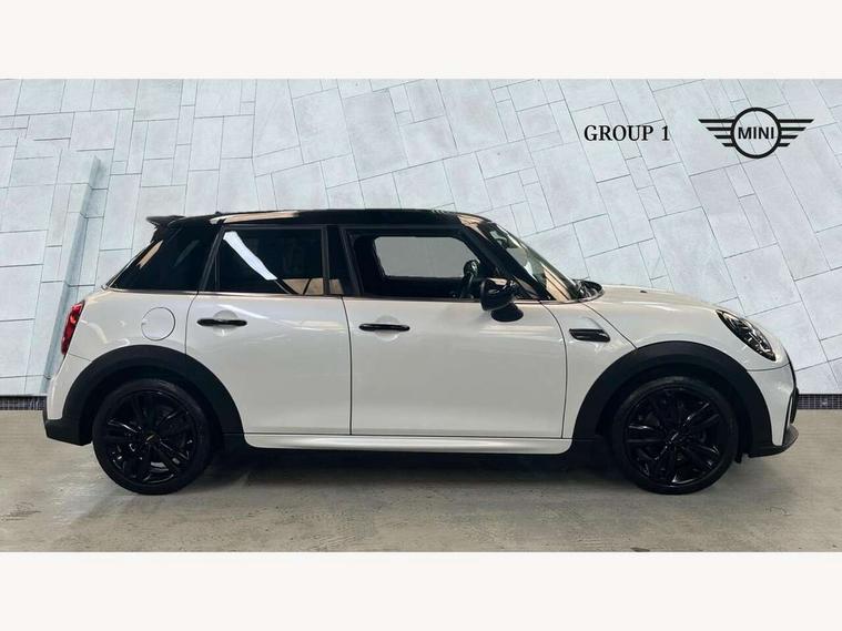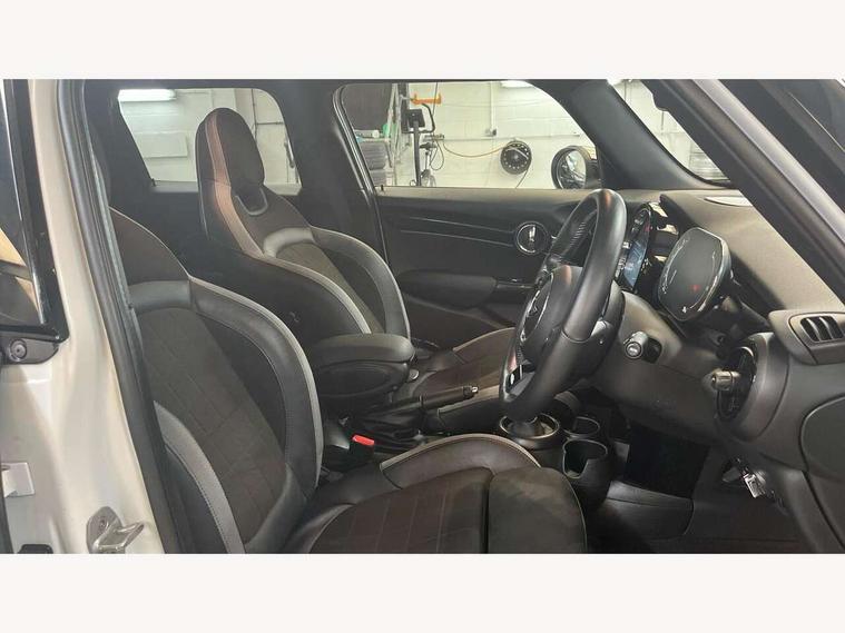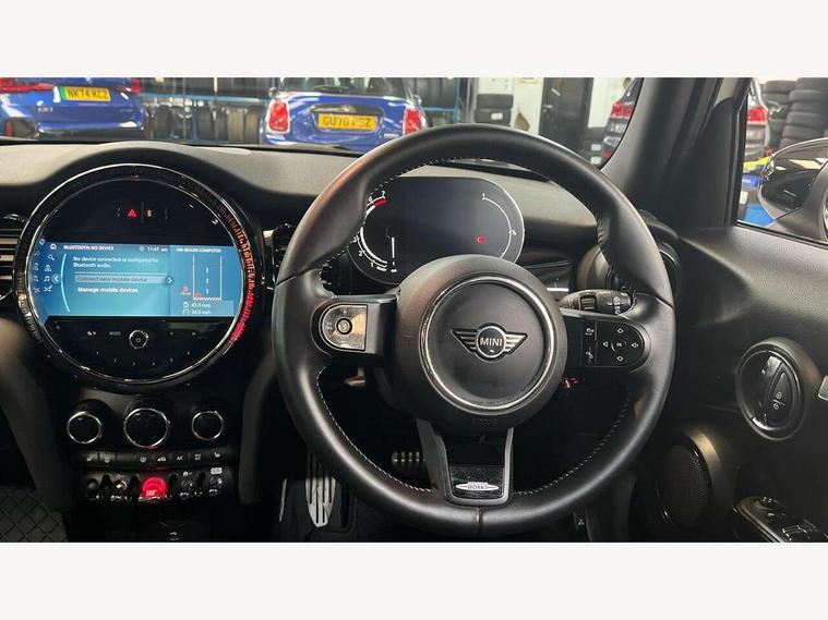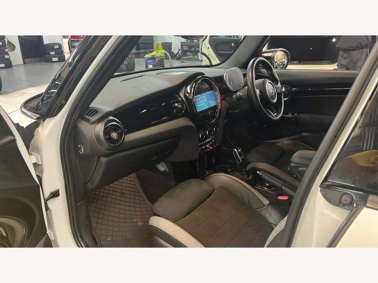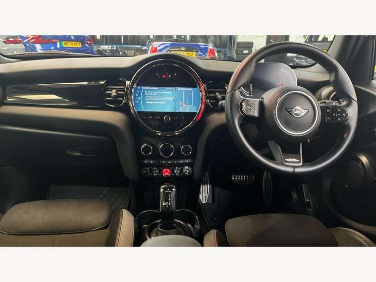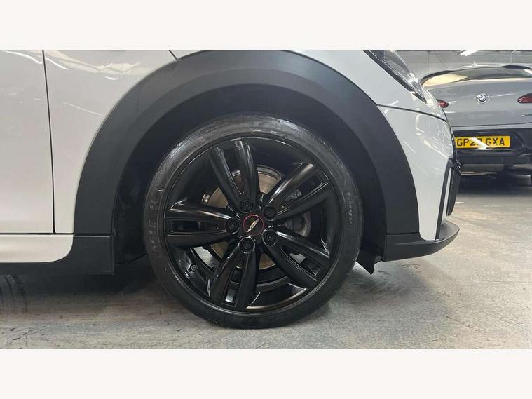 Apple CarPlay, Automatic start/stop function with brake energy recuperation, Compatible mobile phone bluetooth with audio streaming, Electro-mechanical speed dependant steering assistance, Flexible car sharing preparation, MINI Driving Modes - centre toggle switch to control driving setting (sport, mid and green), Mini E-call, MINI TeleServices, On board computer, Rear park distance control, Service interval indicator, Adaptive suspension, Double Vanos system, Fully variable valve control, Gear change indicator display, High precision injection, Performance Control, Steptronic transmission with double clutch, 8.8" touchscreen with LED ring, FM tuner and DAB digital radio, 3rd brake light, Automatic headlight activation switch, Body colour fuel filler cap, Chrome border high gloss black slats radiator grille, Dynamic brake lights, Electric front+rear windows, Exhaust tailpipe on left with chrome finisher, Heated rear window, Heated windscreen washer jets, JCW Aerodynamic kit - Front and rear bumpers with sporty JCW styling and part-painted side sills with MINI John Cooper Works door sill finishers, John Cooper Works rear spoiler, Metal door sill strips with MINI imprint, Model logo Cooper on right of tailgate, Rain sensor window wipers, Rear fog lights, Rear LED lights with union jack design, Rear side wing doors, Rear window wiper, Side scuttle panel with integrated indicator, Sun/heat protection glass, White indicator lenses, 12V Accessory socket in centre console, 3 seat bench in 2nd row, 4 lashing eyes in luggage compartment, 60/40 split folding rear seat, Anthracite headliner including grab handles and clothes hooks, Carbon black colour line - Knee roll and door armrest, Chrome interior highlights, Cupholders, Front and rear isofix with front passenger airbag deactivation, Front and rear velour floor mats, Glove compartment, Height and length steering column adjustment, Interior lighting with 12 different colours across the dashboard, underneath door bezel with illuminated laser-engraved design on central display, JCW Sport seats with integrated headrests, adjustable thigh support and John Cooper Works logo, Leatherette gearshift lever and handbrake gaiters, LED reading lights, vanity mirror lights, front foot well light and spotlight on front seats, Mechanical seat adjustment - forward/back & backrest for front seats and driver seat height adjust, Multifunction steering wheel, Single front passenger seat, Storage compartments in doors, Sunvisors with vanity mirrors, Walknappa leather steering wheel with grey seam and John Cooper Works badge on Piano Black lower steering wheel spoke, Piano black exterior pack - Mini Hatchback Cooper, 3 point seatbelts on all five seats, 6 Airbags - front, side, head and seat belt tensioners, Anti-lock braking system (ABS), Child locks on rear doors, DSC - Dynamic Stability Control, Front and rear disc brakes, Hill start assist, Single tone fanfare horn, Tyre pressure monitoring system, Alarm system with tilt sensor, monitoring doors, bonnet interior and tailgate, Electronic vehicle immobiliser, Start/stop toggle with keyless go, Piano black interior trim, Tool kit,