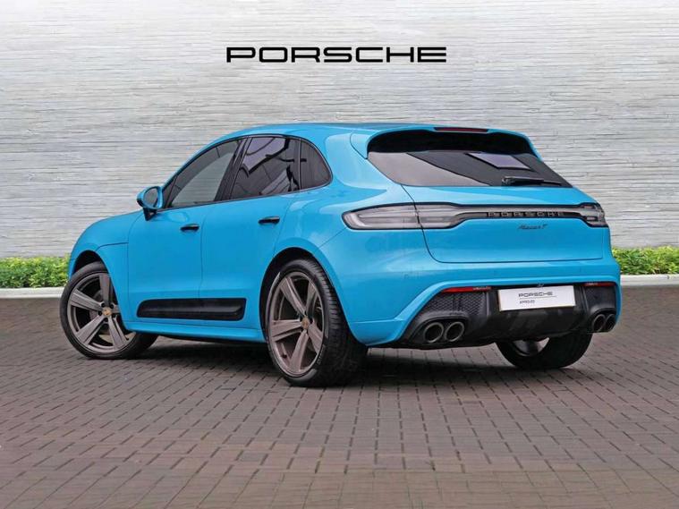 Analogue clock on dashboard, Automatic start/stop system, Automatic tailgate, eCall emergency call system, Instrument cluster with high resolution 4.8-inch TFT display, gear indicator for PDK, service interval display, external temperature indicator, fuel gauge, Off-road button, On board computer, Porsche Communication Management (PCM) including online navigation module, mobile phone preparation, audio interfaces and voice control system, 7-Speed Porsche Doppelkupplung (PDK) with automatic mode and manual controls (gearshift paddles) on steering wheel, Direct fuel injection (DFI), Gasoline particulate filter, VarioCam camshaft control for inlet and exhaust valves, 2 USB sockets in rear centre console, Apple CarPlay with Siri voice recognition, Connect Plus including online navigation, LTE communication module with SIM card reader, wireless internet access, Porsche Car Connect services, DAB Digital radio, Porsche Vehicle Traking System Plus (PVTS Plus), Two USB C charging and connectivity ports in the front centre console storage compartment, Active radiator grille shutters, Automatic headlight activation including welcome home lighting, Bumper system with high strength cross members and two deformation elements + One threaded fixture point for towing eye contained in onboard tool kit, Dynamic cornering lights, speed-sensitive headlight and dynamic range control, adverse weather function, four-point LED daytime running lights, Electric front and rear windows with remote closing function + anti trap + one touch, Electrically folding and heated exterior mirrors, Front light modules with LED position lights and direction indicators, Front windscreen wipers with two speeds, intermittent wipe and rain sensor, Front with integrated cooling air intakes, Fully galvanised body, Heated rear window with automatic switch off, High gloss black side window trims, High level 3rd LED brake light integrated into roof spoiler, Loading edge protection in aluminium, Rear side wing doors, Rear window wiper with intermittent function and washer jet, Roof spoiler in agate grey metallic, Towbar preparation, 3 adjustable rear headrests, 3 rear seats, 40:20:40 split folding rear bench seat, Cloth hook b-pillar, Floor mats with Porsche logo, Fold up centre console armrest with fore/aft adjustment, Front and rear bottle holders in door panels, Front headrests, Front passenger seat, Glove compartment, Isofix fastening system for child seats on outer rear seats, Luggage compartment cover, Particle/pollen filter with active carbon filter, Rear armrest with 2 cupholders, Storage bin in centre console, Storage compartment in side of luggage compartment and storage compartment in spare wheel recess, Storage pocket in front and rear doors, Two integrated cup holders in front with variable diameter, Two socket 12V power outlets in front console and luggage compartment, uncovered storage compartment in centre console, Ambient comfort lighting pack - Macan, Lower exterior trim package in black - Macan, Sport chrono package including mode switch - Macan T, 3-point automatic seatbelts with front and outer rear seats pretensioners and force limiter + manually height adjustable seatbelt + reminder warning, Auto hold function, Black painted brake calipers, Child locks on rear doors, Curtain airbags along entire roof frame and side windows from A pillar to the C pillar, Electronic parking brake, Front passenger airbag deactivation facility for installation of child seats indicator in overhead console, Front side airbags integrated into seat, Full size driver and passenger airbags, Internally vented brake discs with diameter of 350mm at front and 330mm at rear, Multi-Collision braking, Porsche hill control (PHC), PTM(Porsche Traction Management) and All-wheel drive with map-controlled multi-plate clutch, Roll over sensor for curtain airbag and seatbelt pretensioners, Side impact protection in doors, Tyre pressure monitoring system, Vehicle stability system, Porsche stability management (PSM) including ABS, ASR, ABD, MSR and trailer stability management, Vented discs brake with 4 piston aluminium monobloc fixed caliper at front, Vented discs brake with combination floating calipers at rear, Alarm system with ultrasonic interior surveillance, Engine immobiliser with key transponder, Remote control central locking, Accent trims with silver coloured finish,