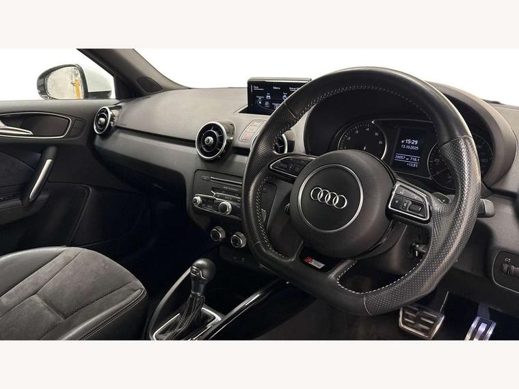 Audi drive select, Cruise control, Driver's information system, Electro-mechanical PAS, Low washer fluid indicator, Service interval indicator, Voice control system, Additional SD card reader, Audi music interface, Bluetooth audio streaming, DAB Digital radio, Adaptive brake lights, Body coloured bumpers, Body coloured door mirrors, Electric adjustable door mirrors, Electric front windows, Front fog lights, Heat insulating glass, Heated door mirrors, Heated rear windscreen, Privacy glass, Rain and light sensors, Rear diffuser, Rear wiper, Roof spoiler, S Line body styling, Xenon plus headlights including automatic headlights, LED daytime running lights, LED rear lights, dynamic range control and headlight washers, 12V Accessory socket in centre console, 3 spoke flat bottom multi-function leather steering wheel including paddle shift, Adjustable rear head restraints, Black cloth headlining, Cupholders in centre console, Door sills trims with aluminium inlays, Electronic climate control (ECC), Front floor mats, Front head restraints, Front seats - 'Easy Entry', Height adjustable front seats, Illuminated glovebox, Isofix attachments on rear seats, Jack and tool kit, Leather gear knob, Leather handbrake, Lumbar adjustment for front seats, Rake/reach adjustable steering wheel, Split folding rear seats, Stainless steel pedals, High-gloss black styling pack - A1, Non smoking pack - A1, ABS/EBD, Brake assist function, Driver and passenger side airbags, Driver/Front Passenger airbags, EDL, ESP with ASR, First aid kit, Front and rear seatbelt reminder, Front passenger airbag deactivation, Head airbags, Height adjustable front seatbelts, Rear three point seatbelts x 2, Tyre pressure monitor, Warning triangle, Locking wheel bolts, Remote control central locking, Thatcham category 1 alarm + immobiliser, Aluminium trim, High gloss black air vent sleeves, Tyre repair kit,