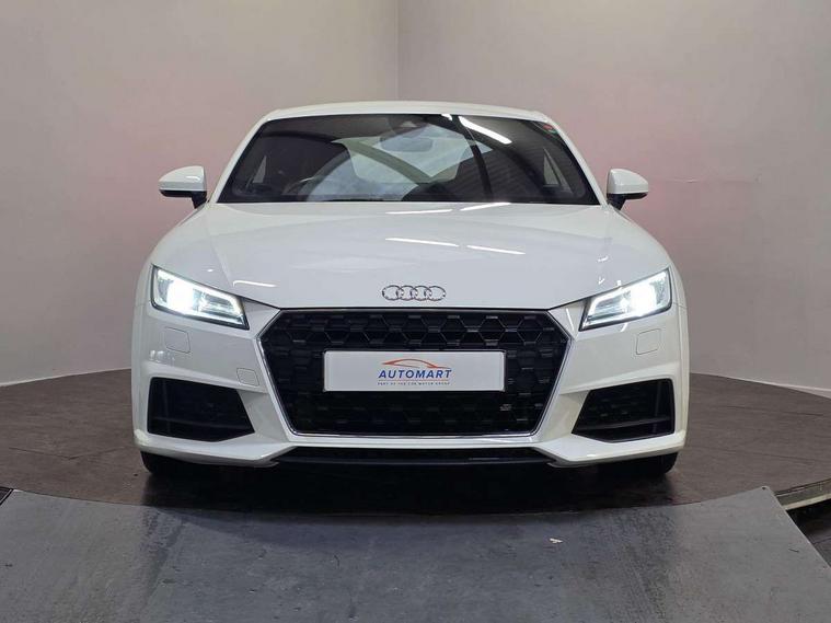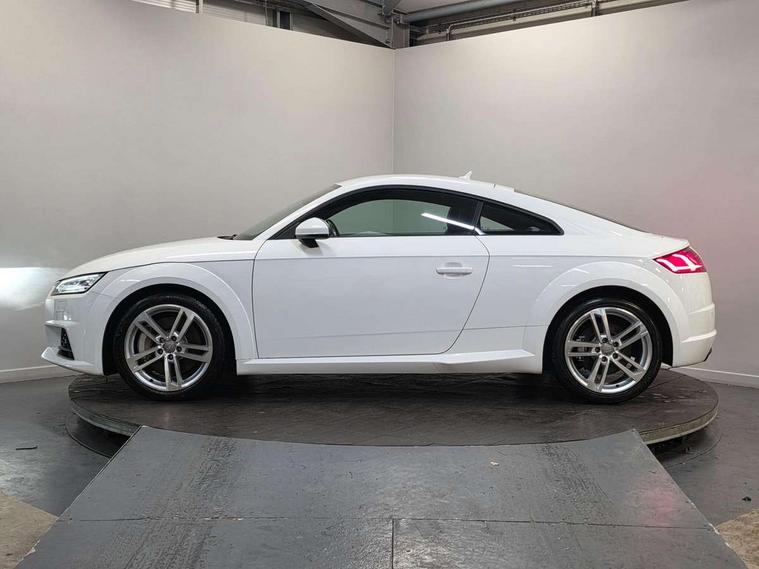 Audi drive select with 4 Pre configured modes, Audi smartphone interface, Audi virtual cockpit - 12.3" high-resolution LCD display with fully customisable instrument cluster, Cruise control + speed limiter, MMI touch panel, Mobile phone preparation with bluetooth interface, Progressive power assisted steering, Service interval indicator, Start/Stop system with energy recuperation, TP memo, Sports suspension, AM/FM radio, Bluetooth audio streaming, DAB Digital radio, MMI Radio with CD player and SD/XC card slot, Auto dimming rear view mirror, Body colour bumpers, Body colour electrically adjustable and heated door mirrors with built in LED side indicators, Electric folding door mirrors, Electric front windows, Front fog lights, Green tinted heat insulating glass, Light and rain sensors, Retractable rear boot spoiler, Sunband for windscreen, Xenon headlights with LED daytime running lights with automatic headline range control + LED rear lights, brake lights and rear indicators, 12V socket, 3 spoke flat bottomed high multi-function leather sport steering wheel with gearshift paddles, Alcantara/Leather upholstery includes seat centre panels, door trim inserts in black Alcantara with side bolsters, head restraints in black leather, Aluminium door sill trims, Front centre armrest, Front sports seats, Heated front seats, Height adjustable driver's seat, Height adjustable front head restraints, Height/reach adjust steering wheel, ISOFIX child seat mounting for front passenger seat with airbag deactivation, Rear head restraints, Rear top tether child seat ISOFIX attachment, Split folding rear seat, Non smoking pack - TT/TT RS, 3 point front seat belts, ABS, ASR traction control, Brake energy regeneration, Curtain airbags, Driver and front passenger airbag with front passenger airbag deactivation, EDL traction control, Electromechanical parking brake, ESP, First aid kit, Front side airbags, Head airbags, Hill hold assist, Seatbelt warning, Tyre pressure warning, Warning triangle, Anti theft alarm, Anti theft wheel bolts, Immobiliser, Keyless Go, Remote central locking, Aluminium design inlays, Tool kit, Tyre repair kit,