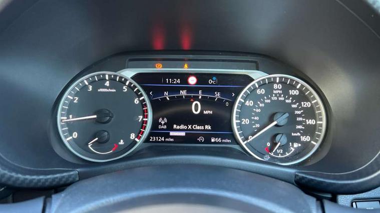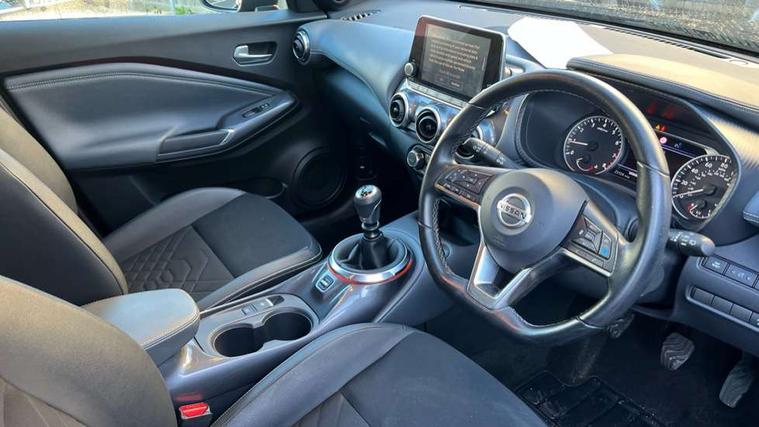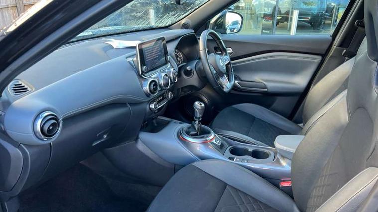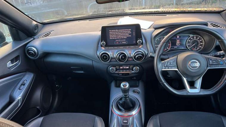 7" full colour TFT screen combimeter, 8" infotainment colour display with touch screen, Apple CarPlay and Google Android auto, Drive modes select (Eco, normal and sport), Emergency and breakdown call, Front parking sensor, Idle start/stop system, Intelligent lane intervention, Lane departure warning system, Nissan connect nav with TomTom traffic, Nissan connect services and Wifi connection, Outside temperature sensor, Power Steering, Rear parking sensor, Traffic sign recognition, Trip computer, Gasoline particulate filter, Bluetooth system, USB, Aux-in and 12V socket, Bose personal plus audio system with 8 speakers(4 speakers and 2 headrest speaker for driver and passenger seats), Bose personal sound stage control, DAB Digital radio, Rear console USB port, Auto dimming interior rear view mirror, Automatic hazard signal with emergency stop signal, Body colour bumpers, Body colour door handles, Electrically adjustable door mirrors with integrated indicators, Follow me home headlights, Front and rear electric window with one touch driver window, Heated and auto folding door mirrors, High beam assist, LED daytime running lights, LED front fog lights, LED headlamps, LED rear fog lamp, LED rear lamps, Rain sensor windscreen wipers, Rear privacy glass, Rear spoiler, Rear wiper, Thermaclear heated windscreen, Three blink turn signal, 3 height adjustable rear headrests, 60/40 split folding rear seat, Automatic climate control, Card holder on driver sunvisor, Cloth/Synthetic leather upholstery, Door ambient lighting, Driver and passenger sliding and reclining seats, Driver seat back pocket, Driver side rear coat hanger, Driver/passenger sunvisors and vanity mirrors, Front and rear cabin lighting, Front armrest, Front door pockets with bottle holders, Front head restraints, Front passenger isofix child seat anchorage point, Front/rear passenger grab handles, Gear console ambient circle lighting, Grey synthetic leather kneepad, Heated front seats, Height adjustable driver's seat, Height adjustable passenger seat, Internal chrome door handles, Leather gearshift knob, Leather steering wheel, Luggage board, Luggage space lighting, Monoform sporty seats, Multifunction steering wheel, Passenger seat back pocket, Rear door bottle holders, Telescopic steering wheel adjustment, Two cupholders in front centre console, Two rear isofix child seat anchorage points with top tether, Voice recognition switch on steering wheel, Welcome light and console tray ambient lighting, Advanced safety shield pack - Juke, ABS with EBD and brake assist, Active ride control, Active Trace Control, Driver and passenger airbags, Driver and passenger side airbags, Electric handbrake with auto hold function, Electronic Stability Programme (ESP), Front and rear curtain airbags, Height adjustable seatbelts, Hill start assist, Intelligent emergency braking with pedestrian and cyclist recognition, Seatbelt reminder for driver/front passenger and rear seats, Single tone horn, Three 3 point rear seatbelts, Traction control, Tyre pressure monitoring system, VDC Dynamic Vehicle Control, Ventilated rear brake discs, Alarm, Immobiliser, Intelligent Key with push button starter, Remote central locking,