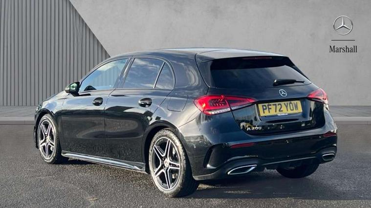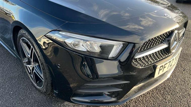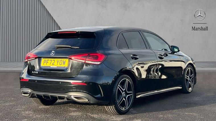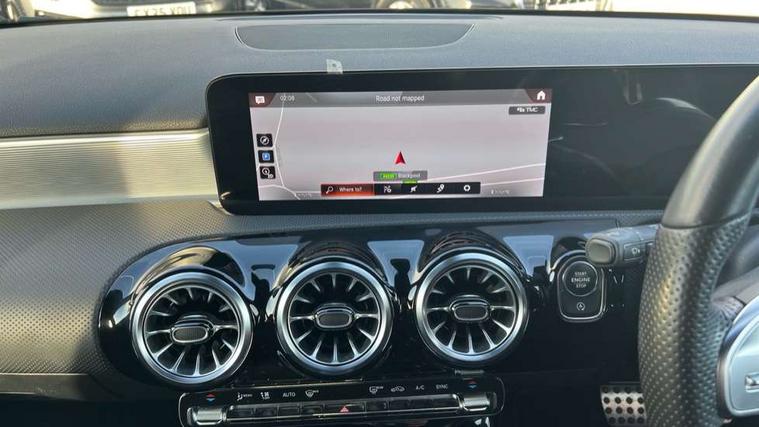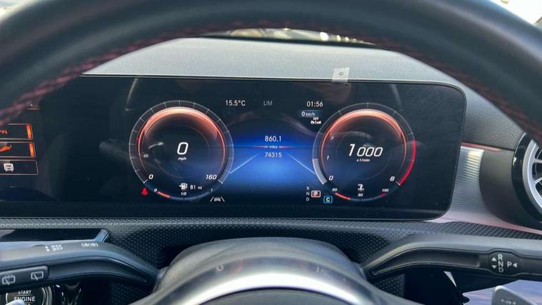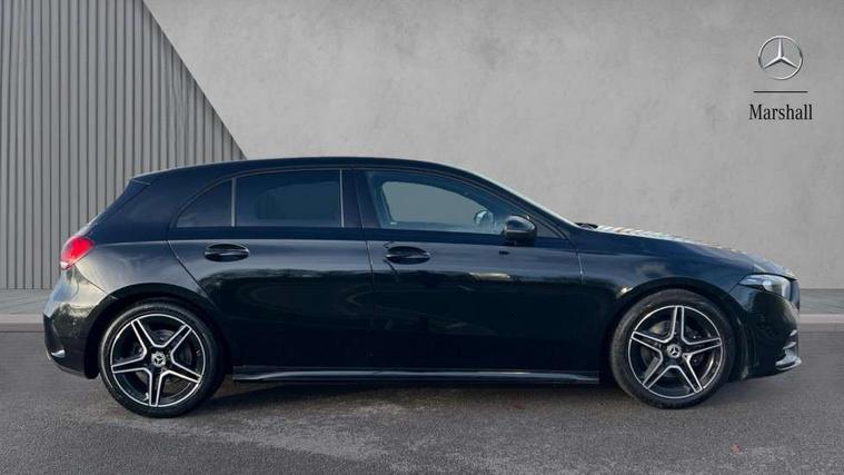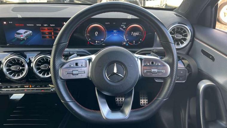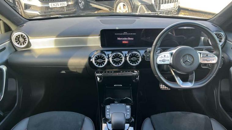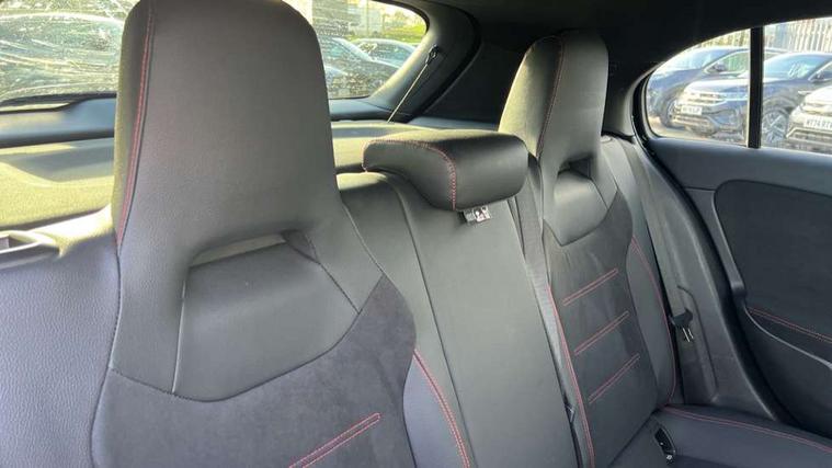 10.25" Digital instrument cluster display screen, 10.25" media display, 180 degree rear view camera with parking guidelines, Active parking assist with visual and audible warning of detected obstacles, Attention assist, Brake pad wear indicator warning light, Car wash mode, Cruise control + speed limiter, Direct steering, Dual bluetooth interfaces, DYNAMIC SELECT with a choice of driving modes (ECO, Comfort, Sport and Individual), ECO start/stop function, Fluid level warning indicator for fuel, oil, coolant and washer fluid, Hard-disk navigation, Hey Mercedes Voice activation, Lamp failure indicator, Lane keeping system, Mercedes me connect including emergency call system, accident recovery, breakdown and maintenance management, Mercedes me remote services, Outside temperature gauge, Owners manual in English, Pre-installation for private car sharing, Preinstallation for Mercedes Benz link, Service indicator (ASSYST), Smartphone integration with Apple CarPlay and Android auto, Speed limit assist, Speed sensitive power steering, Trip computer, Ultrasonic sensors positioned in the front and rear bumpers, Lowered comfort suspension, Rear axle torsion beam, 2 USB ports (type C) in rear stowage compartment and one in front of center console, 6 speakers, DAB Digital radio, MBUX multimedia system with DAB digital radio and touchpad including satellite navigation, Mercedes-Benz sound system - 100W, 4 Electric Front and Rear windows, Adaptive brake lights, AMG bodystyling - Front apron with splitter in chrome, rear apron with chrome trim and chrome visible trim elements in tailpipe, Automatic headlights, Black weather strip, Body colour bumpers, Body colour door handles with chrome inserts, Body colour side skirt, Electric adjustable and heated door mirrors with integrated LED side indicators, Exclusive diamond radiator grille, Exhaust system - Twin visible tailpipes in polished stainless steel, Headlamp assist automatic headlamp activation, Heated glass rear windscreen + timer control, LED High level third brake light, LED high performance headlamps with integrated LED daytime running lights, LED tail lamp, Privacy glass, Radio aerial, Rain sensing windscreen wipers with two sensitivity settings, Rear fog lights, Rear side wing doors, Rear wiper, 3 seat bench in 2nd row, 3 Spoke flat bottom leather multi function steering wheel with perforated leather in grip area, 40:20:40 split folding rear seats, Artico man-made leather/Microfibre Dinamica upholstery with red contrast stitching, Auto Mercedes-Benz child seat recognition sensor, Black air vents with surround in silver chrome, Black roof lining, Brushed stainless steel sports pedals with rubber studs, Controller on centre console with chrome surround, Floor mats with AMG lettering, Front centre armrest with storage compartment, Front seat backs luggage nets, Galvanished gear shift paddles on steering wheel, Heated front seats, Height/reach adjustable steering column, Illuminated Mercedes Benz lettering front door sills with changeable cover, Interior lighting - 64 colour Ambient lighting, Interior mirror with reading lamps in black and frameless, Manual height adjustable front seats, Rear head restraints, Seat occupancy sensor for front passenger seat, Single front passenger seat, Sports seats with integrated headrests, Stowage compartment in centre console with retractable cover, Sunvisors with illuminated vanity mirrors, Touchpad on center console, Twin front cupholders, Two zone thermotronic luxury automatic climate control, Light and sight pack - A Class, Mirror package - A Class, Night pack - A Class Saloon/Hatchback, Seat comfort pack - A Class, 3 rear 3 point seatbelts, ABS with Brake Assist, Active bonnet, Active brake assist includes forward collision warning system with autonomous braking, Adaptive brake assist with hold function and hill start assist, Black seatbelts, Childproof locks manually operated for rear doors and electrically operated for rear power windows, Crash responsive emergency lighting, Driver and passenger head and side airbags, Drivers knee airbag, Dual stage driver/passenger airbags, Electronic parking brake, ESP curve dynamic assist, ESP with ASR, Front and rear seatbelt reminder, Front brake callipers with Mercedes Benz lettering, ISOFIX and top tether child seat fixing points in two outer rear seats, Tyre pressure monitoring system, Warning triangle and first aid kit, Window airbags, Alarm system/interior protection/immobiliser, Keyless Go, Remote central locking and crash sensor with emergency opening function, Urban guard vehicle protection system with immobiliser and interior protection, Matrix look light longitudinal grain aluminium trim element, 18" AMG 5 twin spoke light alloy wheels aerodynamically optimised painted in black with highsheen finish, Summer tyres, Tirefit sealant kit,