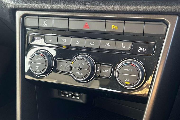 2 USB connection charging sockets, Adaptive cruise control, App-Connect, Automatic start/stop system, Bluetooth telephone and audio connection for compatible devices, Car information display, Driver tips and journey analysis, Front assist, radar sensor controlled distance monitor, city emergency braking + predictive pedestrian protection, Lane assist, Multifunction computer with visual gear change recommendation for fuel consumption, Power assisted speed sensitive steering, Service interval indicator, Think blue trainer driver tips and journey analysis, Warning sound and light for doors and tailgate open, Warning sound and light for front and rear seat belts if unfastened, Warning sound and light for front seatbelts unfastened, We Connect Go Dongle, Battery regeneration during braking, Bluetooth - Simultaneous pairing of 2 compatible mobile devices, DAB Digital radio, Front USB type C Interface 2X and USB charging socket, Multi device interface (MDI) with USB connection, Music playback - MP3, WMA and AAC files, Premium USB cable in choice of either Apple or Android smartphone compatibility, SD card slot, SMS functionality - read, compose and send SMS messages using touch-screen display, Title and cover art display, Auto dimming interior rear view mirror, Automatic hazard lights activation under emergency braking, Black grained lower door protectors, Black grained wheel arches, Body colour bumpers with silver metallic underbody fascia, Body colour door handles, Chrome trim on upper and lower radiator grille, Door mirror integrated indicators, Dusk sensor, Electrically foldable, adjustable and heated door mirrors with puddle lights and reverse activated kerb-view adjustment on passenger's door mirror, Front and rear electric windows, Front windscreen wiper with intermittent wipe and 4 position delay, Fully galvanised body, Heated rear window, High level 3rd brake light, LED rear number plate lights, Manual coming/automatic leaving home lighting function, Rain sensor, Rear windscreen washer and wiper with interval delay, Windscreen wiper with intermittent wipe light, 12V socket in centre console storage area, 2 front reading lights, 3 rear head restraints, 4 load lashing points in luggage compartment, Climate control - 2 zone electronic air conditioning with automatic air recirculation and allergy filter, Drawer under drivers seat, Front centre armrest with storage compartment, longitudinal and height adjustable and two rear air vents, Front cupholders x 2, Front seat back storage pockets, Glovebox, Height adjustable front seats, Height/reach adjust steering wheel, Illuminated vanity mirrors, Illuminated vanity mirrors in sun visors with air bag label on sun visor and b-pillar, Instrument lighting, white adjustable panel illumination, Interior light delay, Isofix easy fit child seat preparation for 2 outer rear seats, Load through provision with single cup holder when folded down, Luggage compartment cover, removable, Luggage compartment lighting, Split folding rear seat backrests with centre armrest, Storage compartment in left and right luggage area, Storage compartment in rear doors, Storage compartments in driver and front passenger doors, 3 rear three point seatbelts, ABS, Driver and front passenger safety-optimised head restraints, Electronic parking brake with auto hold, Electronic stability control (ESC) includes ASR, EDL, EDTC and trailer stabilisation function, ESC with EDL, ASR, EDTC and trailer stabilisation function, Front and rear curtain airbags, driver and front passenger airbags with passenger deactivation switch and front side impact airbags, Rigid safety cell with front and rear crumple zones, Three point height adjust front seatbelts + pretensioners, Tyre pressure loss indicator, Ventilated front and rear disc brakes, Volkswagen roadside assistance, Alarm with remote central locking and interior protection, Electronic engine immobiliser, Remote central locking with 2 remote folding keys, Limestone grey decorative inserts in dash and door panel, Steel space saver spare wheel,