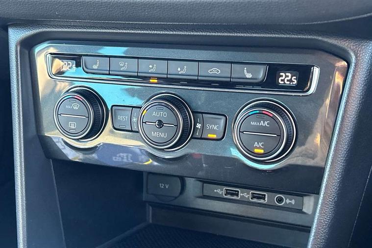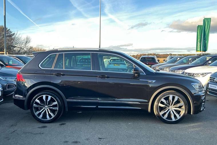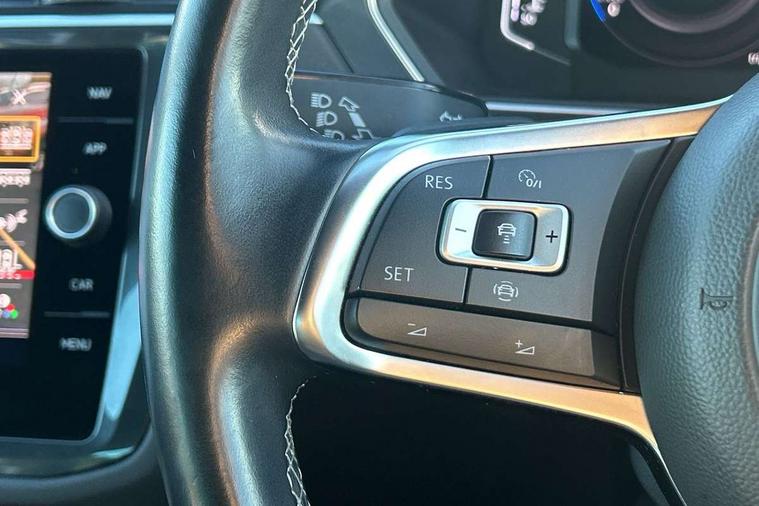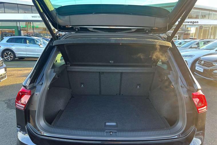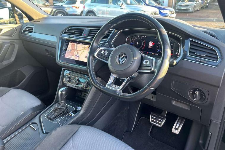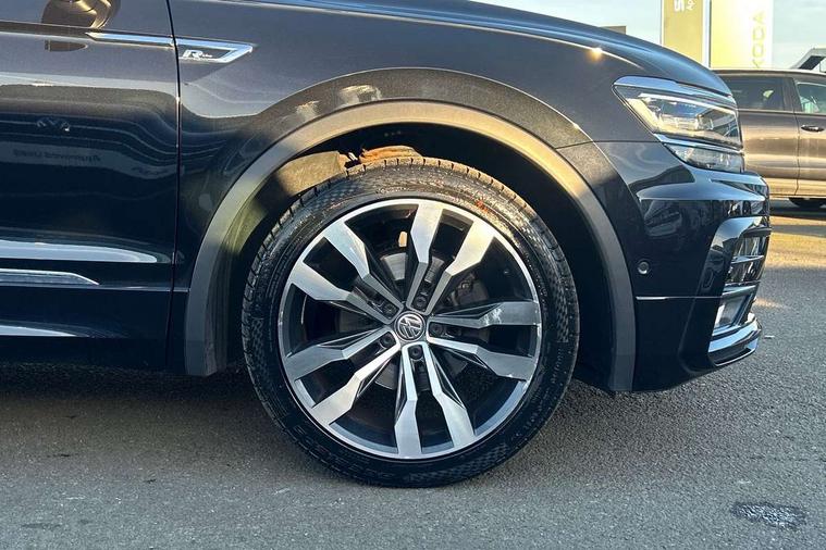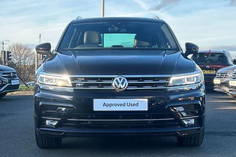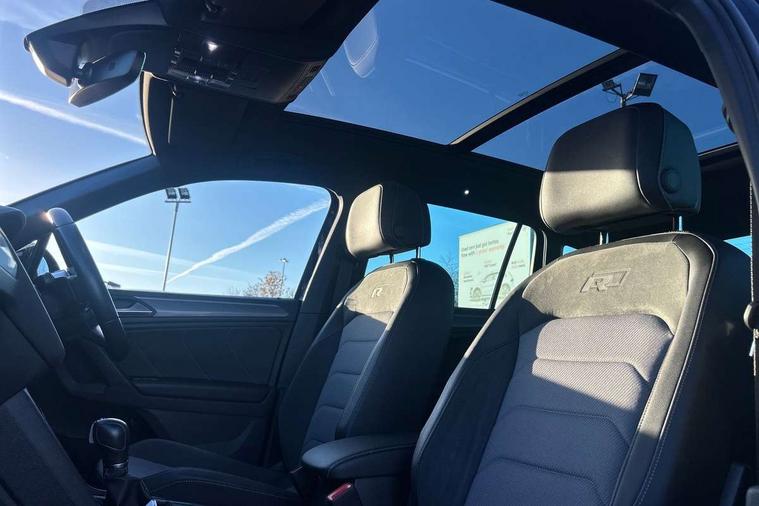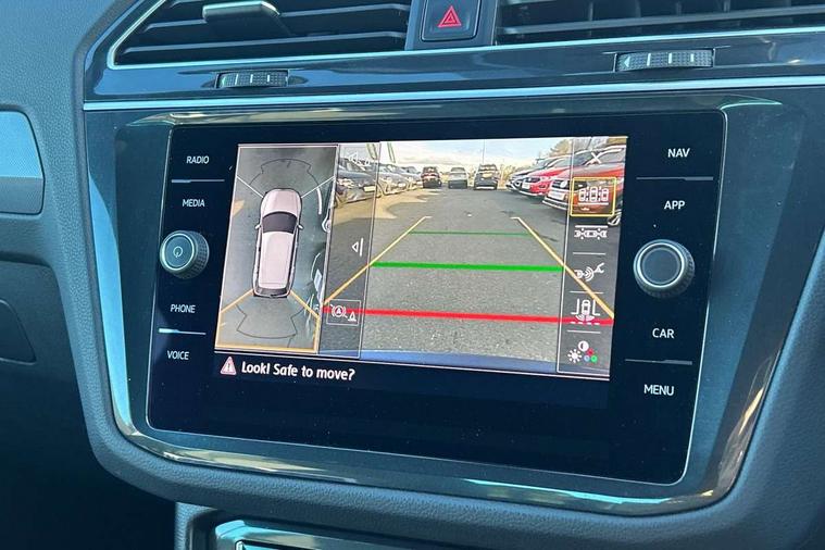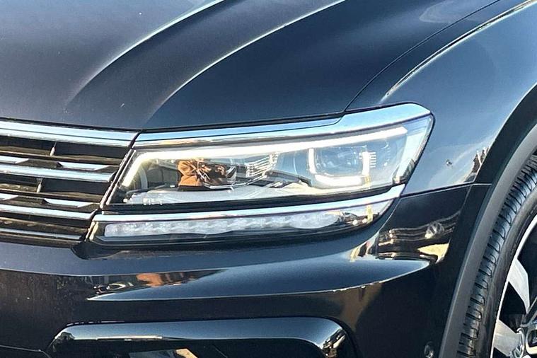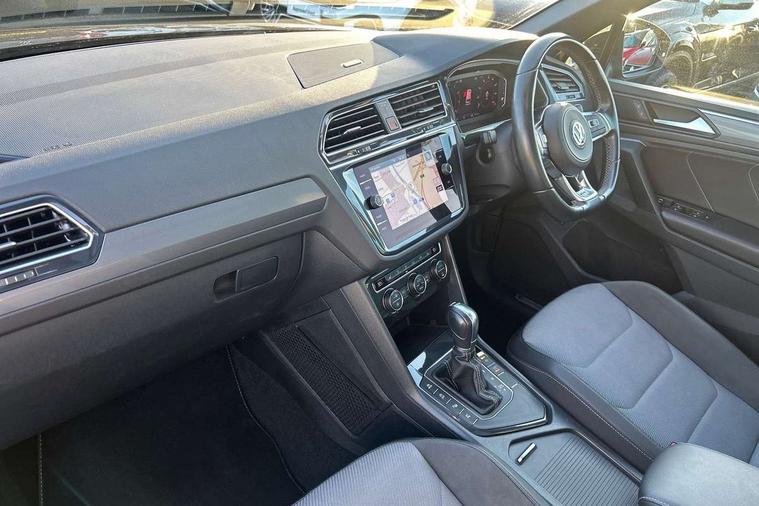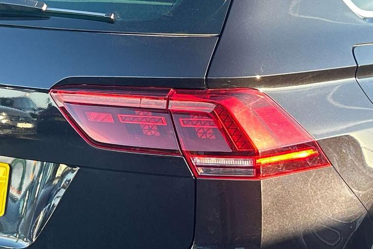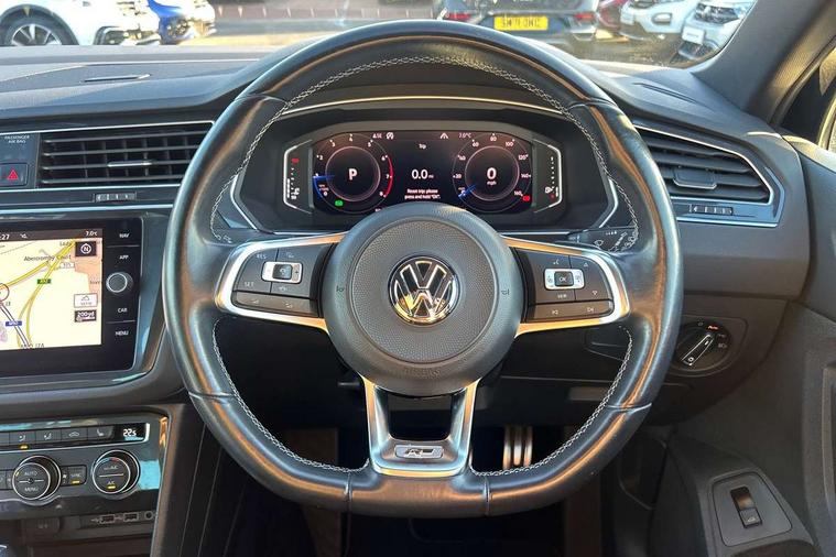 App-Connect, Active information display, Adaptive cruise control, Bluetooth phone integration system, Distance control assist, Driver profile selection, Fatigue detection system, Front assist, radar sensor controlled distance monitor, city emergency braking + predictive pedestrian protection, Instrument cluster, Lane assist, Low washer fluid warning light, Multifunction colour display, Outside temperature display, Progressive power assisted steering, Service interval indicator, Speed limiter, Warning lights, XDS electronic differential lock, 2x USB sockets in front, DAB Digital radio, MP3 compatible single CD player, SD card slot, 3D effect LED rear lights, Auto dimming interior mirror, Automatic activation of hazard warning lights, Body colour door handles, Body colour door mirrors, Body colour rear spoiler, Body colour side skirt, Body coloured bumpers, Chrome side window surrounds, Chrome trimmed radiator grille, Coming/leaving home lighting function, Dusk sensor + auto driving lights, Electric folding door mirrors, Electric heated + adjustable door mirrors, Electric panoramic sunroof with sunblind, Front and rear electric windows, Heated rear window, LED headlights with dynamic light assist daytime running lights and cornering front fog lights, LED rear lights, Piano black rear diffuser, R Line body kit, R Line side sills, Rain sensor windscreen wipers, Rear windscreen washer and wiper with interval delay, Side skirts and rear bumper with chrome insert, Silver roof rails, Silver under body guard, Tinted windows (B pillar backwards), Windscreen wipers/ intermittent wipe + 4 position delay, 12V Accessory socket in centre console, 3 rear headrests, 3 zone climate control, 4 load lashing points, 40:20:40 split folding rear seats, Bag hook in luggage compartment, Black headlining, Driver + front passenger lumbar support, Foldable passenger seatback, Front + rear carpet mats, Front centre armrest with 12v socket, Front centre armrest with storage + rear 2 air vents + cupholders, Front seatback folding tables, Height/reach adjust steering wheel, Illuminated driver/passenger vanity mirrors, Illuminated scuff plates, Instrument lighting white adjustable panel illumination, Interior light with delay, Isofix Preparation 2 Rear child seats, Leather gear knob, Leather multifunction steering wheel with tiptronic control, Load through provision with 2 cupholders when folded, Lockable cooled glovebox, Luggage compartment lighting, Luggage compartment side storage, Map pockets on front seats, Passenger seat height adjuster, Rear cupholders, Removable luggage cover, Sliding/reclining rear seats, Stainless steel pedals, Storage compartment in driver's door, Storage compartment in passenger's door, Storage compartment in rear doors, Storage tray on dashboard, Sunglasses storage, Unique R Line door sill protectors, Variable boot floor, Ambient lighting pack - Tiguan, 3 rear 3 point seatbelts, ABS+EBD+Brake assist, Active bonnet, Active pedestrian safety system, Curtain airbags, Driver/Front Passenger airbags, Driver/Passenger whiplash optimised head restraints, Drivers knee airbag, DTC - Drag torque control, Electronic parking brake with auto hold, ESP with EDL + ASR, First aid kit, Front and rear brake disc, Front assist including city emergency braking, Front side airbags, Front ventilated brake discs, Head airbag system, Height adjustable front 3 point seatbelts + pretensioners, Hill hold control, Passenger airbag deactivate switch, Passenger knee airbag, Pre crash system, Rear side airbags, Seatbelt warning lamp and buzzer, Two tone horn, Warning triangle, Alarm with interior protection, Electronic engine immobiliser, Remote central locking with 2 remote folding keys, Aluminium decorative inserts, Chrome door trim inserts, 20" Suzuka alloy wheels + anti theft wheel bolts, Steel space saver spare wheel,