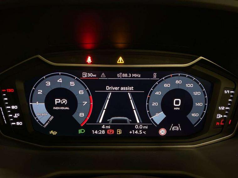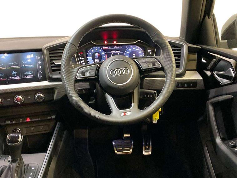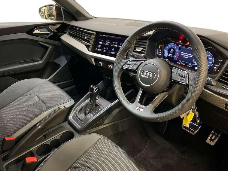 10.25" Digital instrument cluster display classis style instrument dials + speed, odometer, time, outside temperature, telephone menu + fuel level warning, Advanced driver attention and drowsiness monitor, Audi connect emergency call and service, Audi drive select, Audi remote connect and control, Audi smartphone interface, Bluetooth interface, Camera based traffic sign recognition, Cruise control, Driver's information system, Electromechanical power steering, Lane departure warning system, Rear parking sensor, Service interval indicator, Speed limiter, Start stop system with recuperation, Voice control system, Washer fluid level indicator, Sports suspension, 2 x USB type C connection points, 6 loudspeakers, DAB Digital radio, MMI radio plus with 10.1" colour MMI display screen and MMI touch, Auto dimming rear view mirror, Body coloured door mirrors, Door sill trims with aluminium inlays and S line logo in front, Electric front and rear windows, Electrically adjustable, heated, folding door mirrors with integrated LED side indicator, Front side air inlets in grained matt black and C frame in anthracite black, Headlight cleaning system, Heat insulating glass windscreen and side windows, Heated rear windscreen, High level LED brake light, LED daytime running lights, LED headlights with range control LED rear lights + dynamic rear indicators, Light and rain sensors, Privacy glass, Radiator grille and rear diffuser in matt anthracite black, Radiator protective grille frame in matt aluminium silver, Rear fog lights, Rear side wing doors, Rear wiper, S line badges on front wings, Side front spoiler lips in grained matt black, 12V socket in centre console with two cup holders, 3 rear seats with headrests, 3 seat bench in 2nd row, 3 spoke leather multi-function plus steering wheel features S badging and grips in perforated leather with contrast stitching, 40:60 Split folding rear seat or fully collapsed, Black cloth headlining, Front and rear velour black floor mats with contrast stitching in fine silver, Front head restraints, Front passenger seat, Height and reach adjustable steering wheel, Interior lighting includes roof module, front and rear reading lights and right luggage compartment lighting, ISOFIX child seat mounting for front passenger and outer rear seats including top tether attachment point of outer rear seats, Leather gear knob with aluminium trim, Leather handbrake grip, Manual air conditioning, Manual height adjustable for driver and front passenger seat, Manually adjustable lumbar support in front seats, Stainless steel pedals, Ambient lighting package - A1, Luggage compartment pack - A1, S line exterior styling pack - A1 Sportback, 3x3 point rear seatbelts, Audi pre-sense front with pedestrain and cyclist recognition, Brake assist function, Driver and front passenger airbag with front side and head airbags, Electronic Stability Control including ABS, EBD, ASR and EDL, Front passenger airbag deactivation switch, Hill hold assist, Manual rear child locks, Seatbelt height adjustment for front seats, Seatbelt monitoring, Tyre pressure loss indicator, Warning triangle and first aid kit, Anti theft alarm, Anti theft wheel bolts, Immobiliser, Remote control key with safelock, Aluminium trim for control switches, air vents and digital instrument cluster, Black dashboard, Silver grey inlays polygon structure in diamond paint finish, Structured grey accent surfaces insert of air vents, interior door handle recesses and centre console in quartz paint finish,