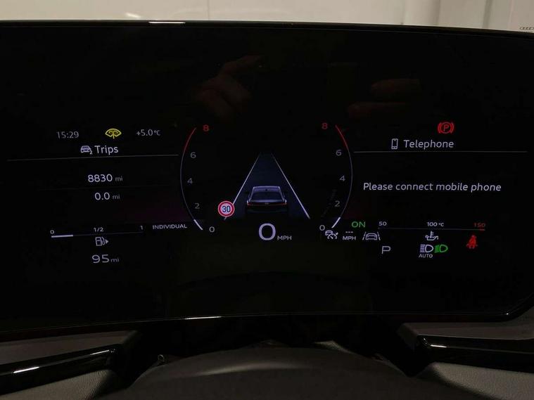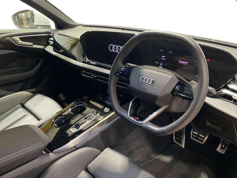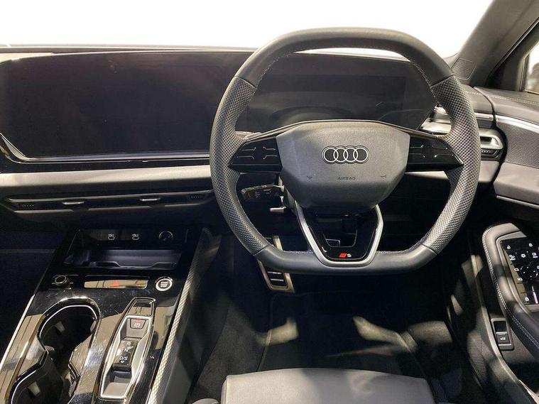 Adaptive cruise control, Advanced driver attention and fatigue montior, Audi application store, Audi assistant, Audi connect emergency call and service, Audi drive select, Audi smartphone interface, Audi virtual cockpit plus with 11.9" OLED colour display, Automatic start/stop system with coasting functionality, Camera based traffic sign recognition, Intersection assist, Lane departure warning, MMI navigation plus with high resolution 14.5" OLED touchscreen colour display, Park assist plus, Parking system plus with 360 display, Progressive steering with servotronic, Rear view camera, Swerve assist and turn assist, Traffic sign based speed limiter, Sports suspension lowered by 20mm, 2 USB-C ports in both the front and rear, Audi sound system impressive sound with 10 loudspeakers including centre speaker and subwoofer, 6-channel amplifier with a total output of 180 watts, DAB digital radio reception, Smartphone compartment with wireless charging, Aluminium window trims, Auto dimming rear view mirror, Body colour door mirrors, Door mirrors - electrically adjustable, heated, folding and auto dimming on both sides, Front and rear electric windows, Front door sill trims with aluminium inlays, illuminated with 'S' logo, High beam assist, LED headlights Plus incl. digital daytime running lights, turning light, all-weather light, motorway light, manouevring light and intersection light, LED rear lights pro incl. dynamic rear indicators and illuminated light strip with animated coming and leaving home function, LED third brake light, Privacy glass, Rear and side windows with heat insulating glass, Rear boot, Rear side wing doors, S Line badges on the front wings, S line bumpers, radiator grille and diffuser in phantom black and diffuser insert in matt anthracite, White rhombus logo projection light in exterior mirrors, Windscreen with acoustic glazing, 3 rear headrests, 3 seat rear bench, 3 spoke leather steering wheel with multi-function buttons with touch control, flattened on top and bottom, with S badging and contrast stitching, 3-zone automatic climate control, 40:20:40 split folding rear seat bench with centre armrest and cup holders, Comfort front centre armrest, Front and rear floor mats, Front seats with manual adjustment for position and 4-way electric lumbar support, Front sport seats with integrated headrest and S embossed logo, Headlining in black cloth, Heated front seats, i-Size child seat mounting on the front passenger side and outer rear seats, i-Size and top tether on the outer rear seats, Luggage compartment lid, electrically opening and closing, Manual steering column height and depth adjustment, Single front passenger seat, Stainless steel pedals and footrest, Steering wheel grips in perforated leather and shift paddles, Ambient lighting package plus - A5, 3x3 point rear seat belts, Driver airbag, Electric child safety locks, First aid kit with warning triangle and vests, Front emergency brake assist, Front passenger airbag, Front passenger airbag deactivation, Front side airbags with head airbag system and front interaction airbag, Hill hold assist, Seat belt monitoring with rear seat occupant reminder, Tyre pressure loss indicator, Anti theft alarm, Anti-theft wheel bolts, Keyless Go, Accent surfaces and control buttons in gloss black, Black dashboard with contrast stitching, Inlays in matt brushed aluminium with linear embossing, anthracite, Softwrap in leatherette with contrast stitching, Upper and lower interior elements in leatherette, Tyre repair kit,