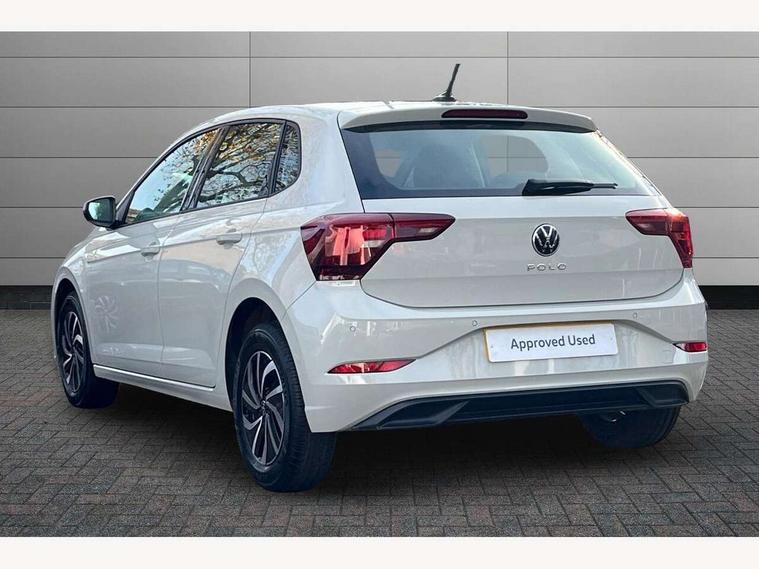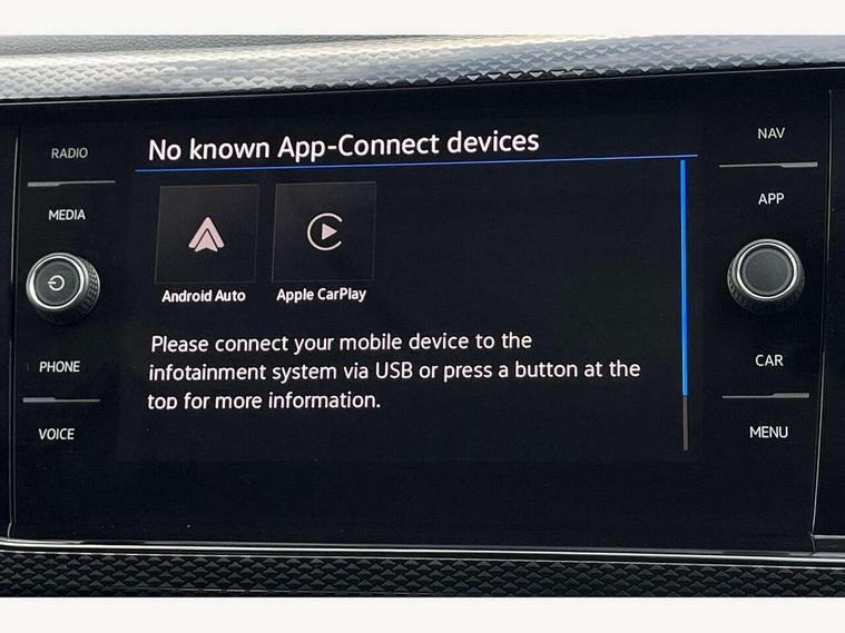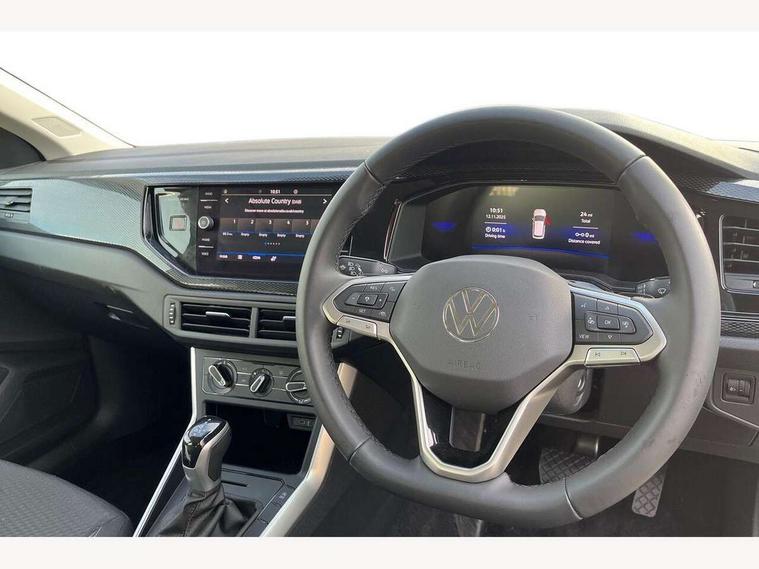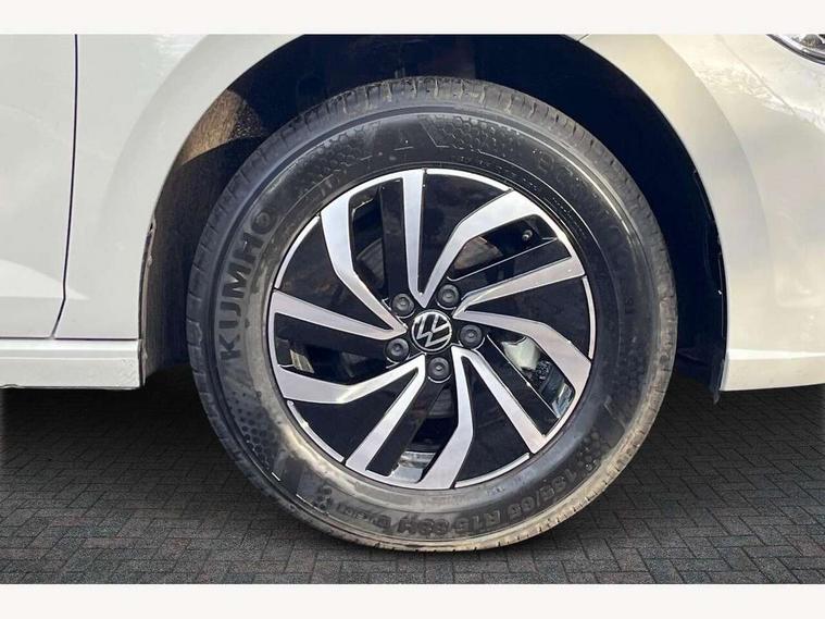 Adaptive cruise control with follow-to-stop and speed limiter, Advanced driver attention and drowsiness monitor, Bluetooth mobile phone interface, Dynamic road sign display, Emergency call service, Power assisted speed sensitive steering, Preparation for navigation system with media and internet package, Preparation for We connect and We connect plus, Speedo and rev counter, electronic odometer, trip, service interval display and exterior temperature gauge, Standard rear axle, Travel Assist - Lane keeping system and traffic jam assist, Travel assist including emergency assist, Trip computer, Warning signal and warning light for front and rear seatbelts not fastened, Washer fluid level indicator, Wireless app connect, Front wheel drive, Rear shock absorpion, Start-stop system with battery regeneration (recuperation - energy recovery during braking), DAB Digital radio, Diversity antenna for FM reception, Automatic dimming interior rear view mirror, Automatic headlight control with LED separate daytime running lights with coming/leaving home function, Body colour bumpers with chrome inserts, Body colour door handles, Body colour door mirrors, Electric front windows, Engine badge deletion, Headlight range adjustment, Heat insulating and laminated safety glass windshield, Heat insulating darkened glass in side and rear windows, Heat insulating glass windscreen, LED Headlights, LED rear combination lamps, Power folding adjustable/heated exterior mirrors and front passenger exterior mirror lowering function, Rain sensor, Rear electric windows, Rear fog light, Rear side wing doors, Rear windscreen washer and wiper with interval delay, Third brake light, 12V power socket in centre console, 2 front and 2 rear reading lights with switch off delay and dimmer, 2 USB-C ports in the front, 2 USB-C charging sockets on the center console in the rear, 3 rear head restraints, 60/40 split folding rear seat and rear seat bench not split, Ceramique roof lining, Chrome plated radiator grille inserts, air vent surrounds and light switch surrounds, Door and side trim panel, Driver and front passenger seat height adjustment, Driver/passenger sunvisors with illuminated vanity mirrors, Front centre armrest, Front seat backrest storage pockets, Front standard seats, Handbrake lever handle in leather, Hartley/Thomas cloth upholstery, Headliner in recycled material, Isofix child seat preparation easy-fit (for two outer rear seats, and front passenger seat) compatible with I-size, Leather trimmed gear knob, Luggage compartment cover, Luggage compartment lighting, Removable luggage compartment floor, Single front passenger seat, Standard climatic zones, Standard pedal cluster, Three spoke leather wrapped multifunction steering wheel with shifting paddles, Light and vision pack - Polo, 3 point height adj front seatbelts + pretensioners, 3x3 point rear seatbelts, ABS, Driver and front passenger airbag with front passenger airbag deactivation, Drivers and front passengers safety optimised head restraints, ESC (Electronic stability control) + EDL (Electronic Differntial lock) and ASR (Traction control), Extended and predictive pedestrian/ cyclist protection, Front assist with autonomous emergency braking (for Adaptive Cruise Control ACC up to 130 mph), Front curtain and side airbags with center airbag, Front disc brakes, Hill hold control, Manual child lock in rear doors, Rear drum brakes, Single tone horn, Tyre pressure loss indicator, Alarm with interior protection, Anti-theft alarm system with interior monitoring, backup horn, and towing protection, Anti-theft wheel bolts, Electronic engine immobiliser, Lava stone black gloss/matt decorative inserts in dash and front door panels, Low rolling resistance tyres,