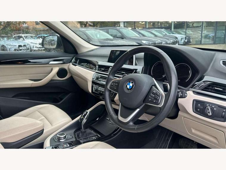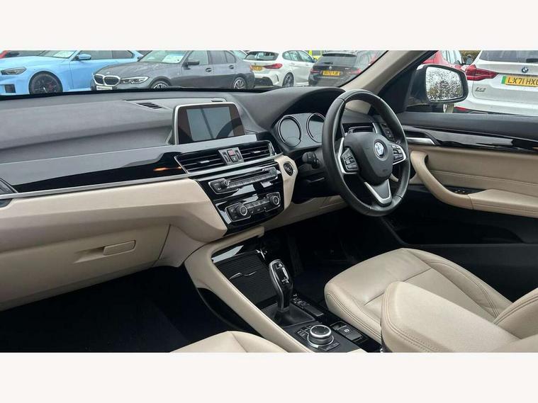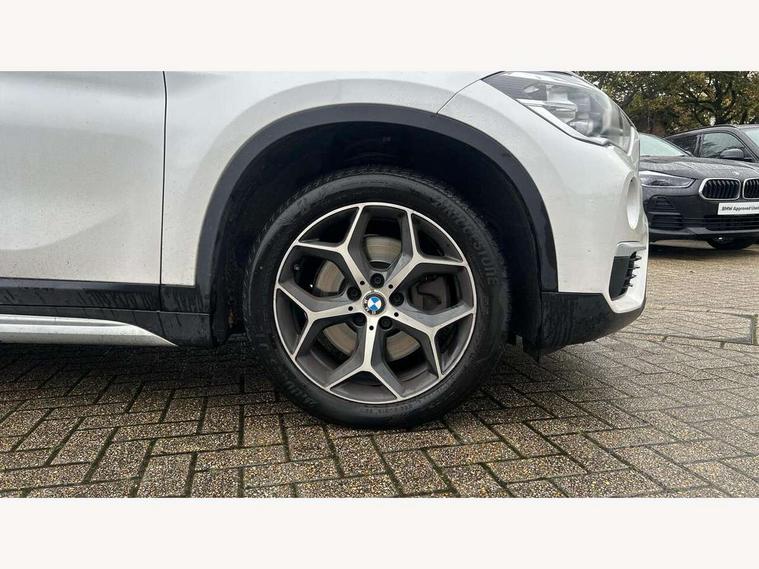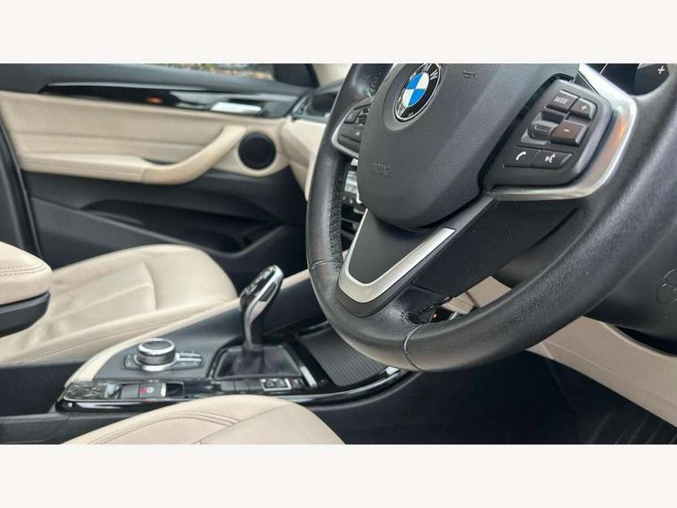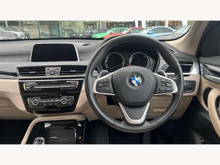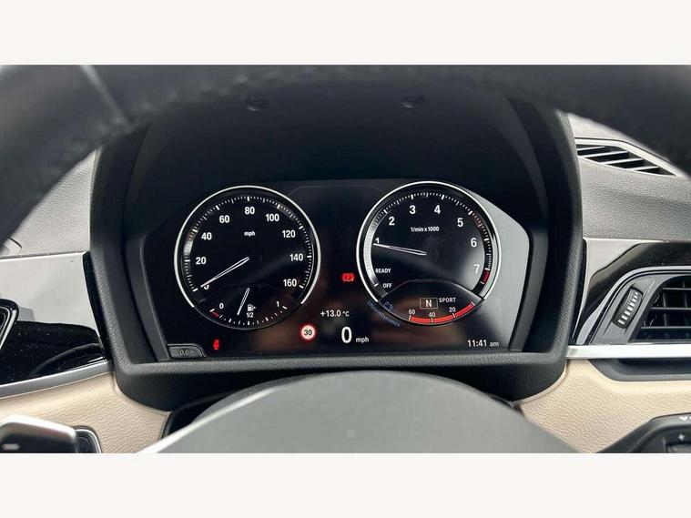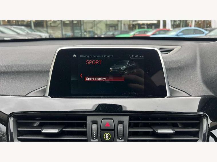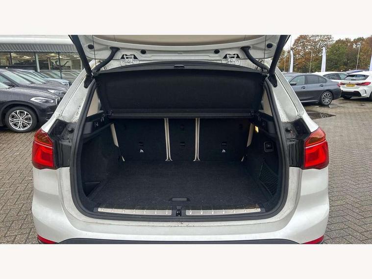 Active Guard incl speed limiting and lane departure functions with auto steering, and front collision warning with brake intervention, Ambient temperature display, Attentiveness assist, Automatic tailgate opening, BMW Online services, BMW remote services, BMW Teleservices, Brake pad wear indicator in front and rear, Lights on warning, Lights on warning by audio warning signal when ignition is switched off, On board computer, Outside temperature gauge, Personal Profile - automatic lock when driving away selectable, Service interval indicator, Servotronic PAS, Speed limiter, Stop/start button, Tyre puncture warning system, Drive performance control with ECO PRO comfort + sport mode, Electronic differential lock, High precision injection, Performance Control, 2 USB Power socket for rear seat, BMW professional radio with CD player, DAB Digital radio, USB connection located in centre console, USB/audio interface, Adaptive LED Headlights, Adjustable headlights, Body colour bumpers, Body colour door handles, Body colour door mirrors, Chrome tailpipe finisher, Clear lenses direction indicator lights, Direction indicator side lights integrated exterior mirrors, Dynamic brake lights, Electrically adjustable and heated door mirrors, Exclusive door sill finishers, Fingertip control / anti-trap function on electric window, Follow me home headlights, Front and rear electric windows, Front fog lights, Halogen headlights, Headlight beam throw control, Heat insulating tinted glass, Heated windscreen washer jets, High level third brake light, LED daytime running lights, Lightweight engineering, Rain sensor including auto headlights activation, Rear fog lights, Rear window wash/wipe, Reversing light in rear light cluster, Twin chrome exhaust tailpipes x2, Visible VIN plate, Welcome home function, 12v power point in centre console, 3 rear headrests, 3 spoke sport leather steering wheel, 4 grab handles, Black door sill finishers with BMW designation, Boot light, Centre console with cupholders, Dakota leather upholstery with perforation and contrast stitching, Driver and front passenger heated seats, Driver/passenger sunvisors with ticket holders, Drivers folding storage compartment, Dual zone automatic air conditioning, Extended storage, Front and rear door armrests, Front centre armrest/sliding cover, Front passenger isofix child seat attachment, Front/rear adjustable head restraints, Illuminated glovebox, Isofix rear child seat preparation, Leather gearknob/gaiter/handbrake grip, LED ambient lighting in door trim, Luggage area underfloor compartment, Luggage compartment lighting, Multifunction steering wheel, Rake/reach adjustable steering wheel, Rear coded belt buckles, Sliding/split/reclining 40/20/40 rear seat with 60/40 split rear seat base, Steering wheel gearshift paddles, Velour floor carpets, Extended storage package - X1, 3 rear 3 point seatbelts, ABS/EBD, Audio/visual collision warning system, Automatic Stability Control (ASC), Battery safety cut-off, BMW emergency call, Brake drying, Brake energy regeneration, Braking readiness, Collision mitigation braking system, Cornering brake control (CBC), Crash Sensor - activates hazard/interior lighting + unlocks doors, Driver/Front Passenger airbags, Driver/front passenger side airbags, Dynamic brake control, Dynamic stability control + (DSC+), Dynamic Traction Control - DTC, Electronic parking brake, Front and rear head airbags, Front passenger airbag deactivation, Front seatbelt force limiters, Front ventilated disc brakes, Hill start assist, Pyrotechnically pre-tensioned front seatbelts, Rear disc brakes, Rear door child safety locks, Seatbelt warning, Twin horns, Tyre pressure monitor, Warning triangle and first aid kit, Auto door lock when driving, Central locking including boot and fuel flap with deadlocks, Engine immobiliser, Locking wheel nuts, Remote control Thatcham category 1 alarm, High gloss black centre console, Low rolling resistance tyres,