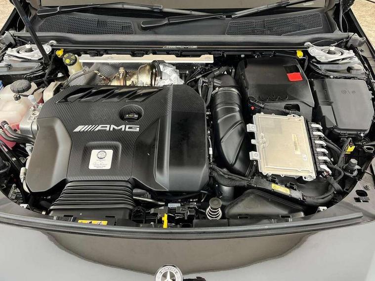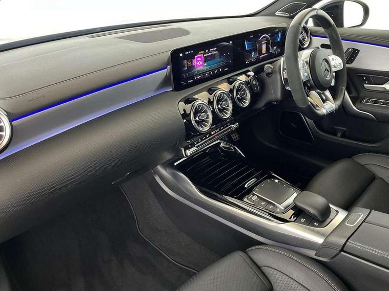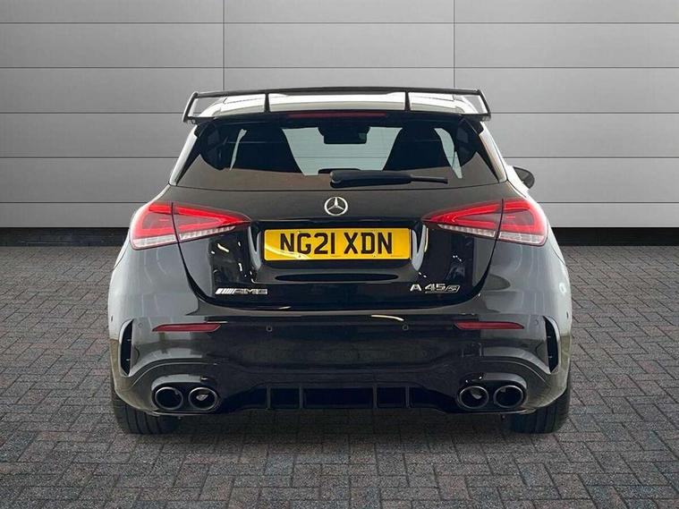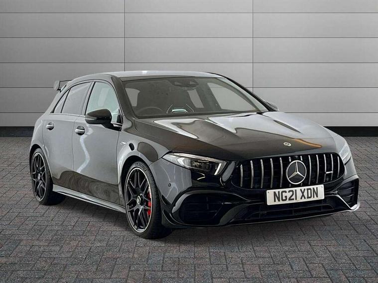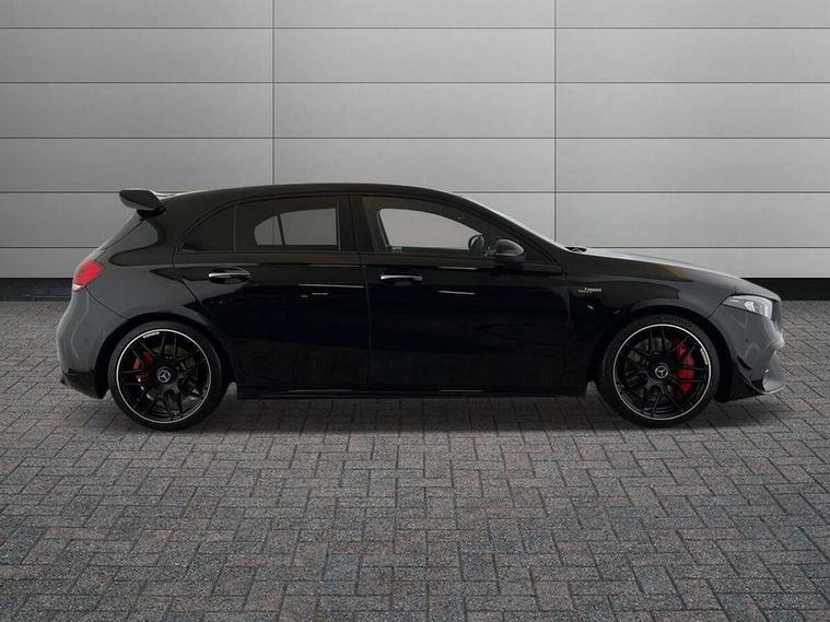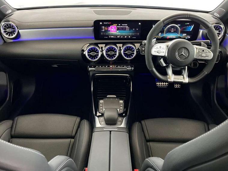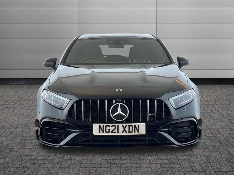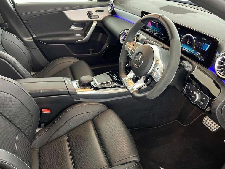 10.25 inch touchscreen central media display with AMG specific, AMG start up logo, visualisation of the AMG drive programs, vehicle and engine data, 10.25" Digital instrument cluster display screen, 180 degree rear view camera with parking guidelines, Active parking assist with visual and audible warning of detected obstacles, AMG DYNAMIC SELECT with driving programs (Slippery, Comfort, Sport, Sport+, Individual and Race) including drift mode via steering wheel shift paddles, Attention assist, Brake pad wear indicator warning light, Car wash mode, Direct steering, Dual bluetooth interfaces, ECO start/stop function, Fluid level warning indicator for fuel, oil, coolant and washer fluid, Hard-disk navigation, Hey Mercedes Voice activation, Lamp failure indicator, Lane keeping system, Mercedes me connect including emergency call system, accident recovery, breakdown and maintenance management, Mercedes me remote services, Outside temperature gauge, Owners manual in English, Pre-installation for private car sharing, Preinstallation for Mercedes Benz link, Service indicator (ASSYST), Smartphone integration with Apple CarPlay and Android auto, Traffic sign assist, Trip computer, Ultrasonic sensors positioned in the front and rear bumpers, AMG performance 4MATIC+ with torque control, Rear axle multi-link, 2 USB ports (type C) in rear stowage compartment and one in front of center console, DAB Digital radio, MBUX multimedia system with DAB digital radio and touchpad including satellite navigation, Mercedes-Benz sound system - 100W, 4 Electric Front and Rear windows, Adaptive brake lights, AMG A45 S bodystyling -rear apron, four vertical fins, side sill panels, roof spoiler lip, specific front apron, diffuser look and S label on boot lid, AMG bodystyling - Front apron with splitter in chrome, rear apron with chrome trim and chrome visible trim elements in tailpipe, AMG real performance exhaust sound system, AMG specific radiator grille in high gloss chrome with AMG lettering, Black weather strip, Body colour bumpers, Body colour door handles, Body colour side skirt, Electric adjustable and heated door mirrors with integrated LED side indicators, Headlamp assist automatic headlamp activation, Heated glass rear windscreen + timer control, High gloss black beltline, LED High level third brake light, LED tail lamp, Multibeam LED with adaptive highbeam assist plus, Panoramic sliding sunroof, Privacy glass, Radio aerial, Rain sensing windscreen wipers with two sensitivity settings, Rear fog lights, Rear wiper, Two round twin tailpipe trim elements each measuring 90 mm in diameter and AMG lettering plus ribbing on the inside of the pipe, Valve control dependent on drive program, Wider wheel arches for AMG wheels, Window line trim strip in high gloss black, 3 Spoke flattened lower section sporty design AMG Performance steering wheel in nappa leather/Dinamic microfibre, 40:20:40 split folding rear seats, AMG brushed stainless steel sports pedals with rubber studs, AMG centre console finished with trim in silver chrome, AMG floor mats, AMG performance seats, AMG sporty centre console with raised front section and integral control switched for manual transmission mode, AMG Steering wheel touch control buttons, Auto Mercedes-Benz child seat recognition sensor, Black air vents with surround in silver chrome, Black roof lining, Front centre armrest with storage compartment, Front seat cushion length adjustment, Front seat head restraints, Heated front seats, Height/reach adjustable steering column, Illuminated AMG front door sills with changeable cover, Interior lighting - 64 colour Ambient lighting, Interior mirror with reading lamps in black and frameless, Rear armrest with 2 cupholders, Rear head restraints, Seat occupancy sensor for front passenger seat, Silver coloured aluminium gear shift paddles on steering wheel, Stowage compartment in centre console with retractable cover, Sunvisors with illuminated vanity mirrors, Touchpad on center console, Twin front cupholders, Two zone thermotronic luxury automatic climate control, Aerodynamic pack - A Class, AMG Driver's pack - A Class, AMG night pack - A Class, AMG performance high-end seat pack - A Class, Light and sight pack - A Class, Mirror package - A Class, Multi-contour seat pack - A Class, Seat comfort pack - A Class, 3 rear 3 point seatbelts, 3 stage electronic stability programme, ABS with Brake Assist, Active bonnet, Adaptive brake assist with hold function and hill start assist, AMG high performance brake system with red painted brake callipers and black AMG lettering at the front, ventilated and perforated brake discs, Black seatbelts, Bonnet with power domes, Childproof locks manually operated for rear doors and electrically operated for rear power windows, Crash responsive emergency lighting, Driver and passenger head and side airbags, Drivers knee airbag, Dual stage driver/passenger airbags, Electronic parking brake, ESP curve dynamic assist, ESP with ASR, Front and rear seatbelt reminder, ISOFIX and top tether child seat fixing points in two outer rear seats, Tyre pressure monitoring system, Warning triangle and first aid kit, Window airbags, Alarm system/interior protection/immobiliser, Keyless entry lock/unlock, Keyless Go, Remote central locking and crash sensor with emergency opening function, Urban guard vehicle protection system with immobiliser and interior protection, Light aluminium with longitudinal grain interior trim, 19" AMG forged cross spoke design alloy wheels, Summer tyres, Tirefit sealant kit, Wheel arches with flared AMG wings with TURBO 4MATIC+ lettering,