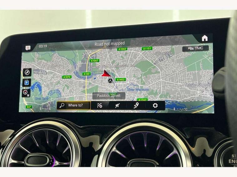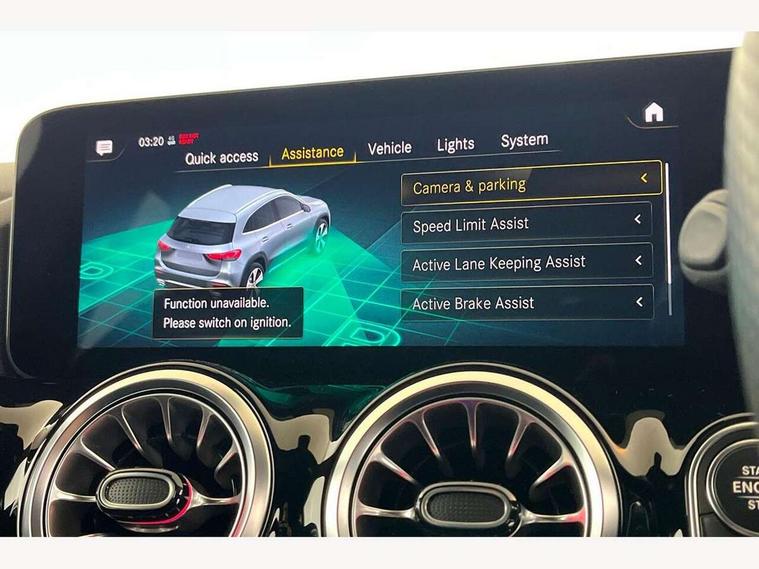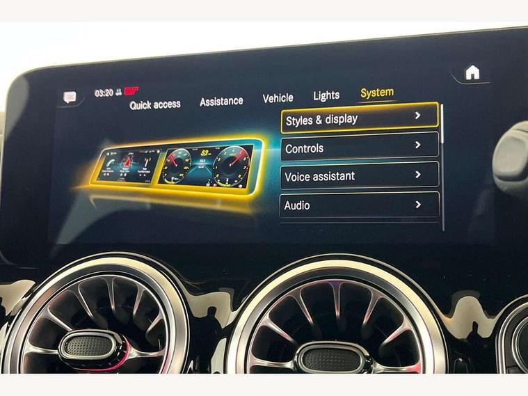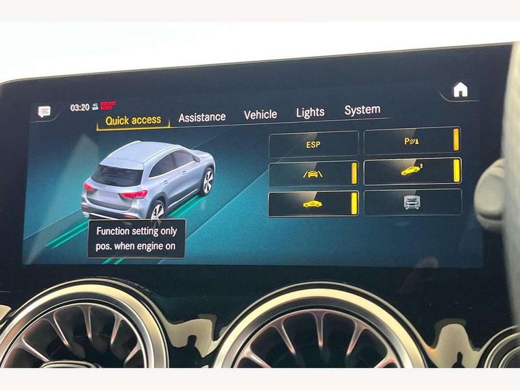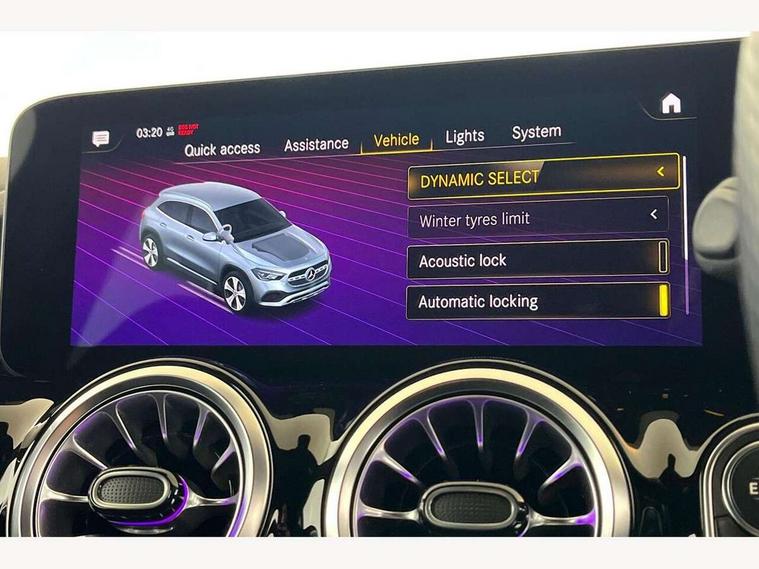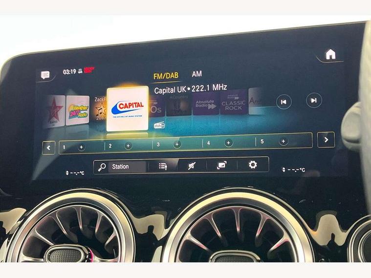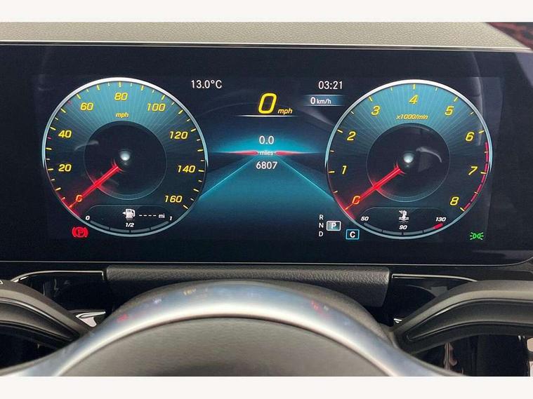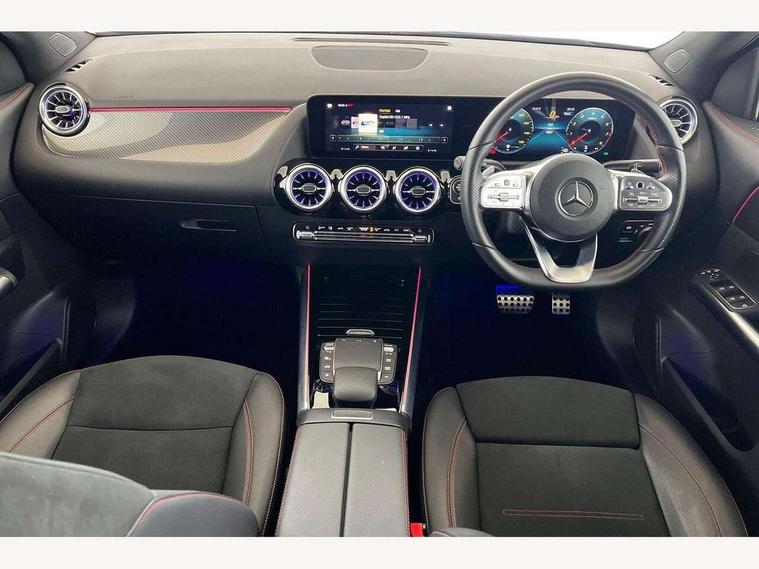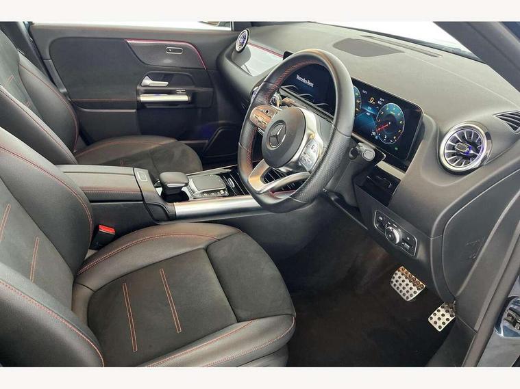 10.25 inch touchscreen central media display, 10.25" Digital instrument cluster display screen, Active lane keeping assist, Attention assist, Cruise control + speed limiter, Direct steering, DYNAMIC SELECT with a choice of driving modes (ECO, Comfort, Sport and Individual), ECO start/stop function, Fluid level warning indicator for fuel, oil, coolant and washer fluid, Hard-disk navigation, Hey Mercedes Voice activation, Lamp failure indicator, Mercedes me connect including emergency call system, accident recovery, breakdown and maintenance management, Mercedes me remote services, Multi function trip computer, Outside temperature gauge, Owners manual and service booklet in English, Pre-installation of private car share, Radio aerial integrated into front and rear windshields, Service indicator (ASSYST), Smartphone integration with Apple CarPlay and Android auto, Speed limit assist, Status display for rear seat belts in instrument cluster, Lowered comfort suspension, Rear axle multi-link, 2 USB ports (type C) in rear stowage compartment and one in front of center console, Bluetooth connectivity including audio streaming, DAB Digital radio, MBUX multimedia system, Media interface, Mercedes-Benz (225w) sound system with 10 speakers, Adaptive brake lights, Aerial for GPS, Aluminium roof rails, AMG front and rear apron, AMG specific/dual flow exhaust pipes in chrome (non-functional), Automatic headlamp activation, Beltline strips and weather strip in chrome, Black grained claddings with chrome parts, Body colour bumpers, Body colour door mirrors, Body coloured door handles with chrome insert for keyless entry, Car wash function, Dark privacy glass from B-pillar backwards, Electric front windows, Electric rear windows, Electrically adjustable and heated door mirrors with integrated LED indicators, Heated glass rear windscreen + timer control, Heated windscreen wash system, Interior mirror with black reading lamps and frameless, LED high performance headlamps with integrated LED daytime running lights, LED tail lights in two piece design, LED third brake light, Matt titanium grey front and rear apron trim, Pre-installation for trailer coupling, Rain sensor windscreen wipers, Rear fog lights, Rear side wing doors, Rear wiper, Roof spoiler, Single lamella raditor grille with chrome dotted diamond grille and inlay, 12V power socket in centre console, 3 seat bench in 2nd row, 3 spoke multifunction sports steering wheel in nappa leather with flattened bottom and perforated grip area, 40:20:40 split folding rear seat backrests, Adjustable head restraints, Air conditioning - Two zone thermotronic luxury automatic climate control with display, Ambient lighting in front headrests, AMG floor mats with AMG lettering in front, Artico man-made leather/Microfibre Dinamica upholstery with red contrast stitching, Auto Mercedes-Benz child seat recognition sensor, Black roof lining, Brushed door pulls in silver chrome, Courtesy light in boot, Front centre armrest with stowage, Galvanished gear shift paddles on steering wheel, Heated front seats, illuminated door sills with changeable cover, Illuminated glovebox, Interior lighting - 64 colour Ambient lighting, Leather trimmed gearknob, Luggage net on driver/front passenger seat backrest, Manually height and reach adjustable steering column, Multi-gesture touchpad control on center console, Single front passenger seat, Sports pedals in brushed stainless steel with black rubber studs, Sports seats, Stowage compartment in centre console, Stowage compartment with retractable cover, Sunvisors with illuminated vanity mirrors, Twin front cup holders, Two outer rear seat isofix and top tether child seat fixing points, AMG body styling pack - GLA, Comfort seat pack - GLA Class, Interior lighting with light and sight pack - GLA, Load compartment pack - GLA, Mirror pack - GLA Class, Parking pack - GLA, 3 rear 3 point seatbelts, ABS with Brake Assist, Active bonnet pedestrain safety measure which detects an impact and raises bonnet by 65mm, Active brake assist includes forward collision warning system with autonomous braking, Adaptive brake assist with hold function and hill start assist, Bonnet with power domes, Brake pad wear warning indicator, Childproof locks manually operated for rear doors and electrically operated for rear power windows, Crash responsive emergency lighting, Driver and passenger head and side airbags, Drivers knee airbag, Dual stage driver/passenger airbags, Electronic parking brake, ESP curve dynamic assist, ESP with ASR, Front and rear seatbelt reminder, Front brake callipers with Mercedes Benz logo lettering on front, Front brake discs internally ventilated and perforated, Front passenger seat occupancy sensor, Tyre pressure monitoring system, Warning triangle and first aid kit, Window airbags, Alarm system with immobiliser and interior protection -Thatcham category 1, Keyless Go starting function, Remote central locking and crash sensor with emergency opening function, Urban guard vehicle protection, Vehicle key with decorative surround in chrome, Carbon structure trim, Chrome air vent surrounds, 19" AMG 5 twin spoke light alloy wheels aerodynamically optimised painted in tantalite grey with a high sheen finish, Summer tyres, Tirefit tyre sealant kit,