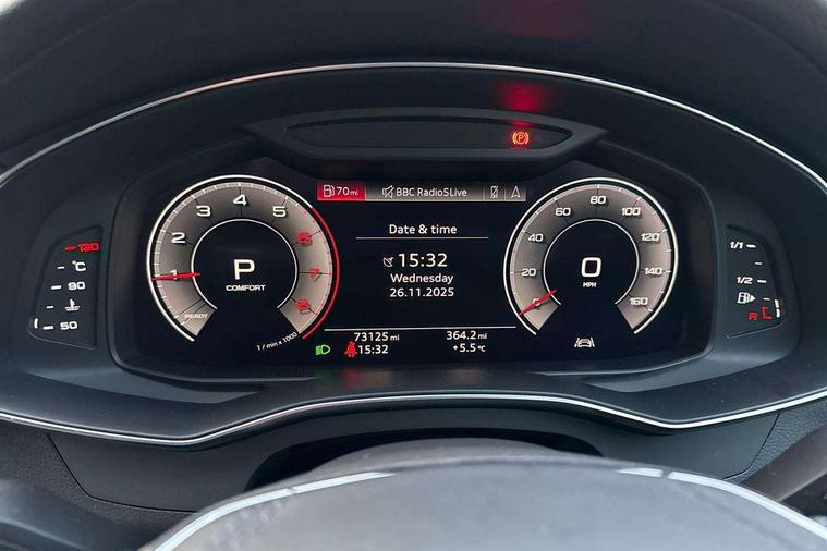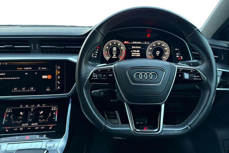 10.1" and 8.6" Dual colour touchscreens, Audi connect, Audi drive select, Audi phone box with wireless charging, Audi smartphone interface, Automatic start/stop system, Colour driver's information system display, Electric boot release, Lane departure warning system, MMI navigation plus with MMI touch, Operating buttons in black, glass look with haptic feedback, Power tailgate, Service indicator, Virtual cockpit, Voice control system, Audi music interface, Auxiliary input socket, DAB digital radio module, USB/iPod connection, Acoustic windscreen, Auto dimming rear view mirror, Black high gloss front air inlet, Body coloured bumpers, Body coloured door mirrors, Coming/leaving home lighting function, Front and rear electric windows, Headlight washers, Heat insulating glass, High gloss black grille with chrome surround, LED rear lights, Rain and light sensors, Retractable rear boot spoiler, S line badge on front grille, S Line Black rear diffuser with chrome inlays, S line rear grille, S Line side skirts, Signature LED daytime running lights, Towbar preparation, 4-way electric lumbar support, 40:20:40 split folding rear seats, Black cloth headlining, Electrically adjustable front seats - driver seat with memory, Floor mats with contrast stitching, Front and rear headrests, Front centre armrest, Height/reach adjust steering wheel, ISOFIX child seat mounting and Top Tether with front passenger airbag deactivation, Jack and tool kit, Leather gear knob, Leatherette upper dashboard and door shoulders, Luggage compartment, Rear centre armrest, Stainless steel pedals and foot rest, Sunvisors with illuminated vanity mirrors, LED interior ambient lighting pack - A7, Non smoking pack - A7, 3 point seatbelts on all seats, ABS, ASR traction control, Driver and passenger airbags, EDL, Electromechanical parking brake, Electronic stability control, Head airbags, Hill hold assist, Seatbelt warning, Tyre pressure warning, Warning triangle and first aid kit, Anti theft alarm, Anti-theft wheel bolts, Immobiliser, Keyless Start, Preparation for tracking system, Remote central locking, Tow away protection, Space saver spare wheel,