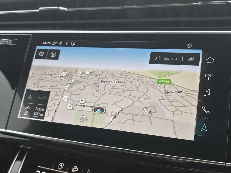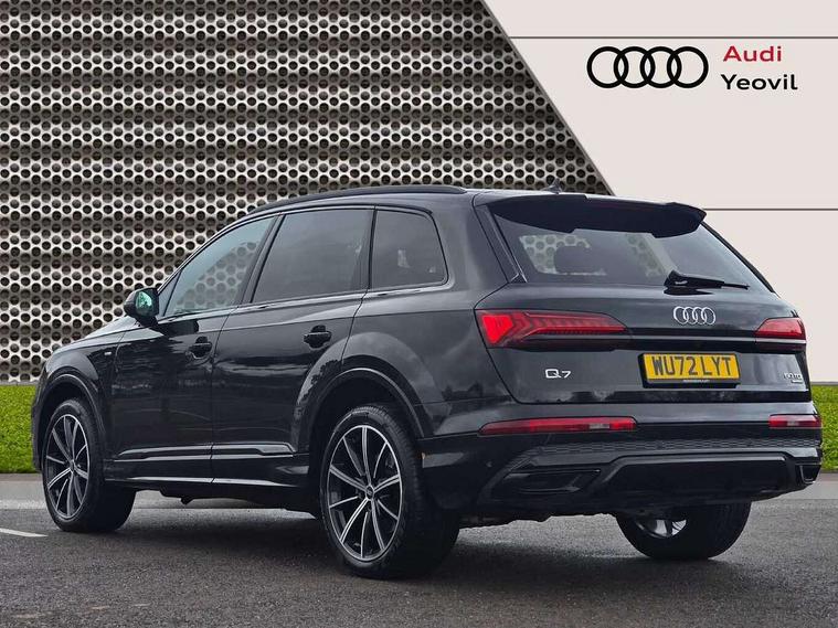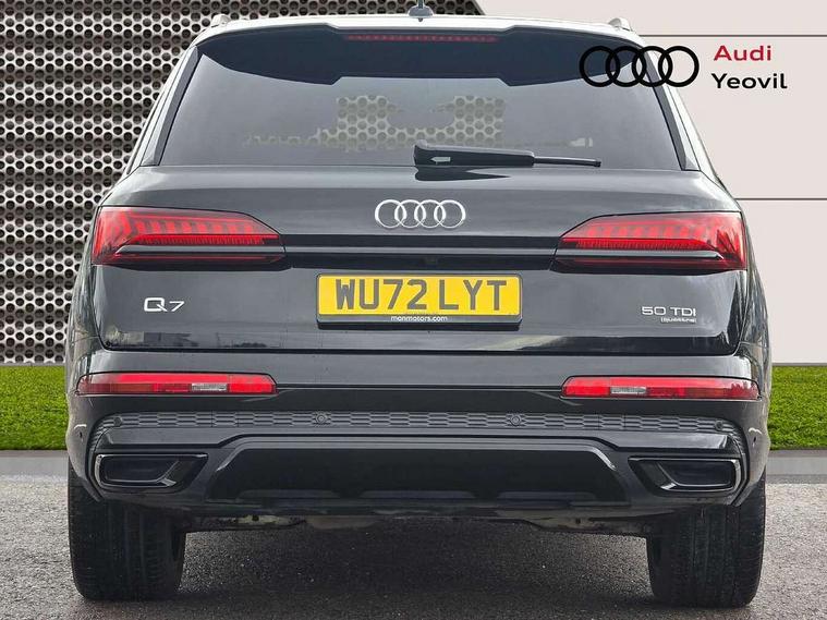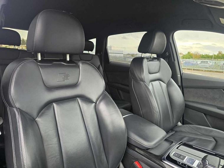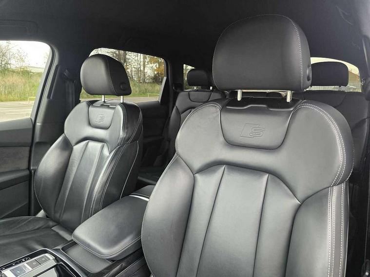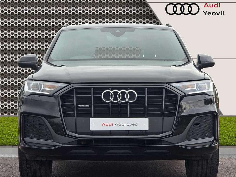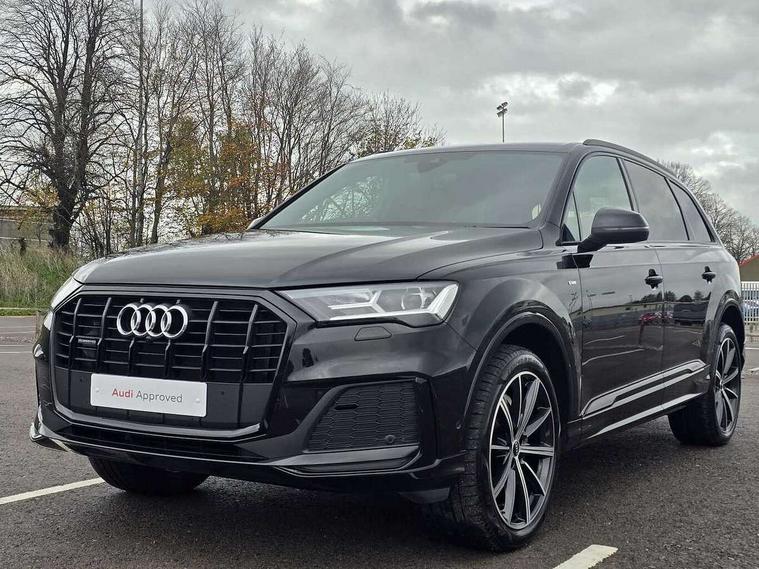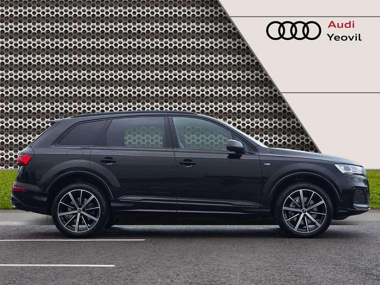 Audi connect safety and service (e-call), Audi connect with Amazon Alexa Integration, Audi drive select (Auto, Comfort, Dynamic, Efficiency, Individual, Off-road and All road), Bluetooth interface, Camera based traffic sign recognition, Electromechanical steering, MMI navigation plus with MMI touch screens includes 10.1" and 8.6" screens with haptic feedback, Natural voice recognition, Parking system plus with 360 degree display (front, rear and side sensors) - acoustic and visual park assist system, Power operated tailgate, Rear view camera, Smartphone interface includes wireless Apple carplay/Android Auto, Start/stop system, 48V Mild hybrid technology, Adaptive air sports suspension, Quattro all wheel drive with self locking centre differential, Audi music interface - front 2 USB-C ports with charger and data functions, Audi sound system with 6 channel amplifier, 180 watt amplifying capacity and 10 loudspeakers including subwoofer, DAB digital radio module, 3rd brake light, Audi matrix LED headlights with dynamic front and rear indicators, Auto dimming frameless rear view mirror, Black roof rails, Bumpers in contrast paint scandium grey finish includes door trim and wheel arch trim strips, inlays in door strip contain quattro embossing, Electrically adj heated/folding + automatically dimming exterior mirrors with memory + automatic kerb side function for passenger side exterior mirror, Heat insulating glass in windshield, Integrated LED indications in door mirrors, LED daytime running lights, LED rear tail lights, Privacy glass - dark tinted rear and rear side windows from B-pillar backwards, Rear side wing doors, Rear wiper, 2 seat bench in 3rd row, 3 seat bench in 2nd row, 4 zone deluxe automatic climate control, 7 seat layout with ISOFIX points for the front passenger seat and rear passenger seat, Black cloth headlining, Comfort front centre armrest, Electric adjustable front seat with 4 way lumbar support, driver memory functionality, Folding rear seats, Front head restraints, Front/rear floor mats, Heated front seats, Illuminated door sill trims with S logo, LED interior ambient lighting, Luggage compartment cover, Luggage compartment sill protection in stainless steel, Rear head restraints, Single front passenger seat, Stainless steel pedals, Sunvisors with illuminated vanity mirrors, Titanium black styling pack - Q7/SQ7, 3 point seatbelts on all rear seats, Audi pre sense front, Child locks on rear doors, Driver and front passenger, front side and curtain airbags, Electromechanical parking brake, Electronic Stabilisation Control (ESC) including ABS, ASR and EDL, Extended pedestrian protection measures, Hill hold assist, Seatbelt monitoring, Tyre pressure loss indicator, Warning triangle and first aid kit, Anti theft alarm, Anti-theft wheel bolts and wheel loosening detection, Keyless Go, Remote central locking, Polished oak trim with grey finish inlay, Tool kit, Tyre repair kit,