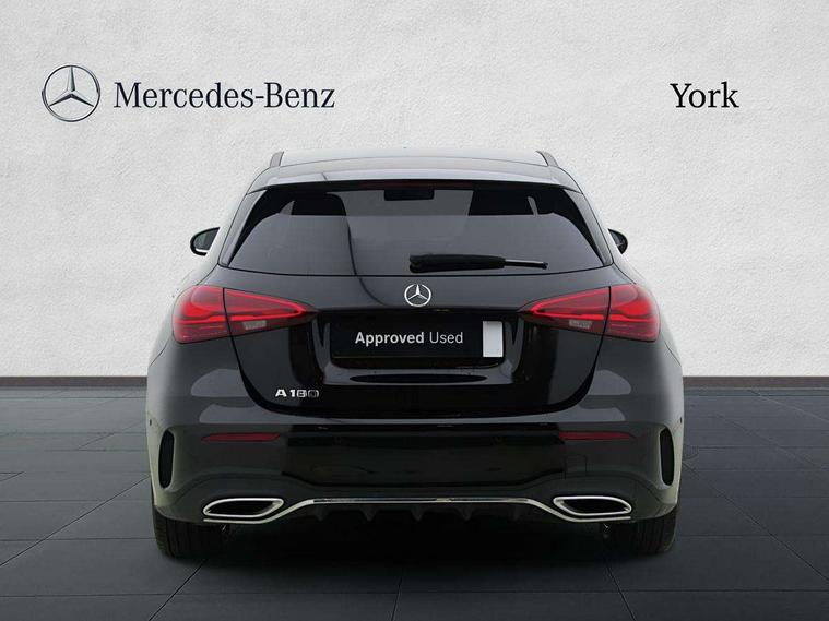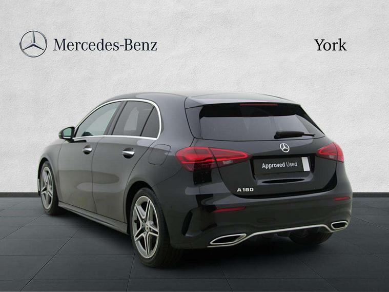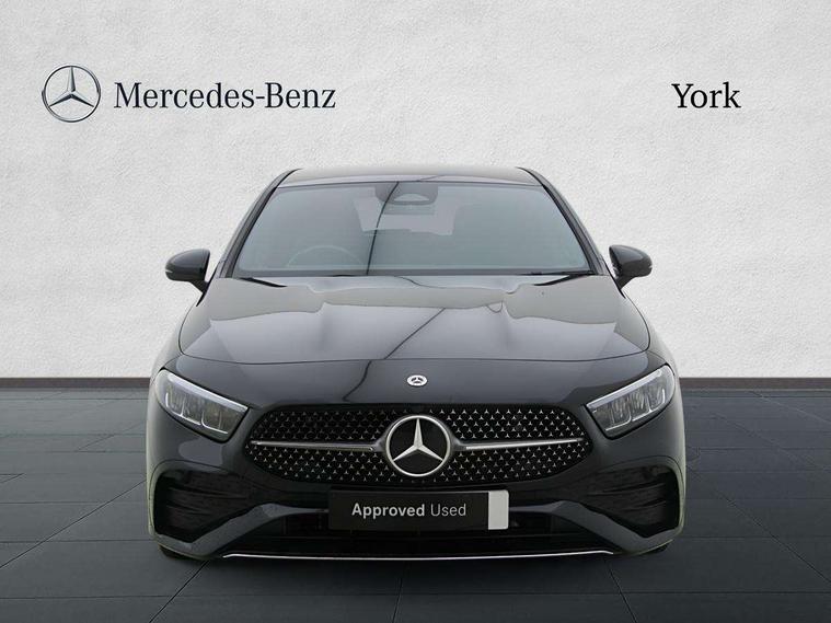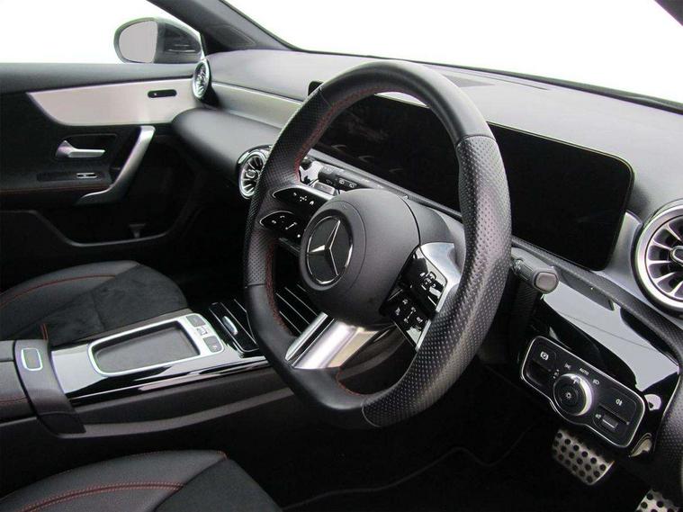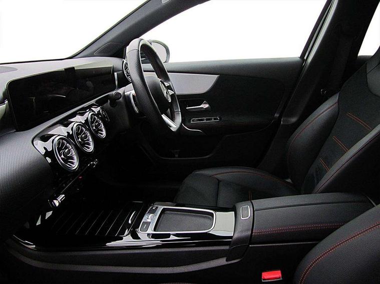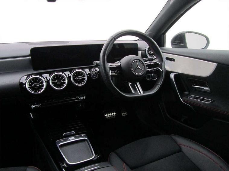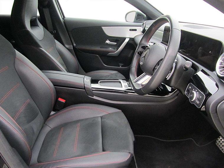 10.25 inch touchscreen central media display, 10.25" Digital instrument cluster display screen, Attention assist, Brake pad wear indicator warning light, Car wash mode, Cruise control + speed limiter, Direct steering, Direction indicators with lane change function, Dual bluetooth interfaces, DYNAMIC SELECT with a choice of driving modes (ECO, Comfort, Sport and Individual), Easy pack tailgate hands-free access, ECO start/stop function, Engine start/stop button, Fluid level warning indicator for fuel, oil, coolant and washer fluid, Fluorescent jacket for driver, Hard-disk navigation, Hey Mercedes Voice activation, Lamp failure indicator, Lane keeping system, Mercedes me connect including emergency call system, accident recovery, breakdown and maintenance management, Mercedes me remote services, Outside temperature gauge, Owners manual in English, Pre-installation of private car share, Preinstallation for Mercedes Benz link, Remote boot closing, Service indicator (ASSYST), Smartphone integration with Apple CarPlay and Android auto, Speed limit assist, Speed sensitive power steering, Tailgate, Trip computer in multifunction display with current consumption indicator, Wireless charging, Lowered comfort suspension, DAB Digital radio, MBUX multimedia system, Mercedes Benz sound system (100 W) with 6 speakers, 4 Electric Front and Rear windows, Adaptive brake lights, AMG body styling - AMG front apron with front splitter and AMG rear apron and visible exhaust tailpipe trim elements, Body colour bumpers, Body colour door handles with chrome inserts, Body colour side skirt, Body coloured door mirrors, Chrome beltline strips, Diamond radiator grille with pins in fine star pattern, Electric adjustable and heated door mirrors with integrated LED side indicators, Exhaust system with 2 visible tailpipe trim elements and rear apron, Headlamp assist automatic headlamp activation, Heat insulating dark tinted rear and rear side windows, Heated glass rear windscreen + timer control, LED High level third brake light, LED High Performance headlamps including integral LED daytime running lamps and adaptive highbeam assist, LED tail lamp, Privacy glass, Radio aerial, Rain sensing windscreen wipers with two sensitivity settings, Rear fog lights, Rear side wing doors, Rear windscreen wiper, Window line trim strip in chrome, 3 seat bench in 2nd row, 3 Spoke flat bottom leather multi function steering wheel with perforated leather in grip area, 4 way lumbar support, 40:20:40 split folding rear seats, Air conditioning - One zone THERMATIC automatic climate control with automatically controlled air distribution, AMG floor mats, Automatic child seat recognition sensor, Black air vents with surround in silver chrome, Black roof lining, Brushed stainless steel sports pedals with rubber studs, Front centre armrest with stowage, Front door sills with Mercedes Benz lettering, Front seat backs luggage nets, Galvanished gear shift paddles on steering wheel, Heated front seats, Height/reach adjustable steering column, Interior lighting - 64 colour Ambient lighting, Interior mirror with reading lamps in black and frameless, Rear armrest with 2 cupholders, Seat occupancy sensor for front passenger seat, Single front passenger seat, Sports seats with integrated headrests, Stowage compartment in centre console with retractable cover, Sunvisors with illuminated vanity mirrors, Twin front cupholders, Light and sight pack - A Class, Mirror package - A Class, Parking pack - A Class, Seat comfort pack - A Class, USB pack plus - A Class, 3 rear 3 point seatbelts, ABS with Brake Assist, Active bonnet, Active brake assist includes forward collision warning system with autonomous braking, Adaptive brake assist with hold function and hill start assist, Black seatbelts, Bonnet with power domes, Childproof locks manually operated for rear doors and electrically operated for rear power windows, Crash responsive emergency lighting, Driver and passenger head and side airbags, Drivers knee airbag, Dual stage driver/passenger airbags, Electronic parking brake, ESP curve dynamic assist, ESP with ASR, Front and rear seatbelt reminder, ISOFIX and top tether child seat fixing points in two outer rear seats, Tyre pressure monitoring system, Warning triangle and first aid kit, Window airbags, Alarm system/interior protection/immobiliser, Guard 360 degree vehicle protection, Keyless entry lock/unlock, Keyless Go, Remote central locking and crash sensor with emergency opening function, Light longitudinal grain aluminium trim, 18" AMG 5 twin spoke light alloy wheels, aerodynamically optimised, painted in termolite grey with high sheen finish, Summer tyres, Tirefit sealant kit,