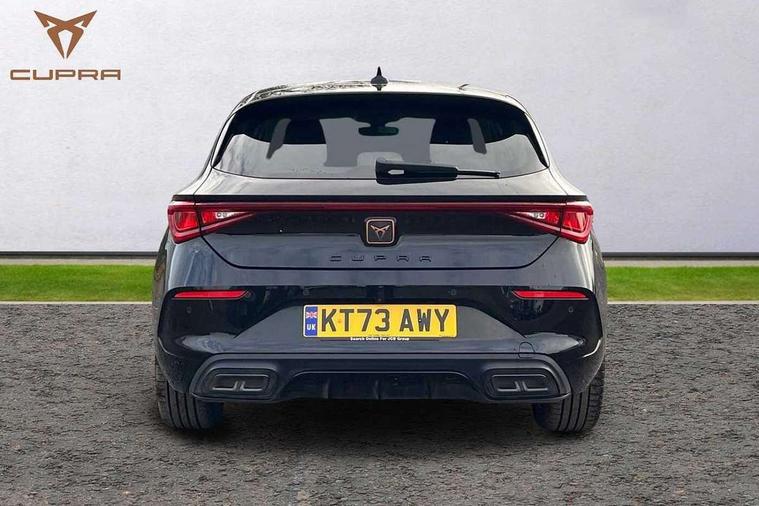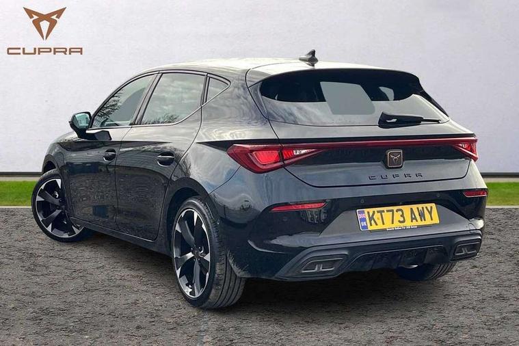 CUPRA drive profile selection with (Comfort/Sport/Individual), throttle response and gearshift mode, Digital cockpit, E-call, Electro mechanical speed sensitive power steering, Four x USB Type C ports (2 in front and 2 in rear), Front assist with forward collision warning braking reaction to vehicles, pedestrians and cyclists, Full link smartphone integration with Mirror Link, wireless Apple CarPlay and wired Google Android Auto, Lane assist, Lockable tailgate, Park assist (inc front/rear parking sensors), Rear view camera, RPM, trip computer, outside temp gauge, instrument light brightness, low fuel warning light, lights on reminder, gearshift indicator, Service interval indicator, Start/stop system with regenerative braking, Wireless phone charger, Sports suspension, Auxiliary input socket, Auto dimming rear view mirror, Body colour door handles, Body coloured bumpers, Cupra sports bumpers, Dark tinted rear windows, Electric front/rear windows, Electrically adjustable, heated and folding door mirrors, LED front fog lamps with cornering function, LED headlights with dynamic turn signals, tail lights, rear fog lights with rear coast to coast lighting, Rain sensing wipers, Rear diffuser with twin exhaust pipe on each side, Rear side wing doors, Rear wash/wipe, Separate daytime running light with automatic headlight control and coming home feature, Third brake light, 12v power supply in centre console, 3 seat bench in 2nd row, 5 headrests, 60/40 split rear bench seat with armrest, Ambient lighting with glovebox, footwell and single monocolour, Cupra Leather flat bottomed, perforated steering wheel, Driver/passenger manual seat height adjustment, Folding boot cover, Front and rear reading lights X 4, Front centre armrest, Front seats manual lumbar adjustment, Grey headlining, Height/reach adjust steering wheel, Illuminated interior front door sills, ISOFIX points in outer rear seats with top tether anchorage points, Jack and tool kit, PVC/Cloth upholstery with copper stitching, Single front passenger seat, Sports seats, Sunvisors with illuminated mirror, Three zone climate control, Media system plus with navigation pack - Leon Cupra, Safety and driving pack (M) - Cupra leon, 3 point seatbelts on all rear seats, ABS, Brake control system - ESC and brake booster, Child proof door locks, Cupra black brake calipers, Driver and front passenger airbags with front passenger airbag de-activation, front side and curtain airbags, Electronic parking brake, Extended safety system - seat belt tensioner, window closure and hazard lights, Hill hold control, Rear disc brakes, Seat belt reminder for front and rear seats, Tiredness recognition system, Tyre pressure monitoring system, Anti theft alarm system with interior monitoring in cab, backup horn and towing protection, KESSY Advanced - Keyless start, keyless entry, Locking wheel bolts, Chrome and copper interior detailing, 18" Machined sport black and silver alloy wheels with 92Y tyres,